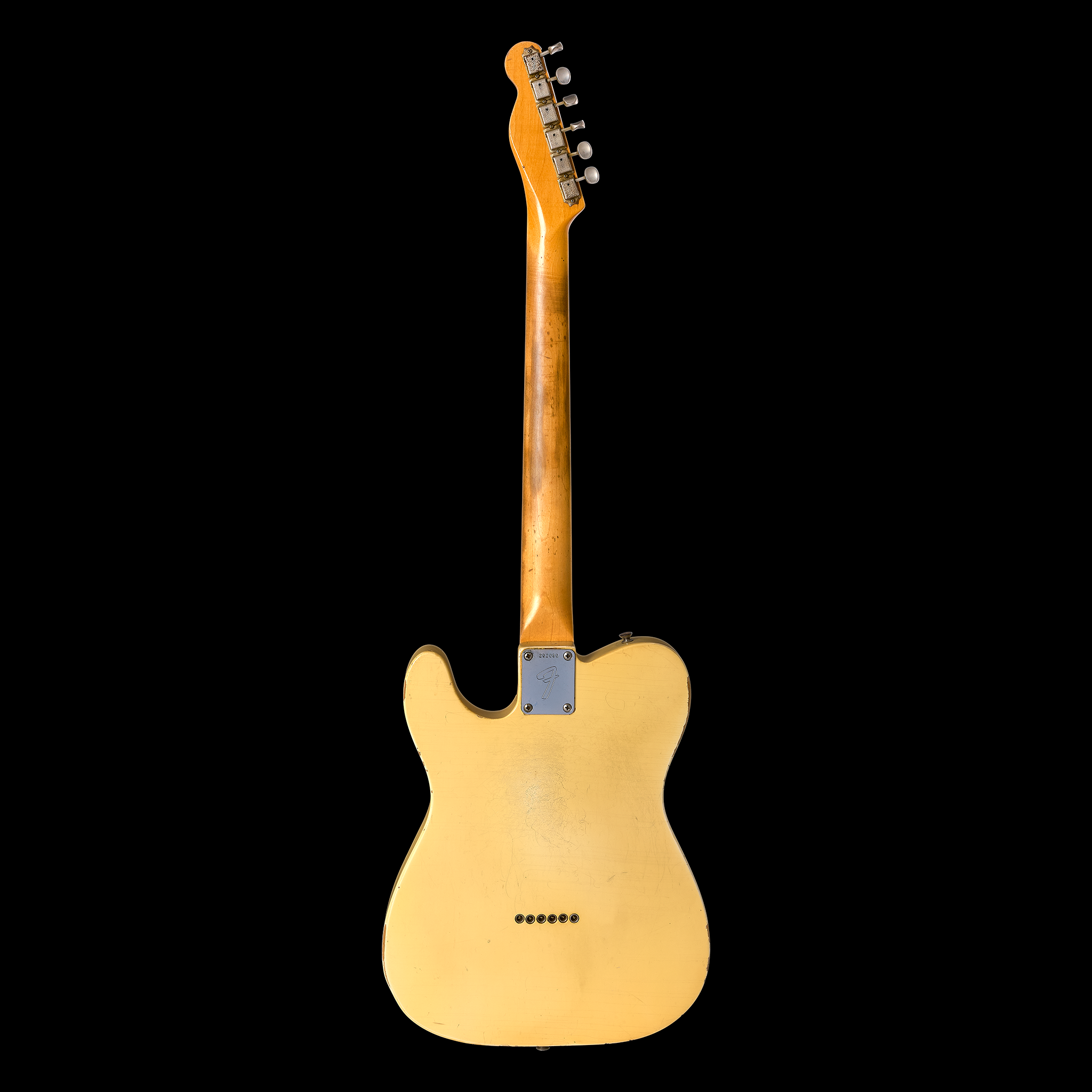 This model is in player grade condition with a beautiful patina on the original olympic white finish. The guitar features original pickups, tuners and internal electronics. The solder has been replaced on the pots and the tone knob is non original. The frets have wear but the guitar plays well. Overall a very cool vintage Tele.