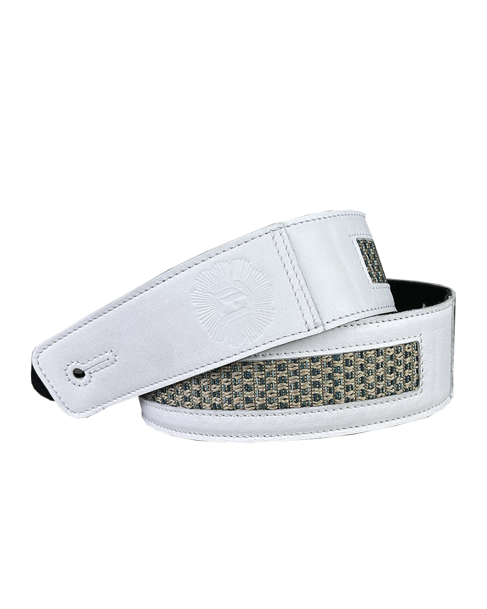 A vibrant, small-batch strap crafted from unique fabrics and premium full-grain leather. Each piece is individually numbered (“X of Y” in gold foil), and numbers are chosen at random when shipped.
