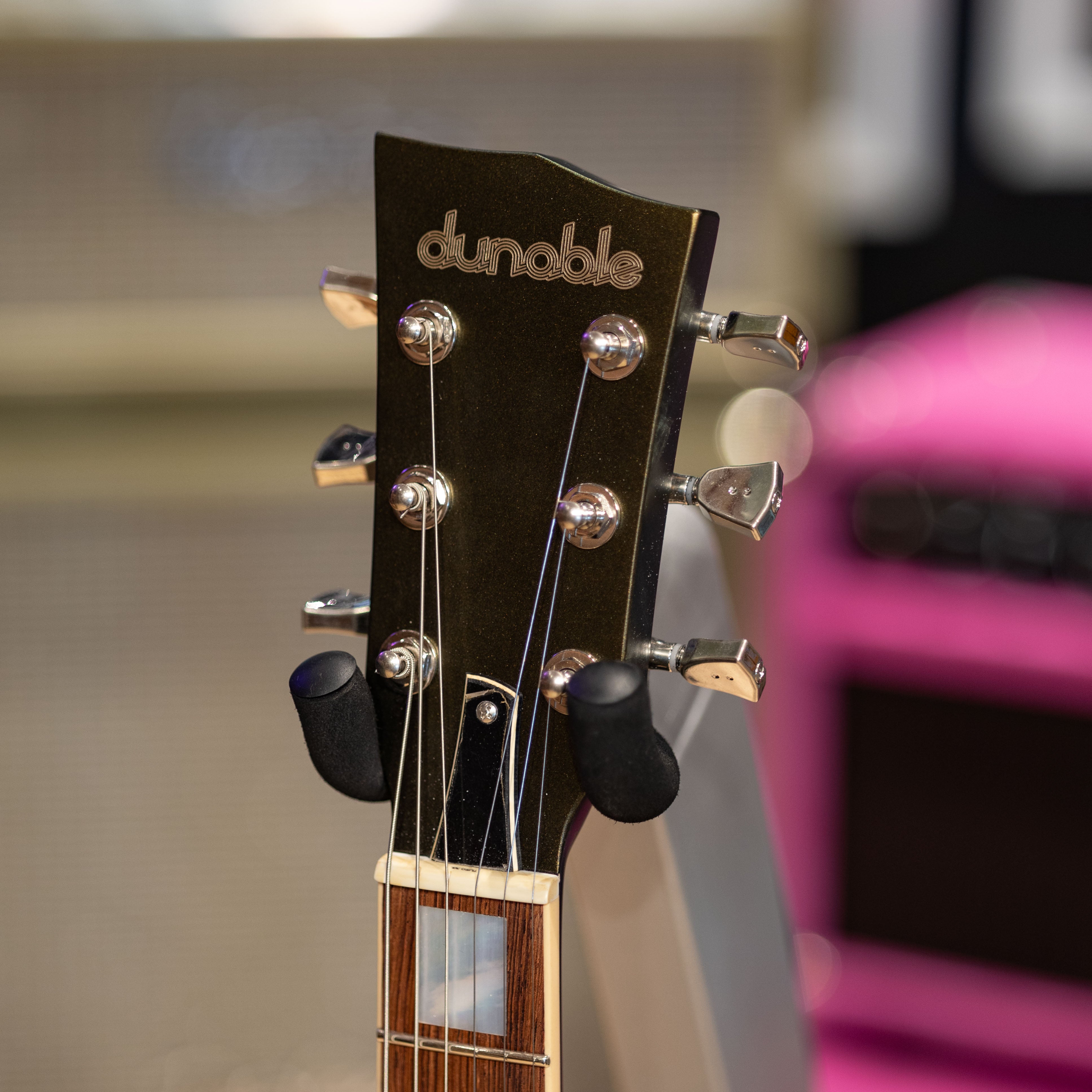 The Gnarwhal brings together Dunable’s bold design language with a build that feels instantly comfortable in the hands. The swamp ash body wears a satin Black Gold finish that shows off the grain in a way that feels natural and broken‑in, while the maple neck and Indian rosewood fingerboard keep the playing feel smooth and familiar. Jescar 51100 nickel frets and cream binding add a touch of refinement without taking away from the guitar’s workhorse attitude.