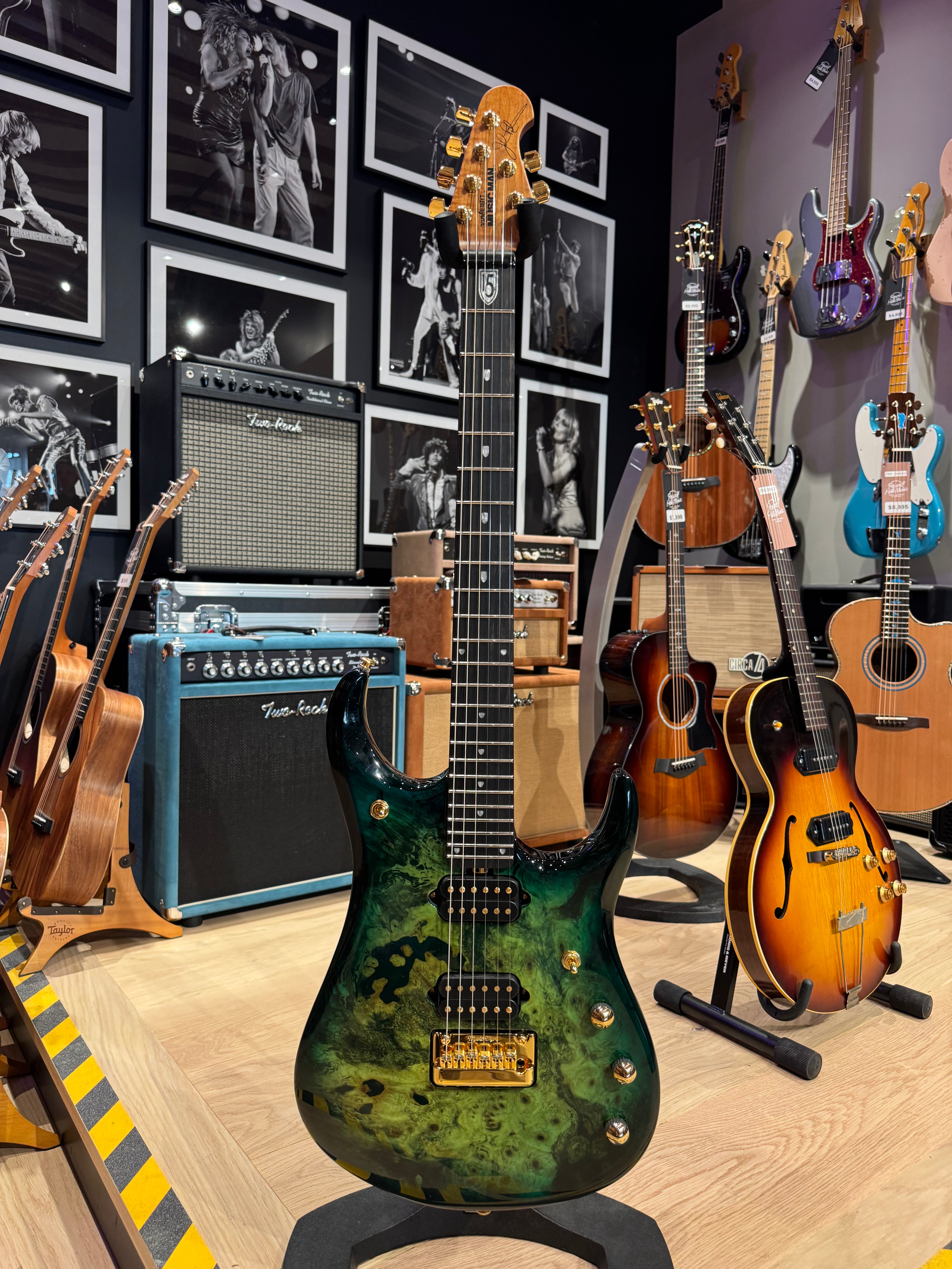 The Ernie Ball Music Man John Petrucci JP15 BFR Toxic Sludge is a striking limited‑edition guitar that fuses bold aesthetics, flawless craftsmanship, and exceptional versatility. Built as part of the prestigious Ball Family Reserve series, this exclusive model features a lightweight okoume body with a highly figured maple top, finished in the vivid and aggressive Toxic Sludge high‑gloss polyester. With only 100 units produced worldwide per finish, this JP15 is a true collector’s piece for serious players and fans of Dream Theater’s legendary guitarist, John Petrucci.