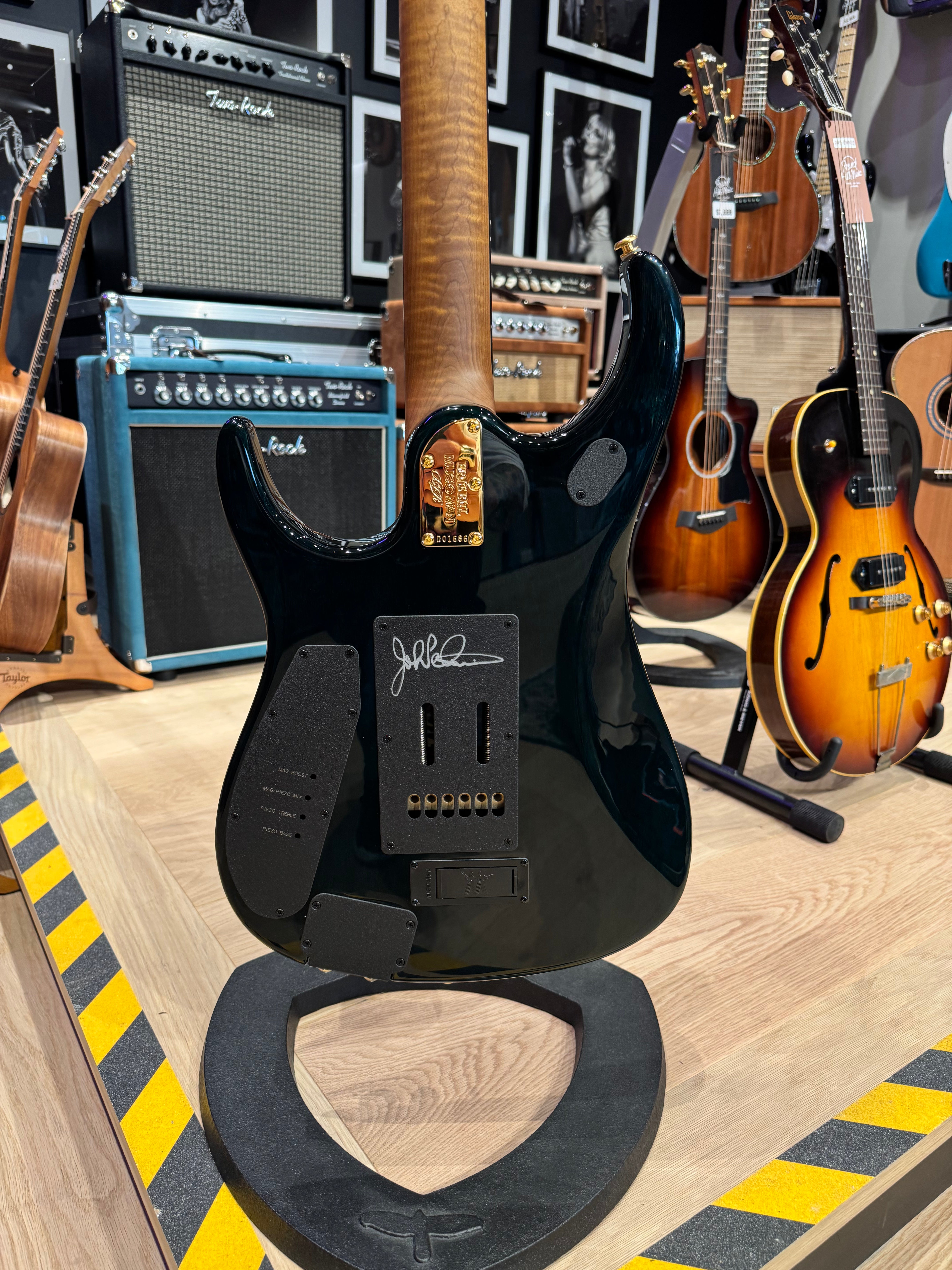 Bridge: Custom John Petrucci Music Man® Piezo floating tremolo with Fishman Powerbridge piezo saddles