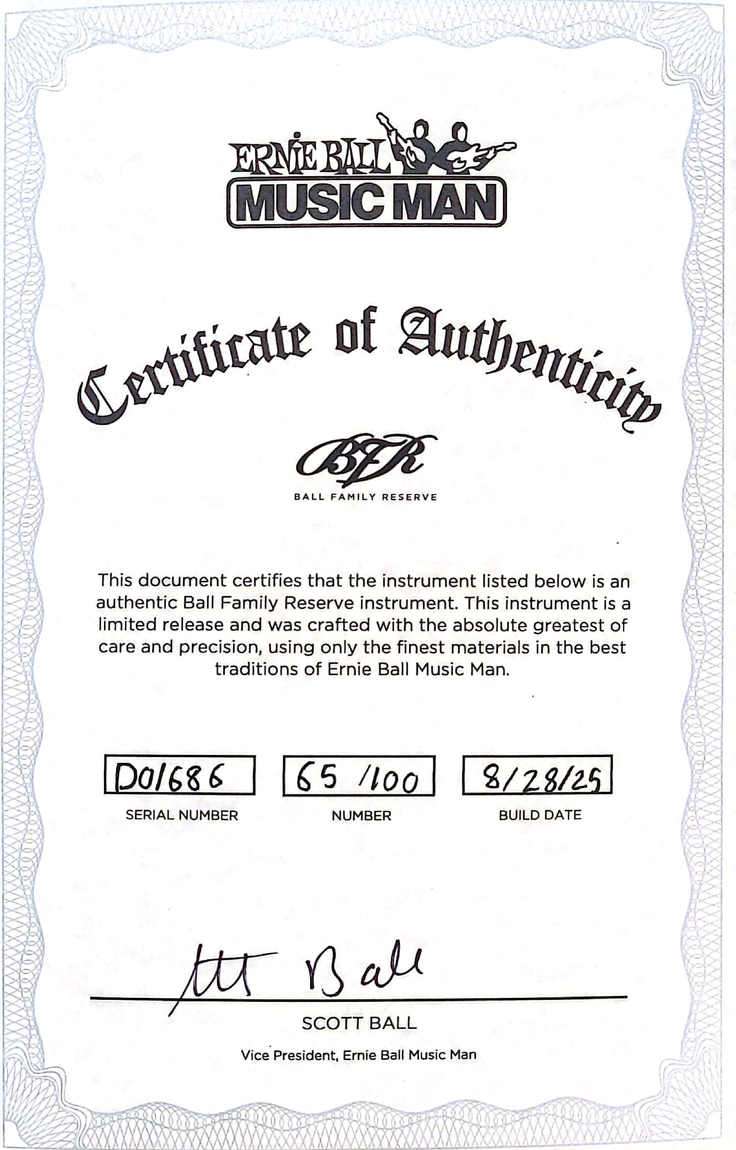 A numbered Certificate of Authenticity