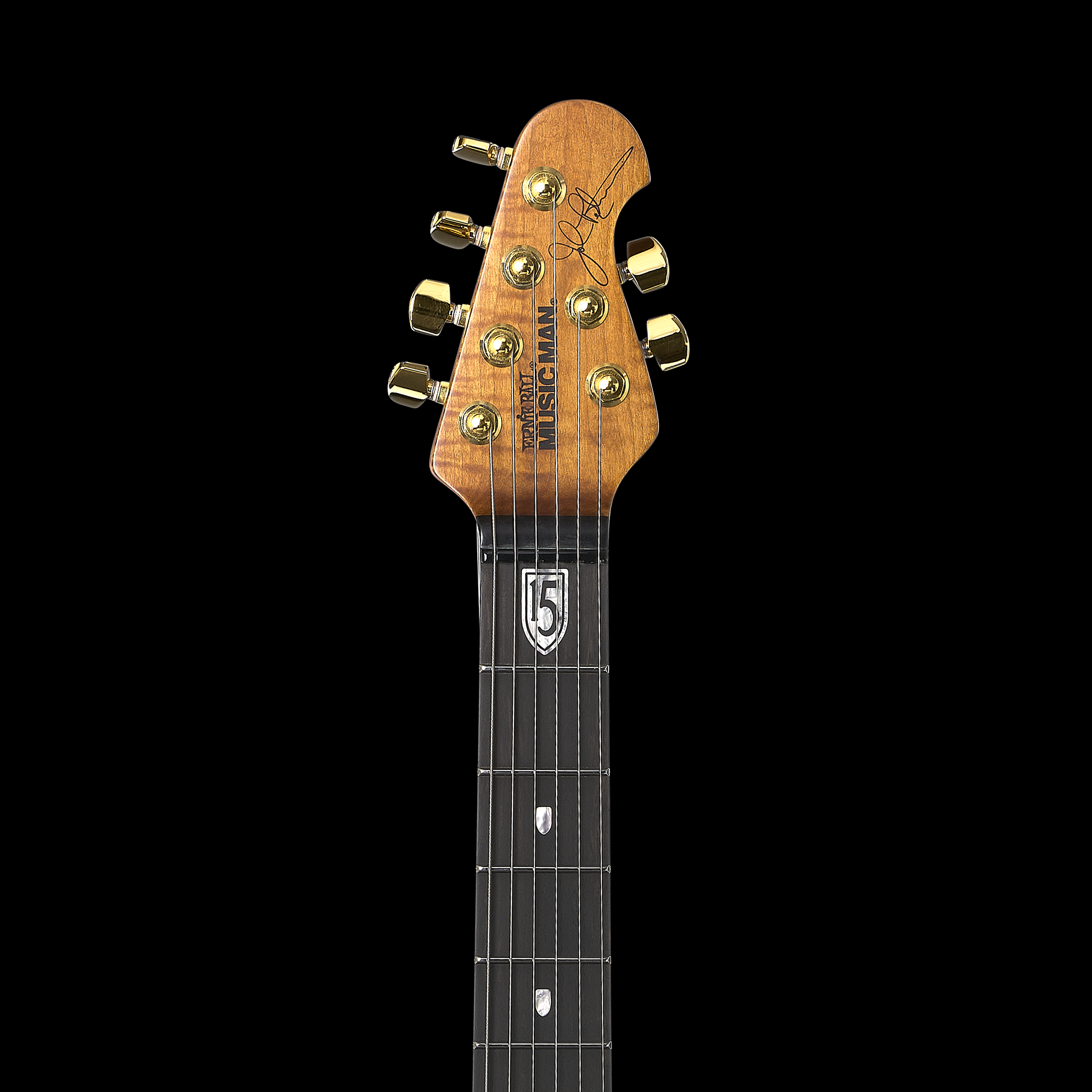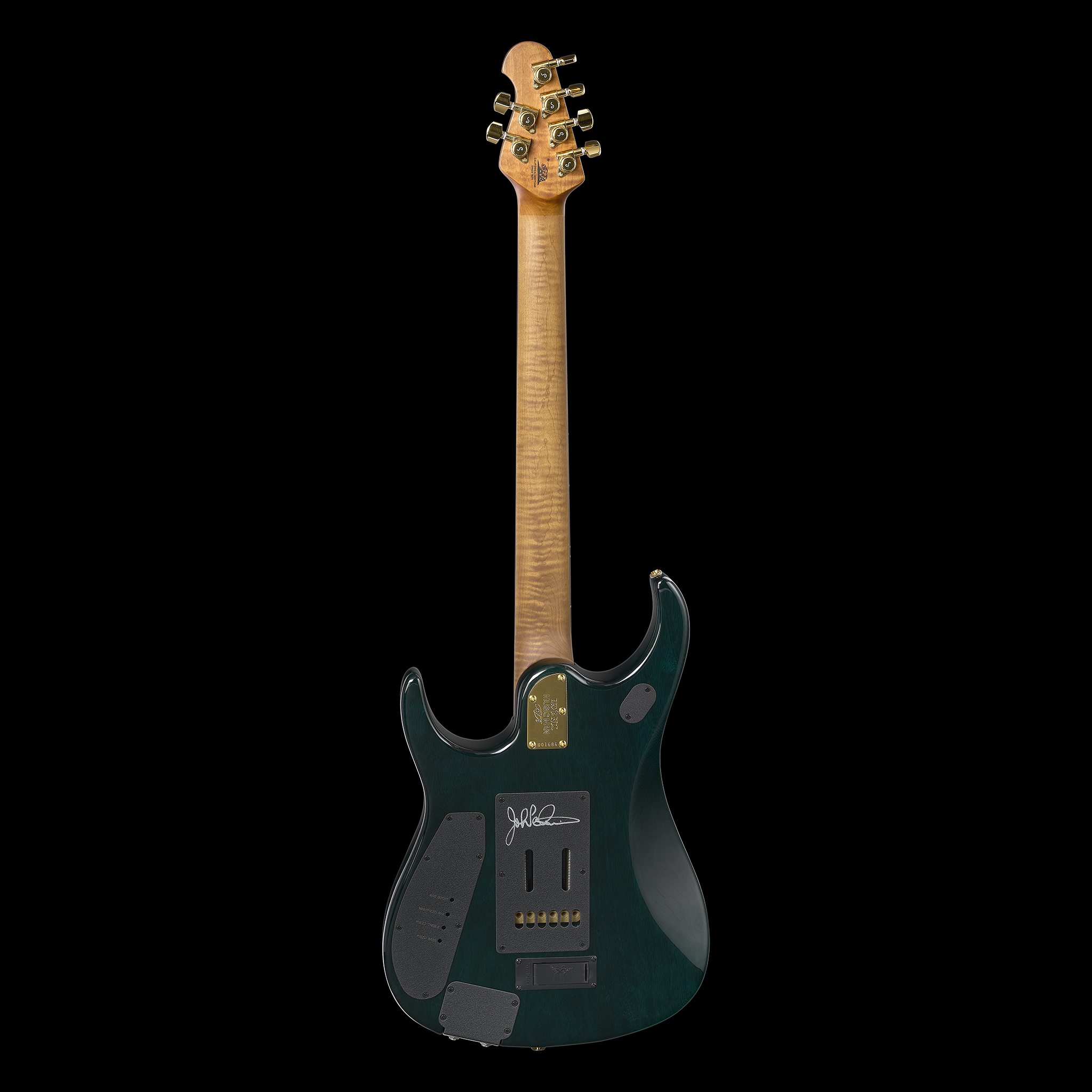 Bridge: Custom John Petrucci Music Man® Piezo floating tremolo, made of chrome plated (matte black on trans black burst), Fishman Powerbridge piezo saddles