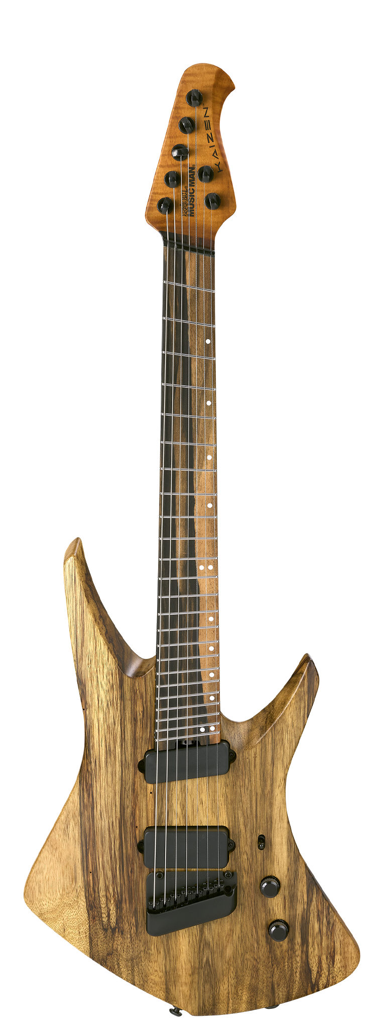 Ernie Ball Music Man's Kaizen guitar is a visionary collaboration between the Ernie Ball Music Man design team and the world-renowned guitarist, innovator, and designer Tosin Abasi. The Kaizen is a cutting-edge design concept that was inspired by Tosin's distinct playing style and vision. Featuring Music Man’s proprietary "Infinity Radius Fretboard" and uniquely positioned fret markers, the feel and playability of the Kaizen is enhanced with improved visibility of the fretboard in any position. The instrument is light and undemanding, with a distinctly shaped alder body, a slim profile roasted maple neck, and a multi-scale length fretboard. The electronics include a new Music Man HT bridge humbucker, a custom offset neck humbucker, and a 3-way switch wired with a custom middle position. Each guitar comes equipped with a Music Man multi-scale tremolo, Steinberger gearless tuners, and a Mono soft or G&G hardshell case.