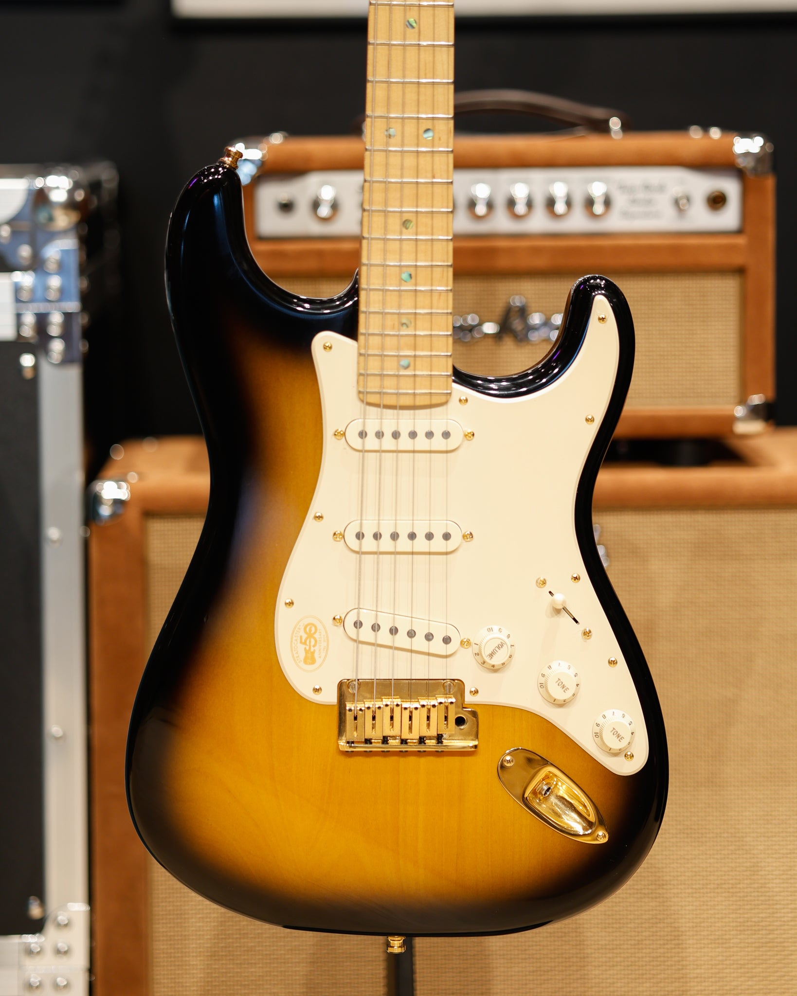 Produced for the 50th anniversary of the birth of the original Stratocaster in 1954. This guitar features Samarium Cobalt Noiseless (SCN) Strat pickups, S-1 switching, "C" neck shape, 2-point synchronized tremolo with a pop-in arm, and staggered locking tuning machines.