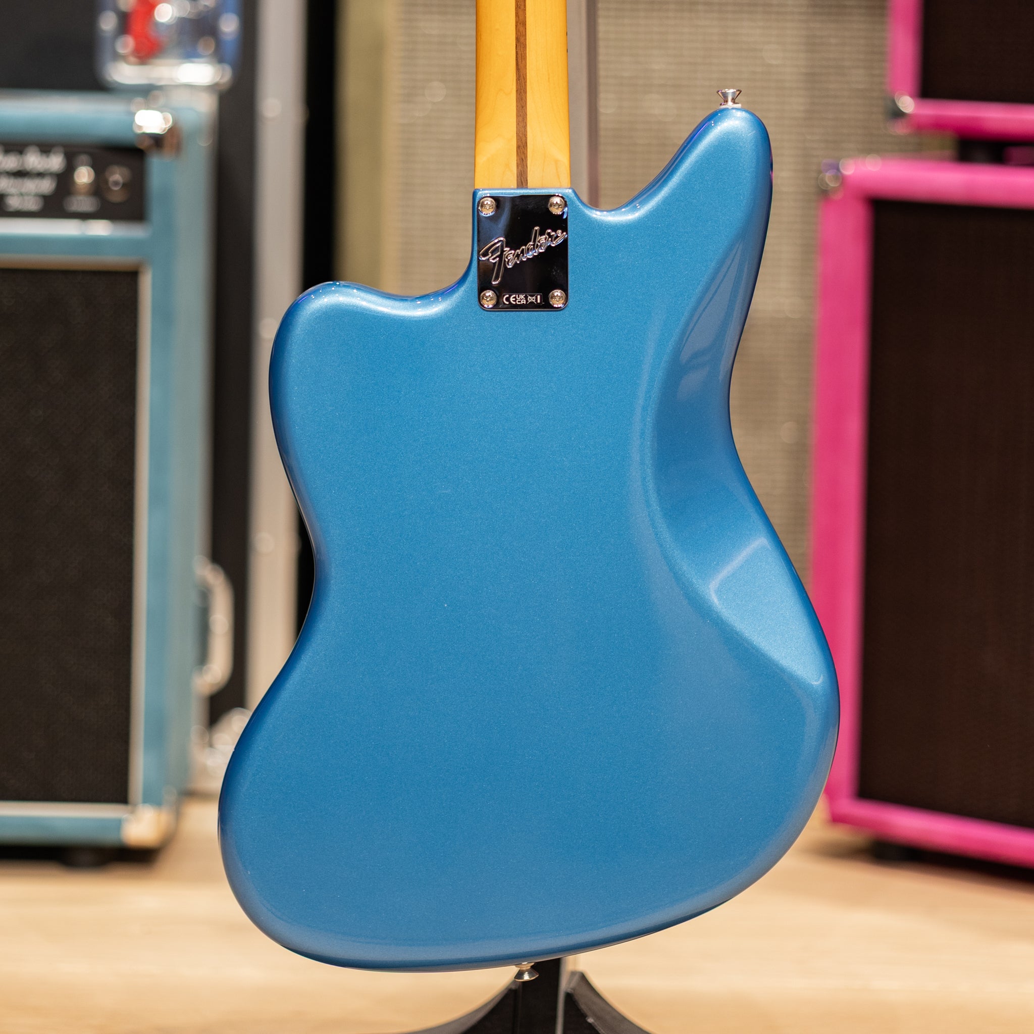 The Modern “C” neck and 9.5" radius keep the feel smooth and familiar, and the medium jumbo frets make bends and phrasing effortless. Paired with the floating tremolo and vintage‑style hardware, it keeps the classic Jaguar personality intact while offering the stability and reliability you expect from a modern Fender. It’s expressive, comfortable, and quietly confident — the kind of offset that settles in fast and keeps you reaching for it.