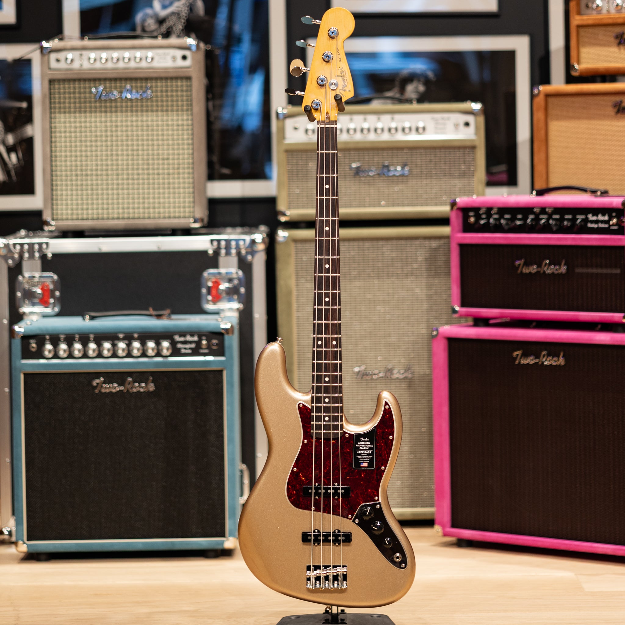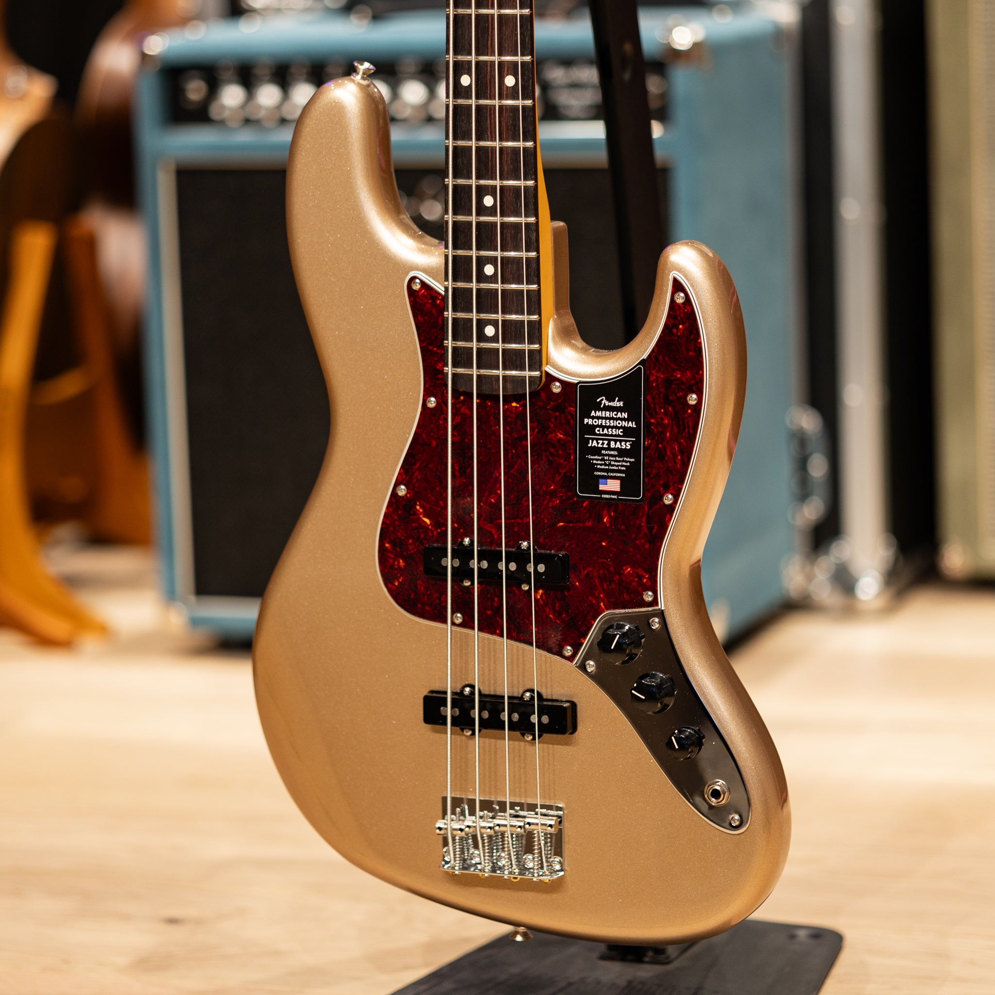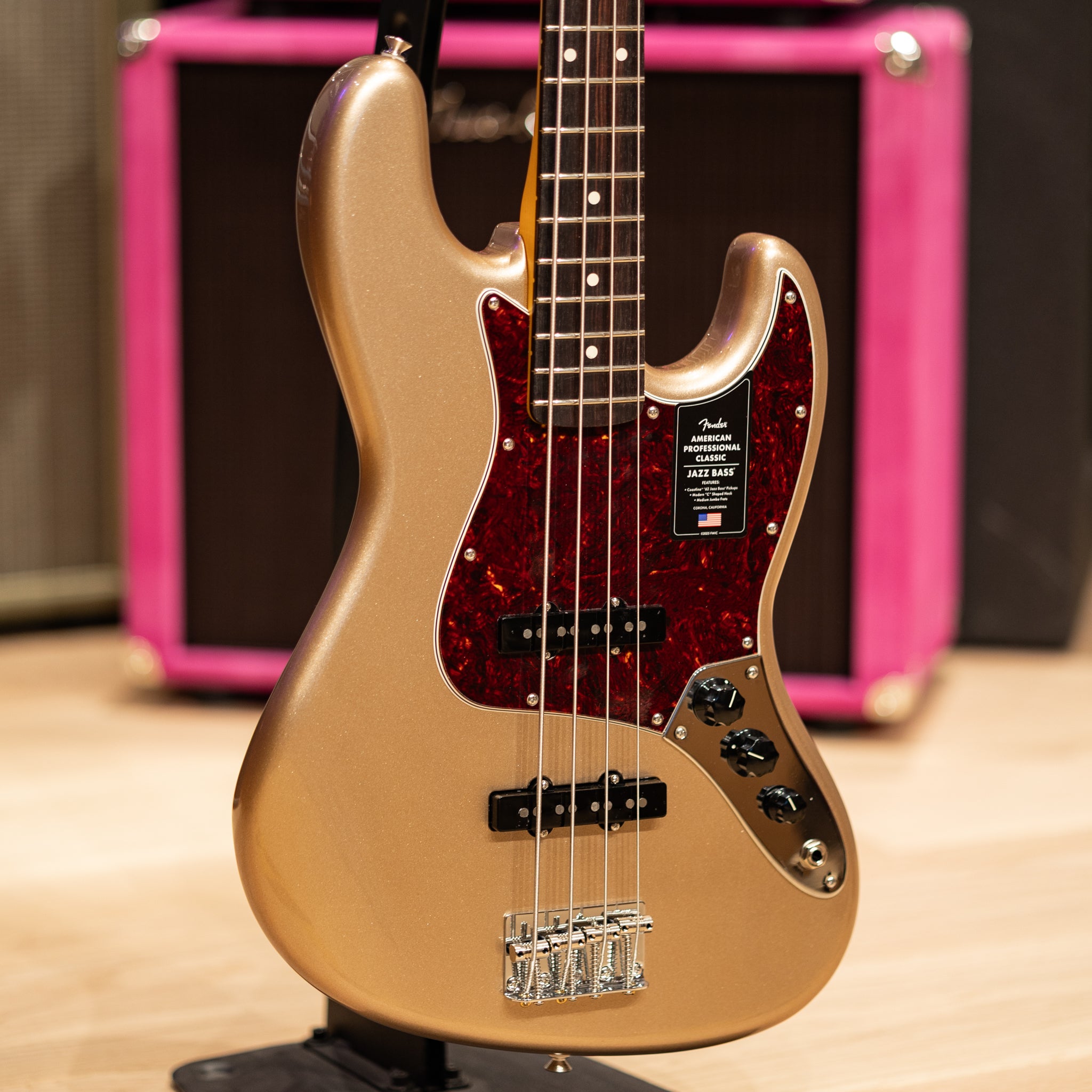 Some instruments feel instantly settled in your hands, and this American Professional Classic Jazz Bass in Faded Firemist Gold has that kind of quiet confidence. The alder body and Coastline ’62 pickups give it that unmistakable Jazz Bass growl—warm, articulate, and full of character—while still leaving plenty of room for your touch to shape the sound. There’s a sweetness in the highs, a focused midrange, and a low end that feels supportive without ever getting muddy. It’s the kind of bass that slips into a mix naturally, whether you’re playing soft and supportive or digging in with more intention.