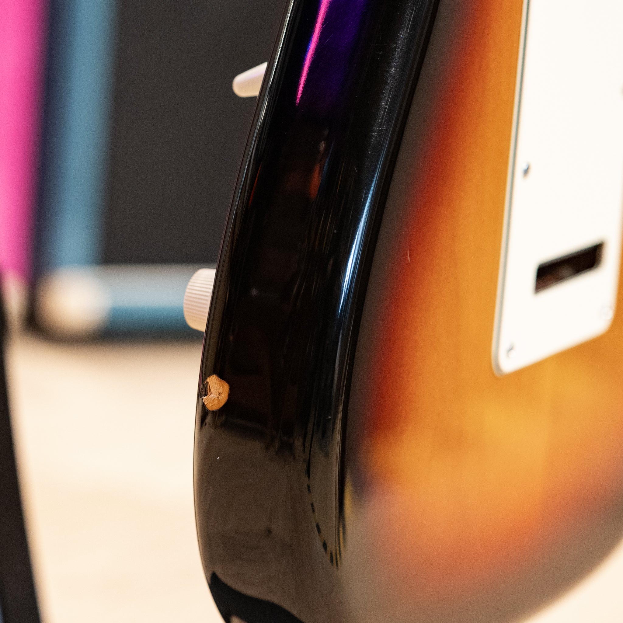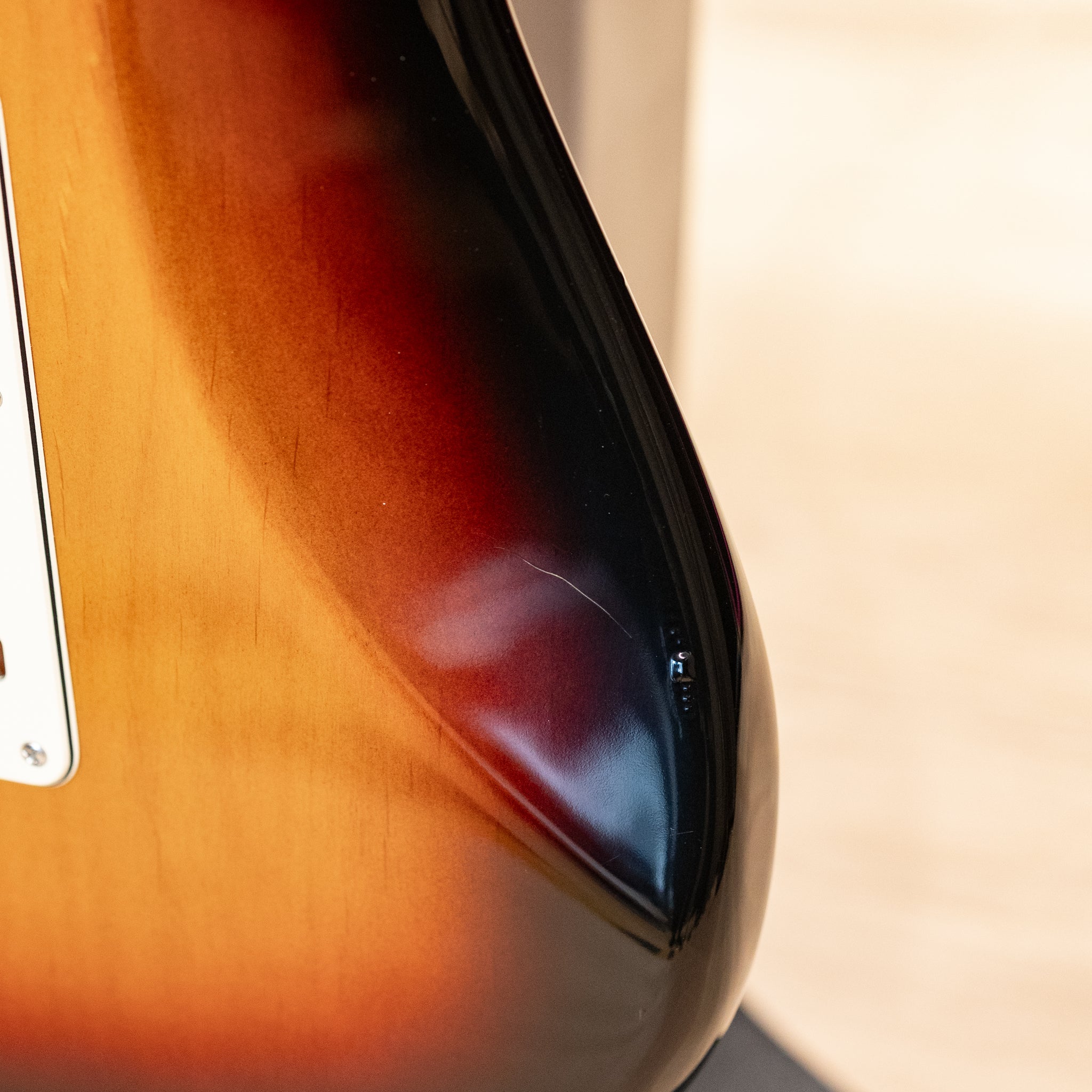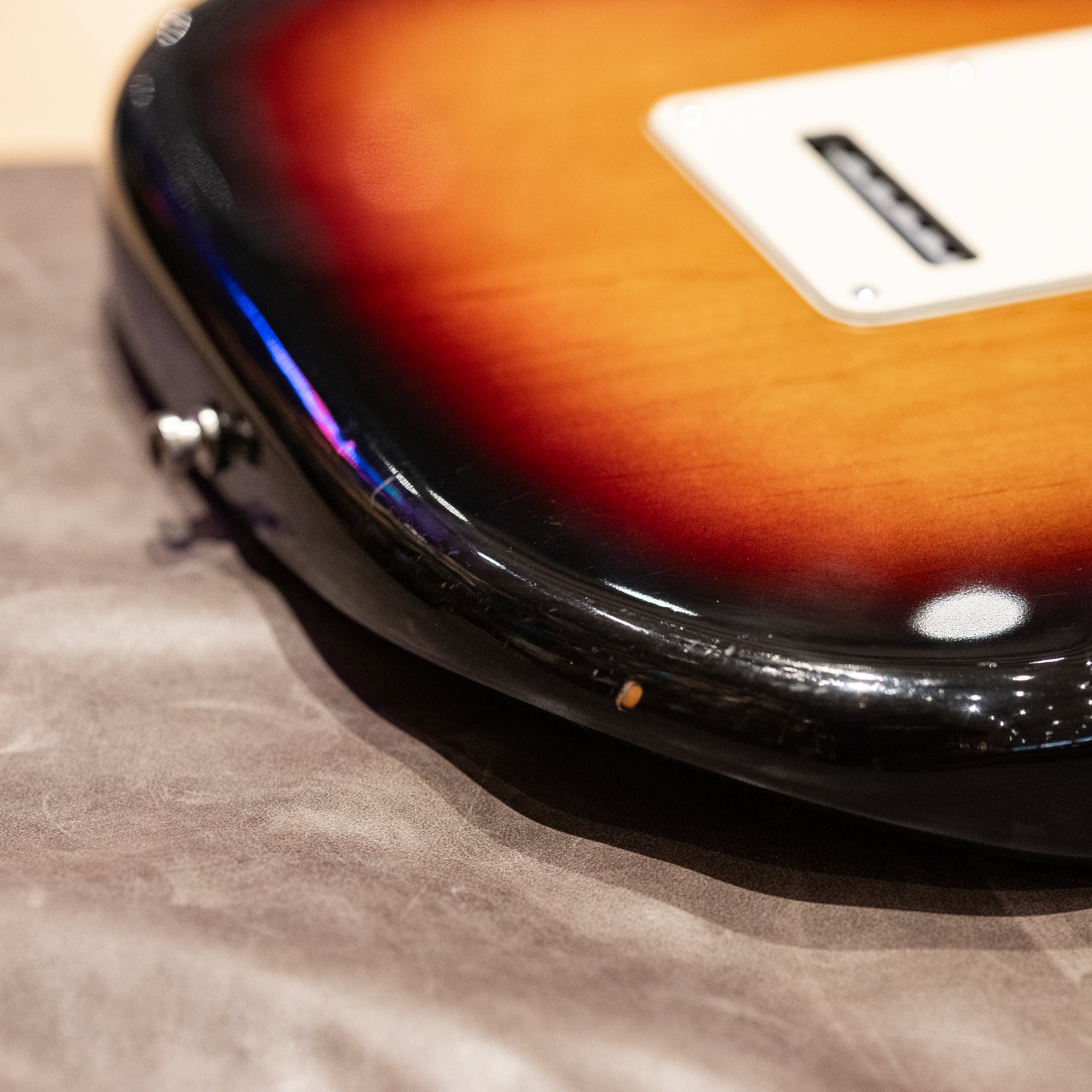 Cosmetically, this Strat is player-condition and has the patina to show for its nearly 25 years of use. There are scratches and dings on the finish, a few chips by the lower bout, as well as one very small circular mark on the back of the neck at the beginning of the skunk stripe. The chrome hardware is clean, albeit a bit aged from normal use and there are no structural issues. The neck is smooth and comfortable with little signs of wear and the frets are in great condition with plenty of life. The electronics are original and the pickups give that authentic Fender bell-like chime that will keep you playing for hours on end.