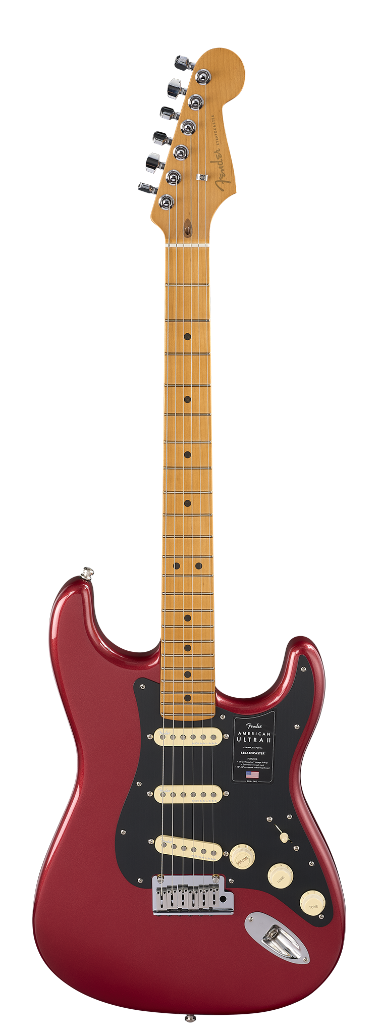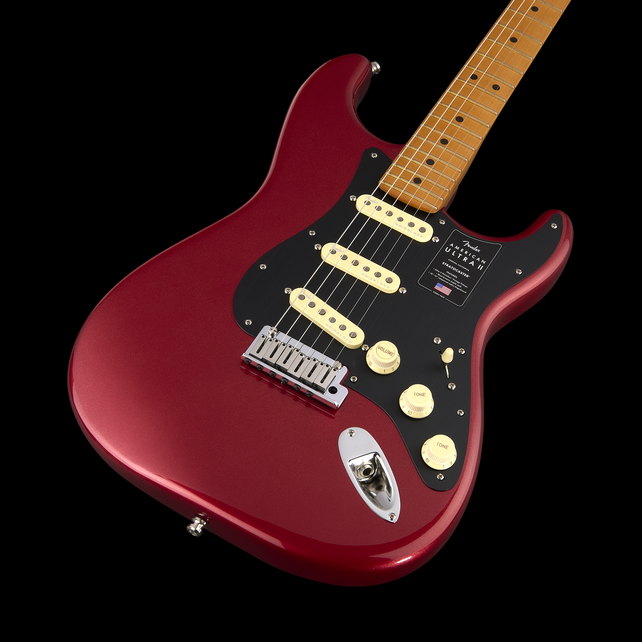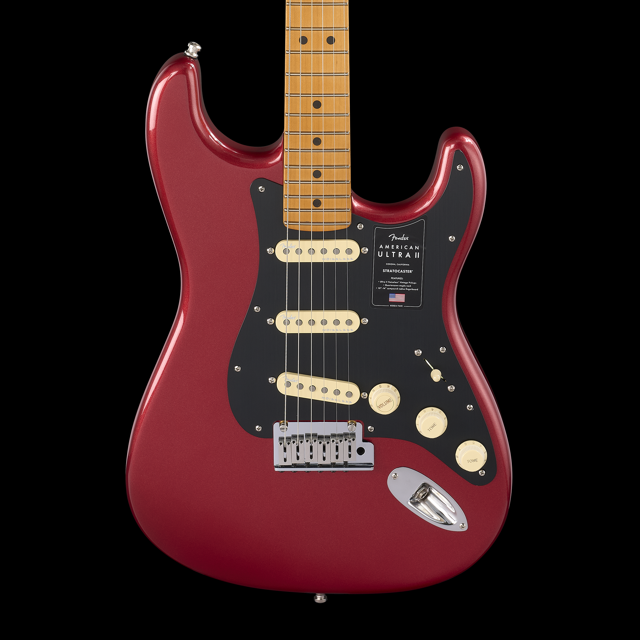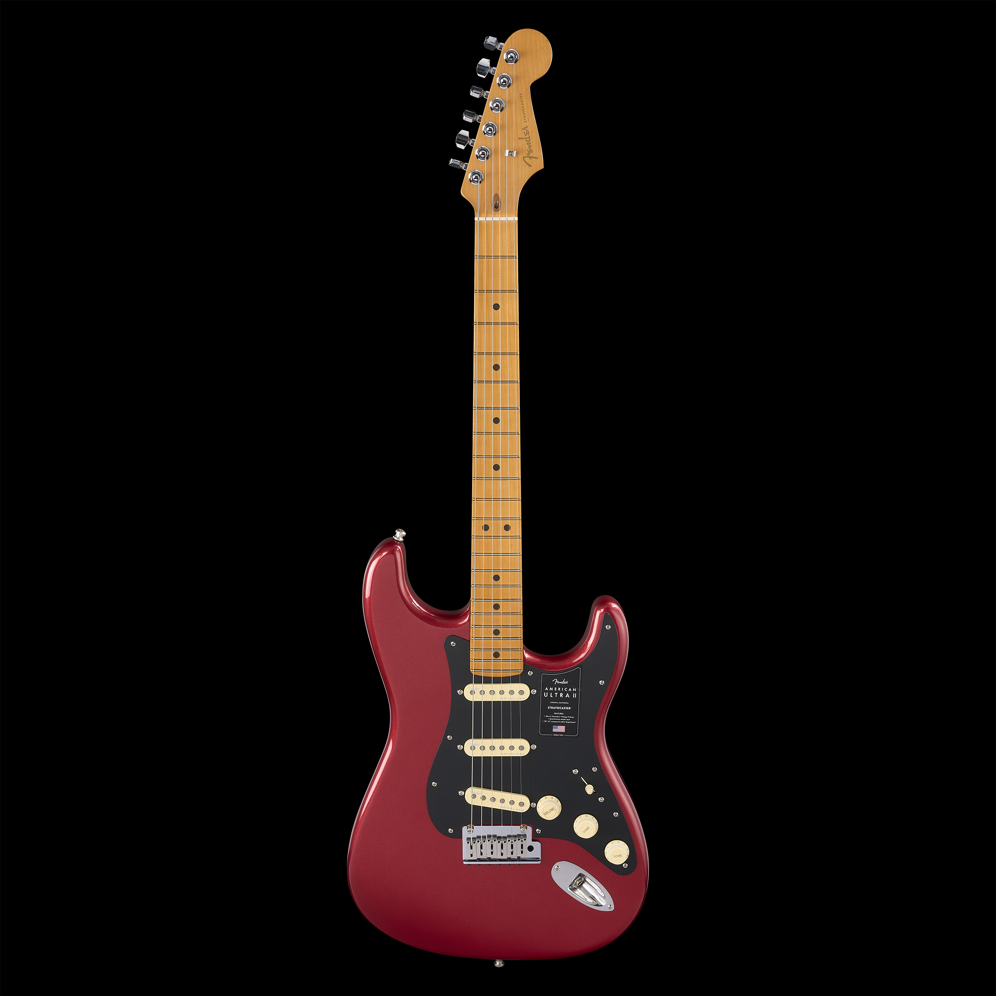 Powering this Stratocaster is a trio of Ultra II Noiseless™ Vintage Strat® pickups that produce everything from shimmering cleans to blistering leads, all free of hum. The S-1™ switch expands tonal flexibility, offering a range of innovative pickup configurations. Additional features, including the 2-point Ultra synchronized tremolo with polished stainless steel saddles, deluxe locking tuners, and a sleek 1-ply anodized aluminum pickguard, ensure performance-ready reliability. Designed for players who demand unparalleled tone and versatility, the American Ultra II Stratocaster delivers in every way.
