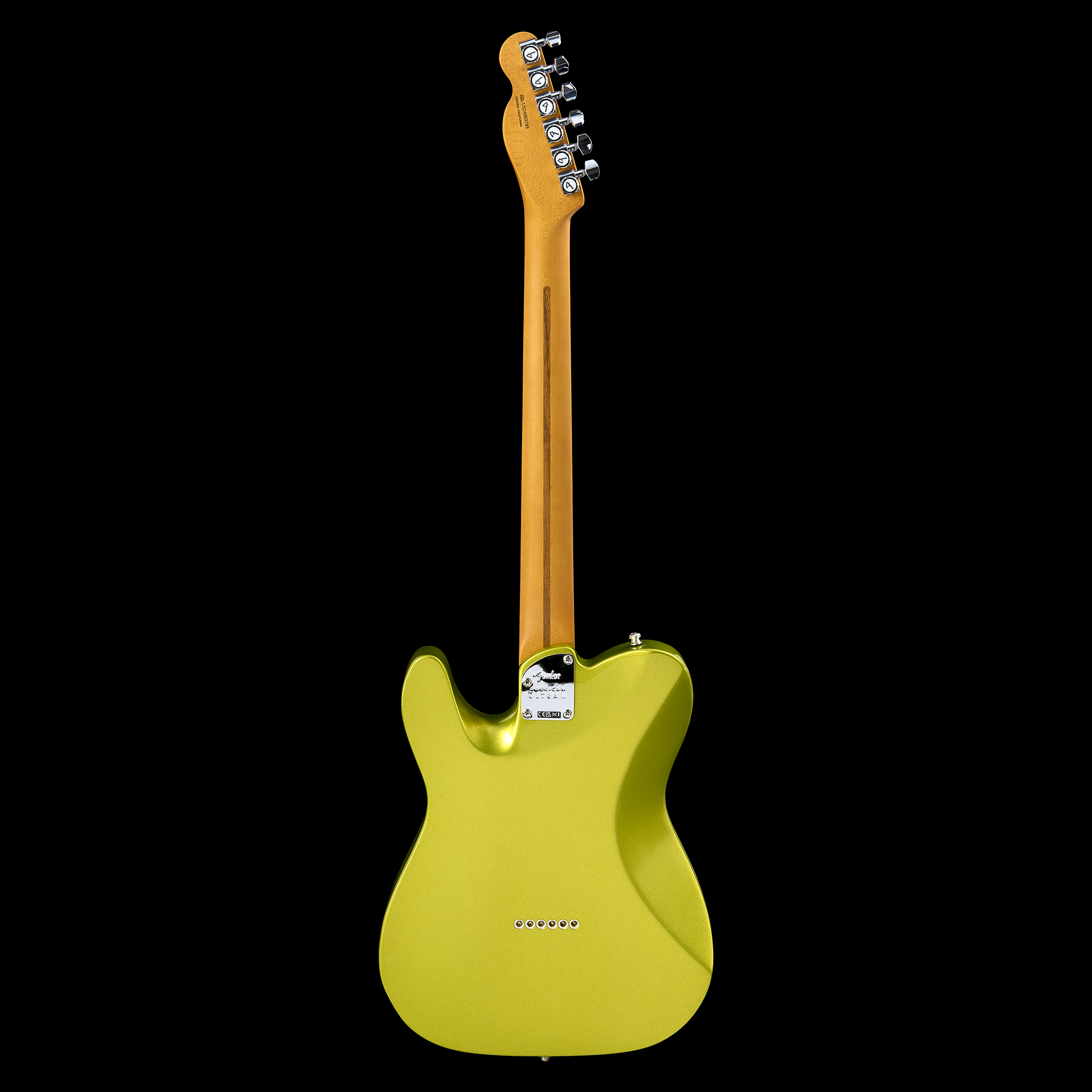 The American Ultra II Telecaster® in Solar Flare pushes the boundaries of Fender’s iconic design, combining premium materials with cutting-edge features to meet the needs of modern players. Its select alder body with sculpted contours enhances comfort, while the quartersawn maple neck with a Modern D profile and Ultra Satin finish ensures effortless playability. The 10"-14" compound-radius fingerboard, available in ebony or maple, features Ultra rolled edges, Luminlay® side dots, and 22 medium-jumbo frets for unmatched precision and comfort.