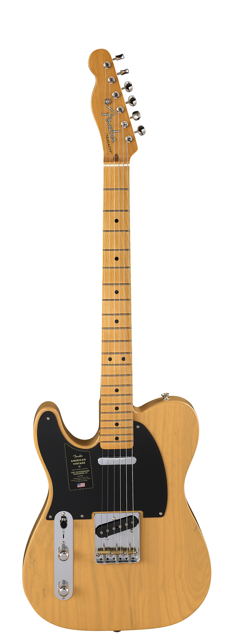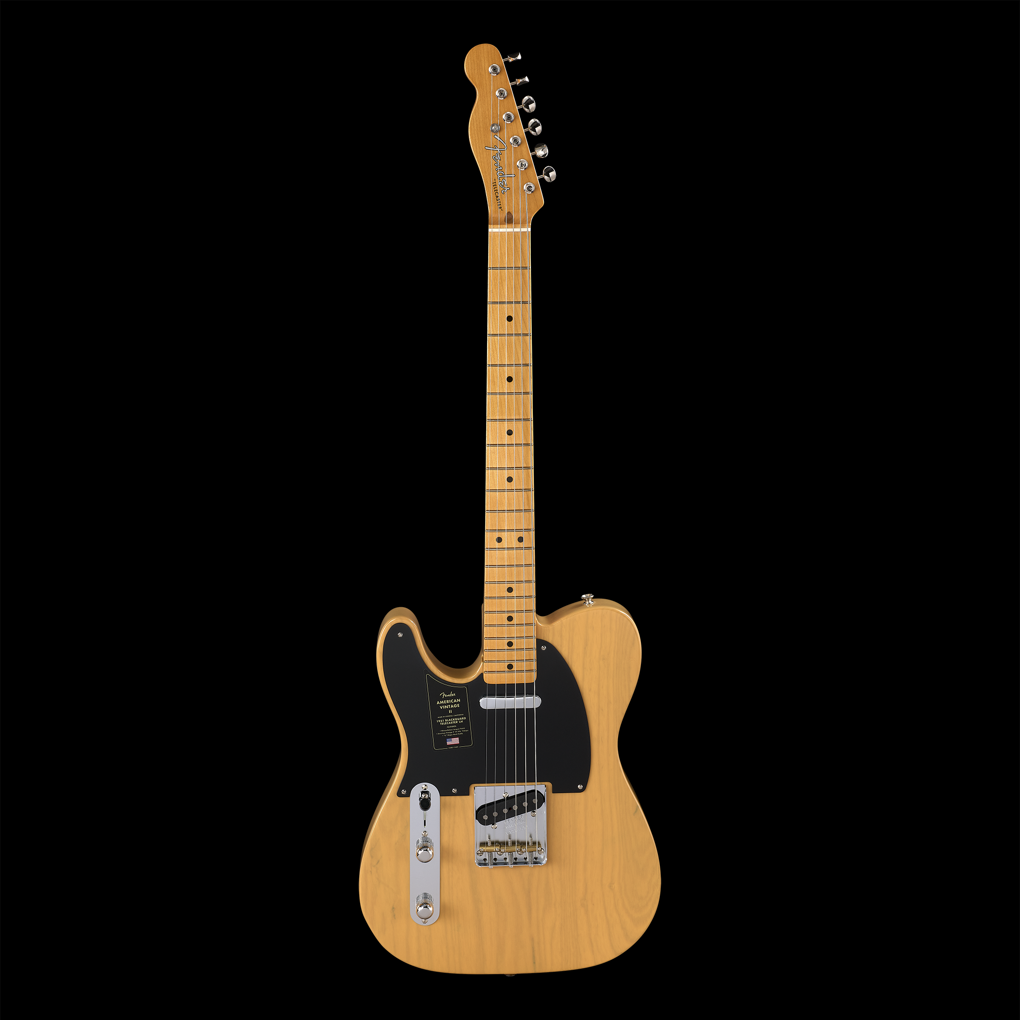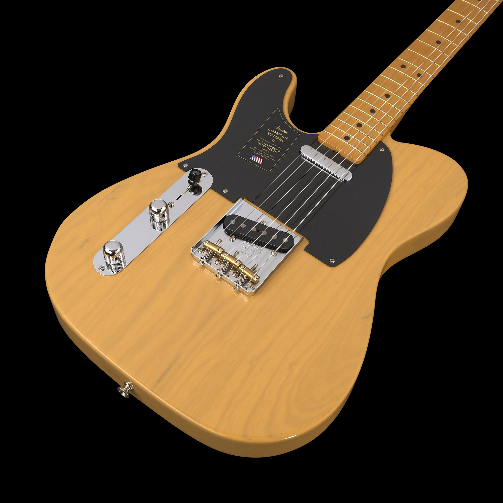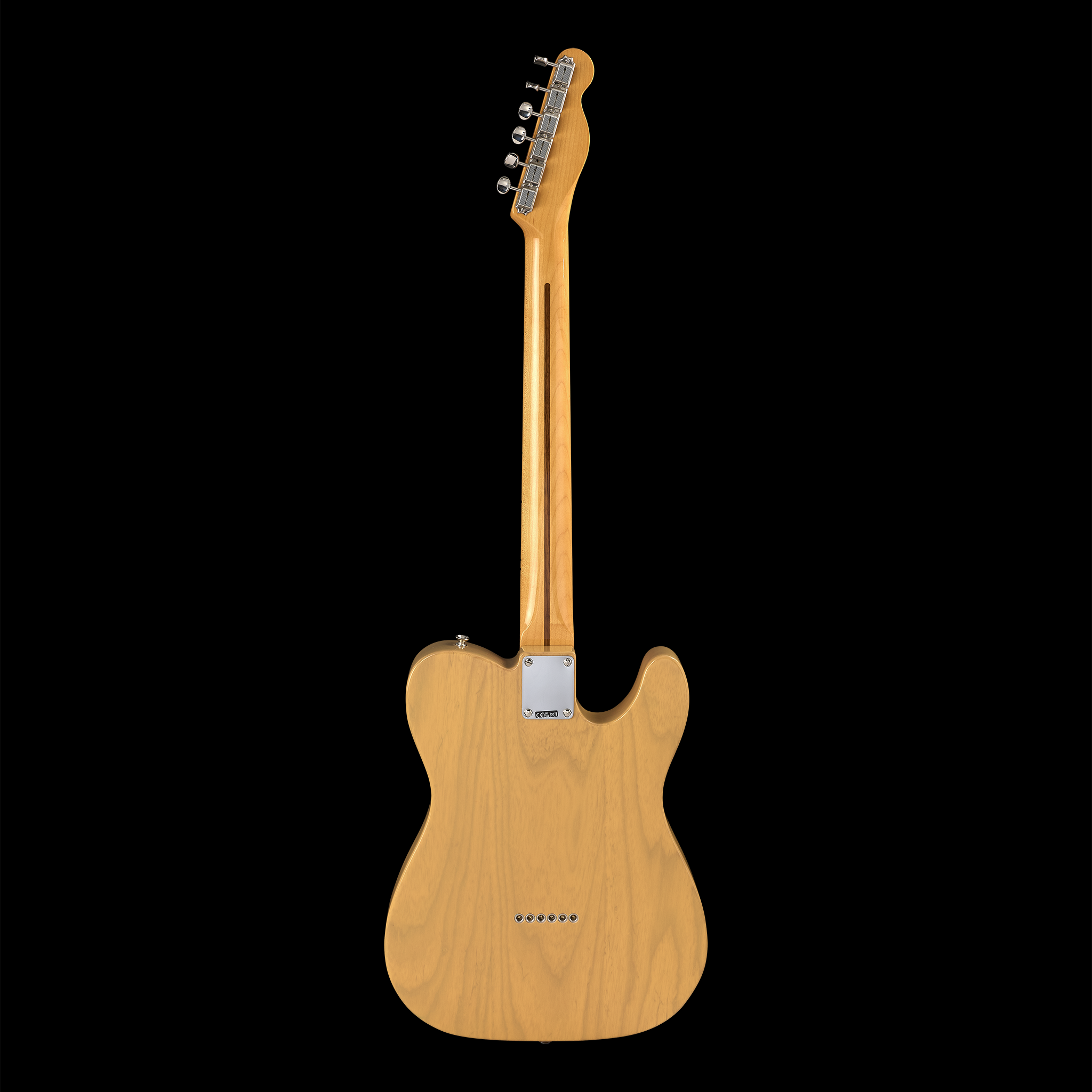 The American Vintage II 1951 Telecaster® Left-Hand in Butterscotch Blonde pays homage to the iconic first blackguard Telecaster that revolutionized electric guitars. Its ash body, finished in a gloss nitrocellulose lacquer, delivers vintage tone and timeless style. The substantial '51 "U"-shaped hard rock maple neck, paired with a 7.25" radius fingerboard and vintage tall frets, provides a smooth and comfortable playing experience.