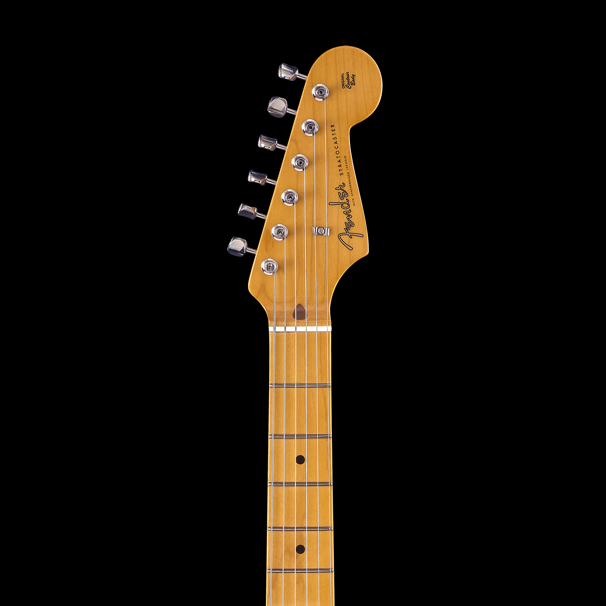 Equipped with Pure Vintage '57 Stratocaster pickups, this guitar delivers the iconic chime and clarity that defined an era. The synchronized tremolo bridge with a cold-rolled steel block and bent steel saddles, along with vintage-style single-line "Fender Deluxe" tuners and a single-ply pickguard, ensures authenticity in both tone and design. A stunning tribute to Fender’s legacy, this Strat is perfect for players seeking timeless style and sound.