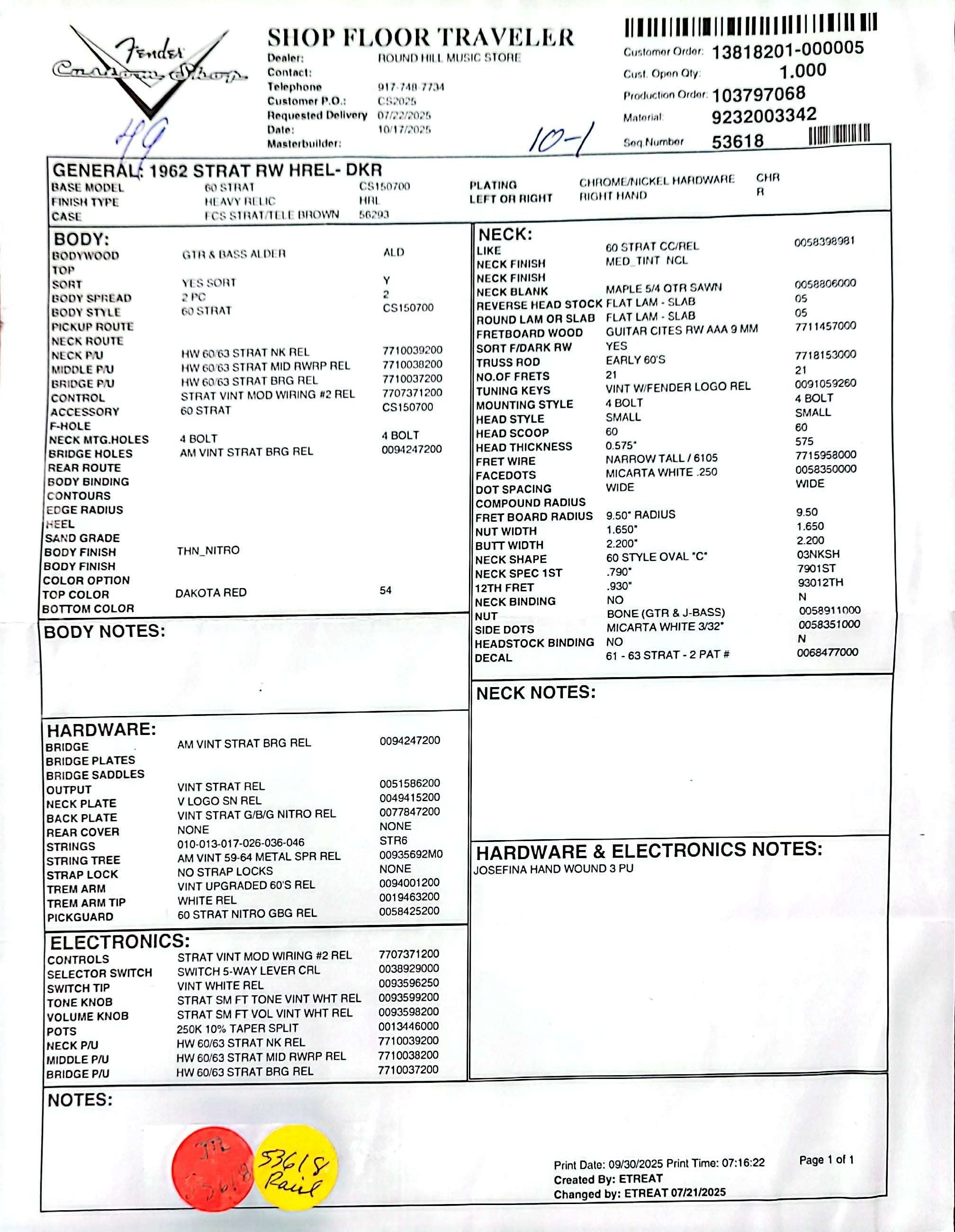 Model Name: 1962 Stratocaster RW Heavy Relic