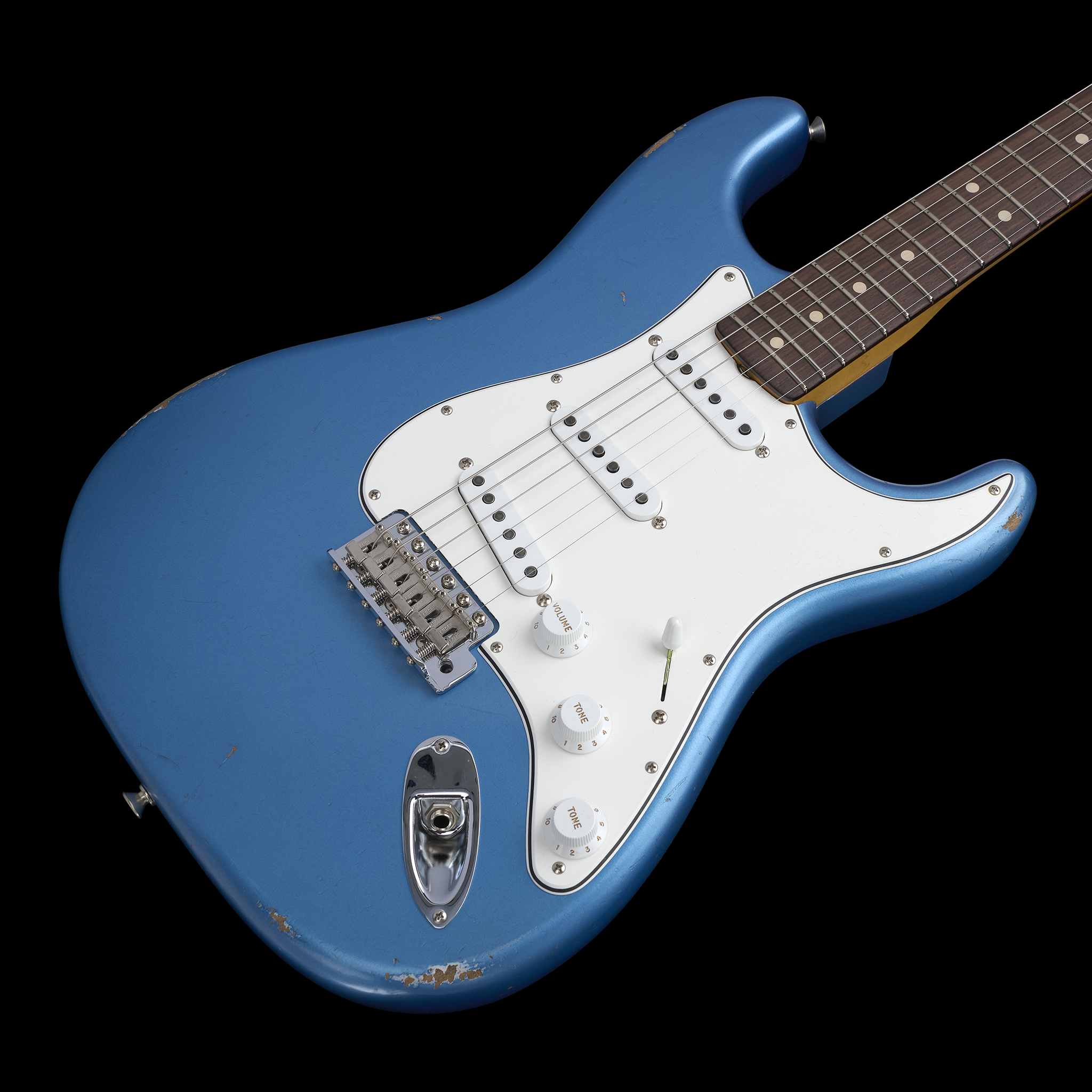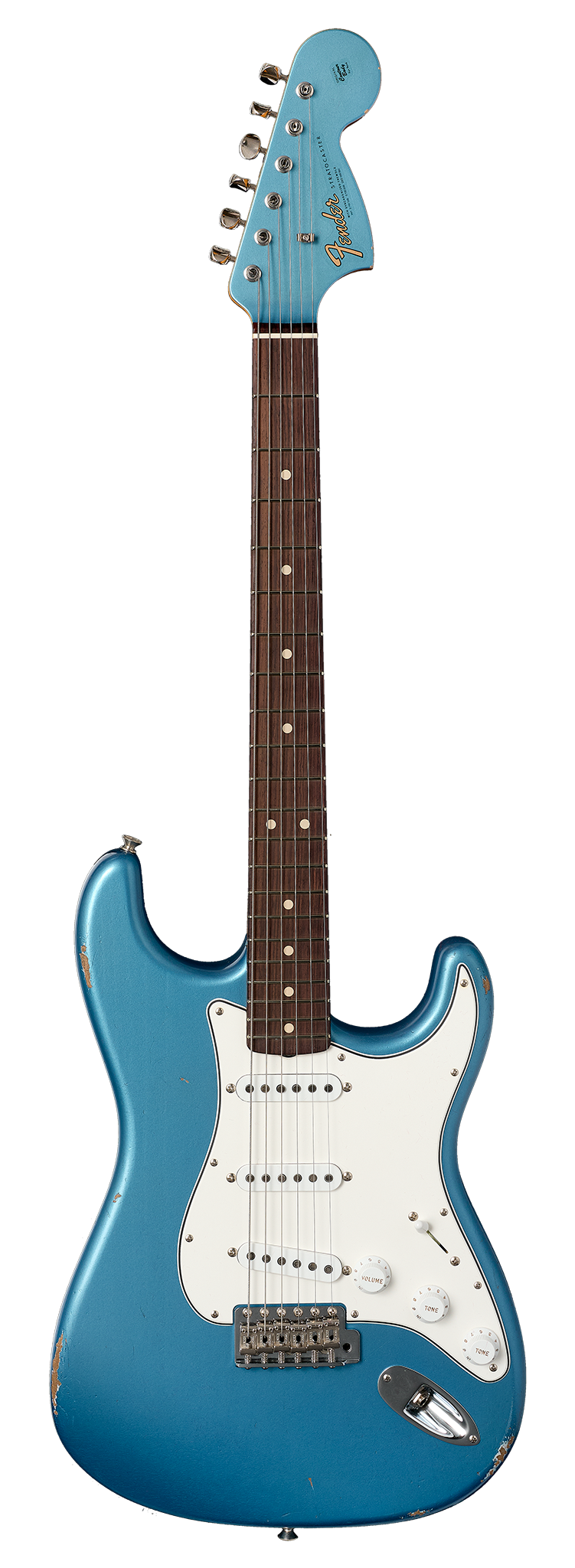 This Fender Custom Shop '66 Stratocaster is a tribute to bold style and tone, finished in a beautifully faded Lake Placid Blue with a matching oversized headstock. The two-piece alder body and nitrocellulose lacquer finish give it a lively resonance and classic vintage feel, complemented by a AAA rosewood round-lam fretboard and quarter-sawn maple neck carved into a comfortable ’63 "C" shape.