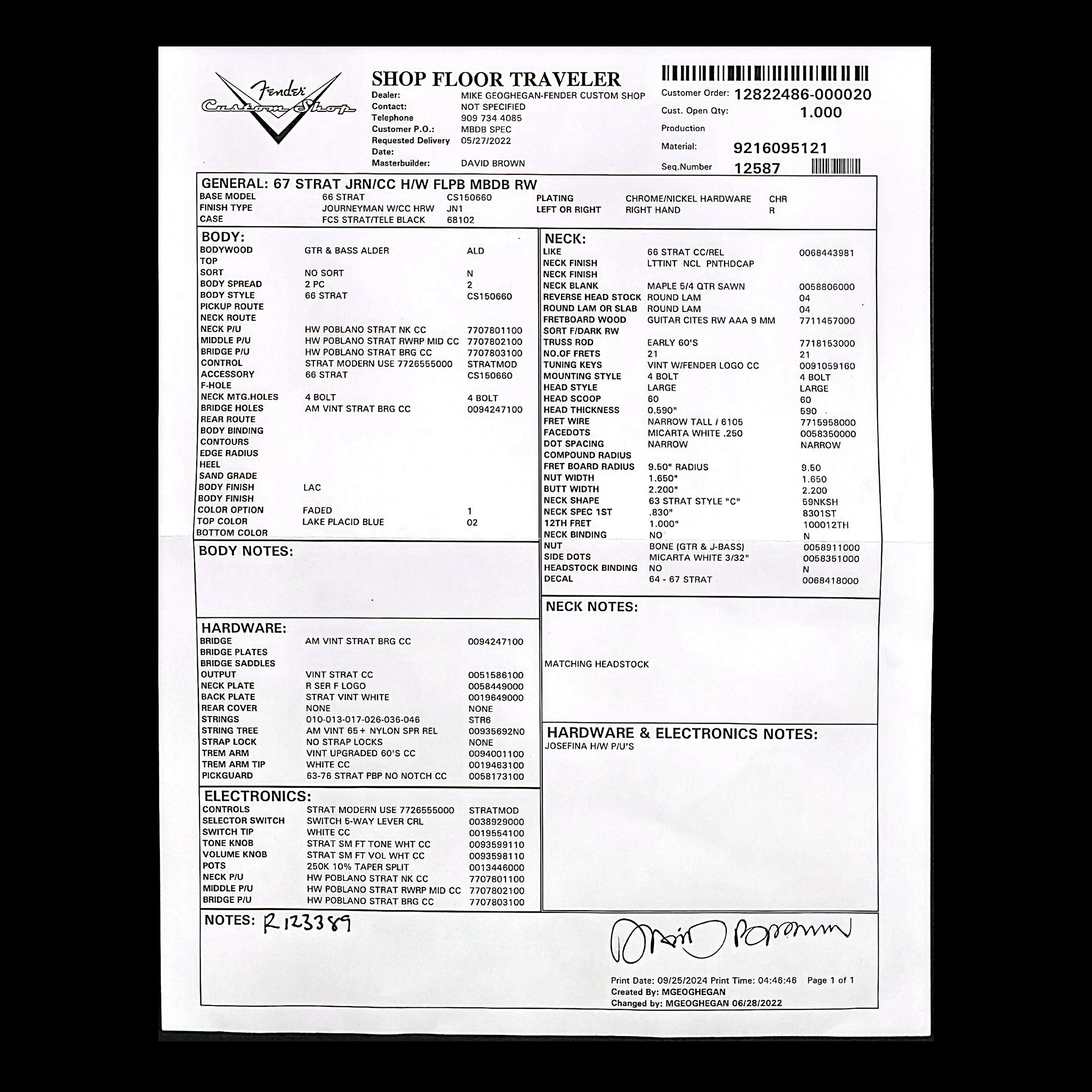 Fender Custom Shop 1967 Stratocaster Journeyman Masterbuilt David Brown - Lake Placid Blue