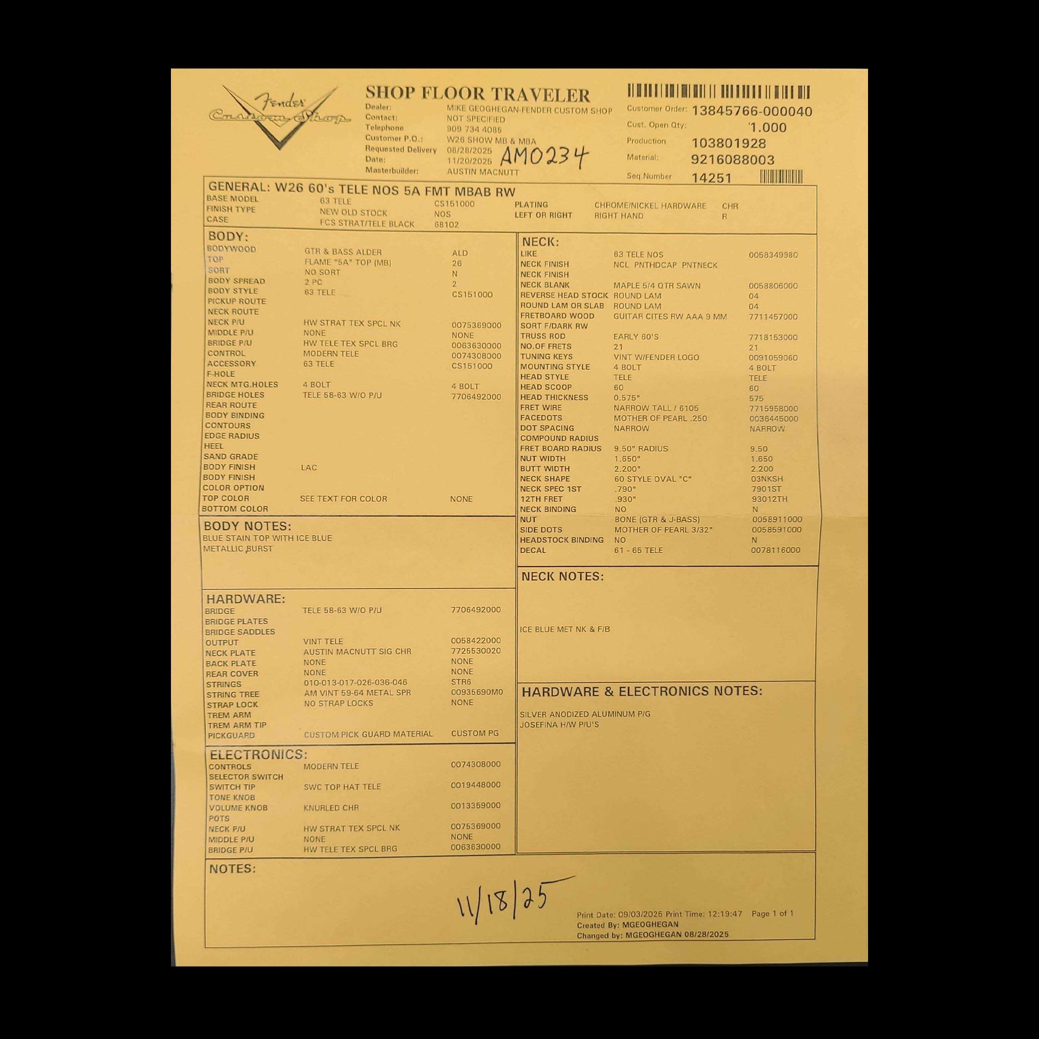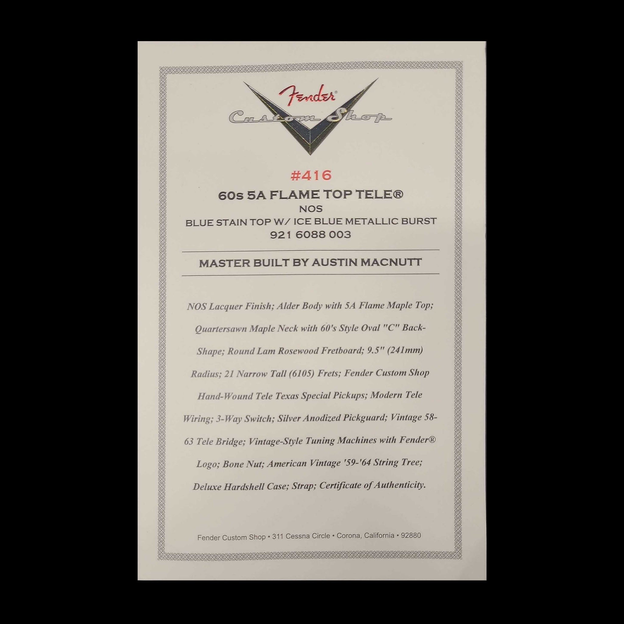Fender Custom Shop Masterbuilt Austin MacNutt 60s 5A Flame Top Telecaster NOS - Blue Stain Top W/ Ice Blue Metallic Burst