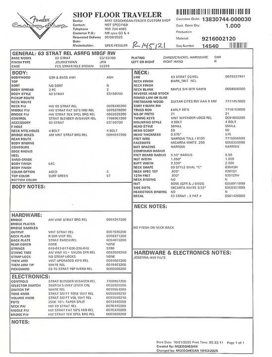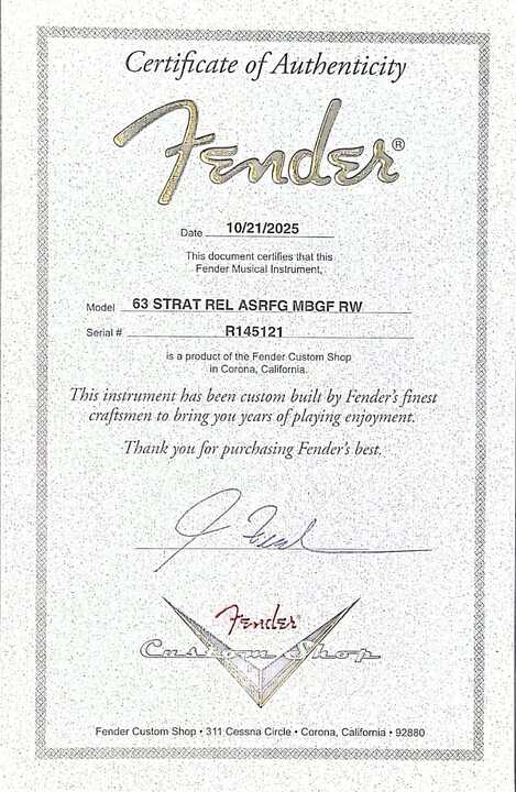 Every detail reflects the care of a Masterbuilder. From the relic work to the wiring to the hand wound pickups, this Strat is built to feel alive in your hands and ready for years of playing.