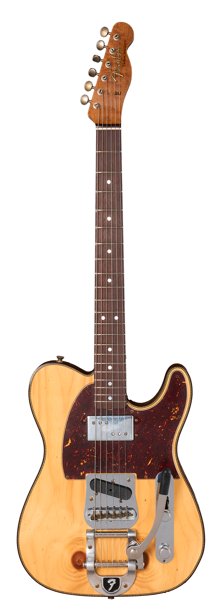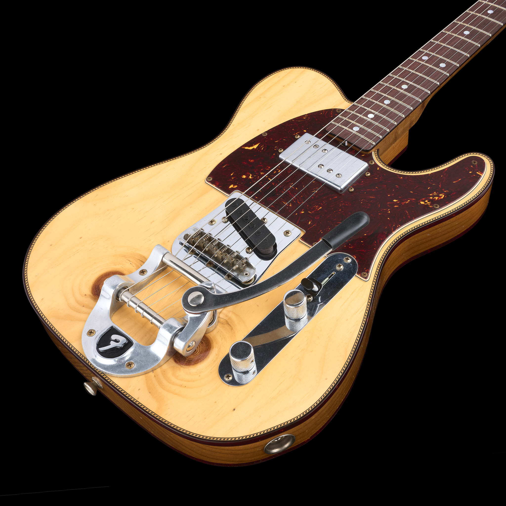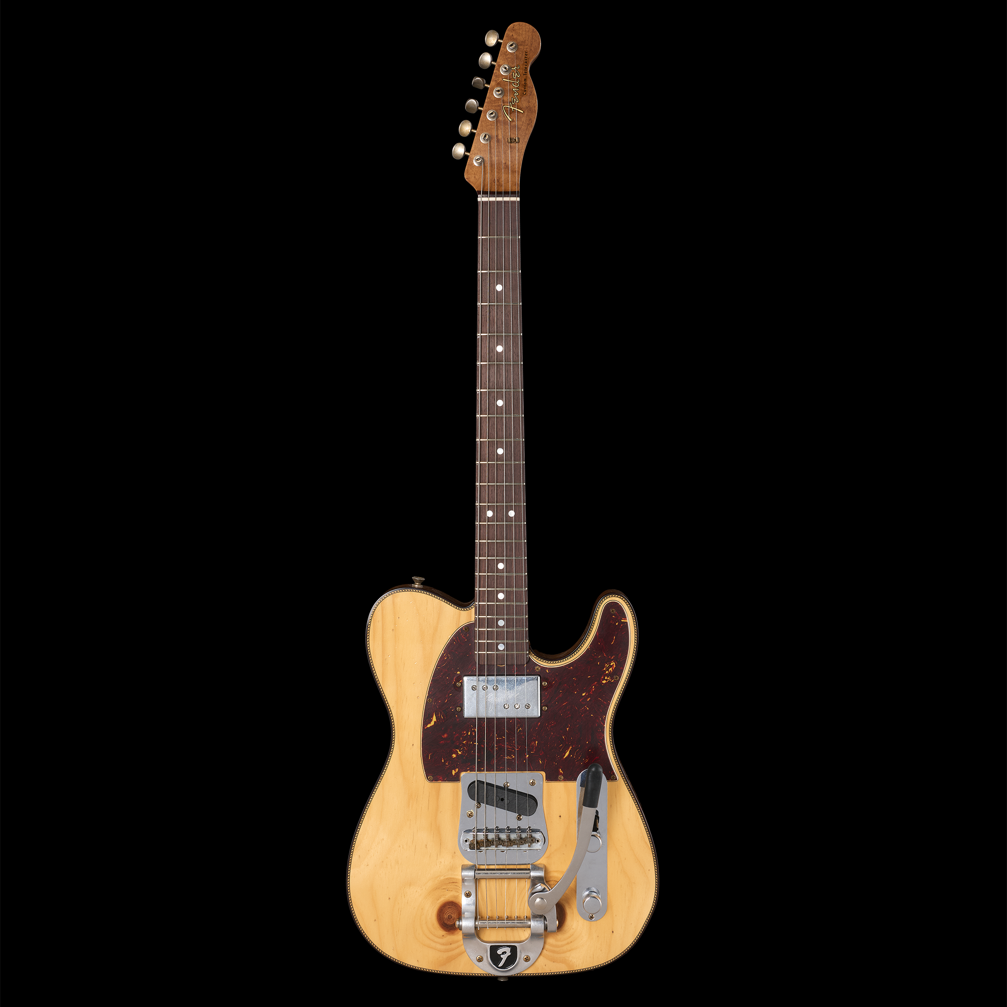 This Fender Custom Shop '60s Telecaster Custom is a visually stunning and sonically powerful instrument that blends vintage character with modern enhancements. Built from roasted pine with a knotty pine top, this guitar boasts a unique, organic aesthetic elevated by rope purfling binding and a tortoiseshell pickguard. Aged to perfection, the body exudes a well-traveled look, while the Bigsby B5 vibrato tailpiece adds smooth, expressive pitch control.