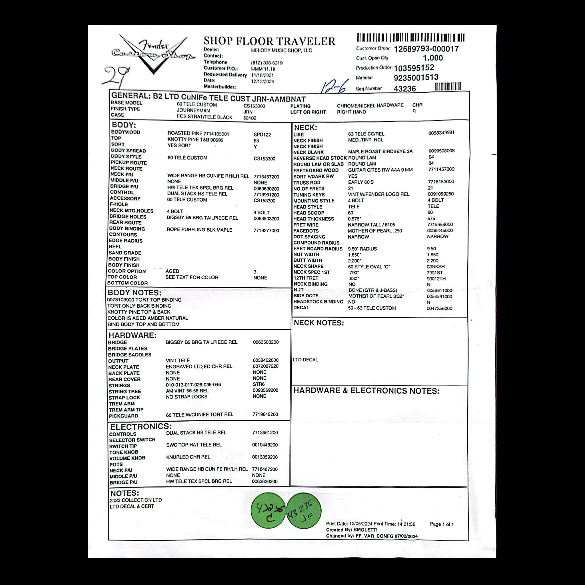 With engraved limited-edition details, vintage-style hardware, and a perfectly worn medium-tint finish, this one-of-a-kind Telecaster is built for players who demand tone, feel, and aesthetic authenticity in equal measure.