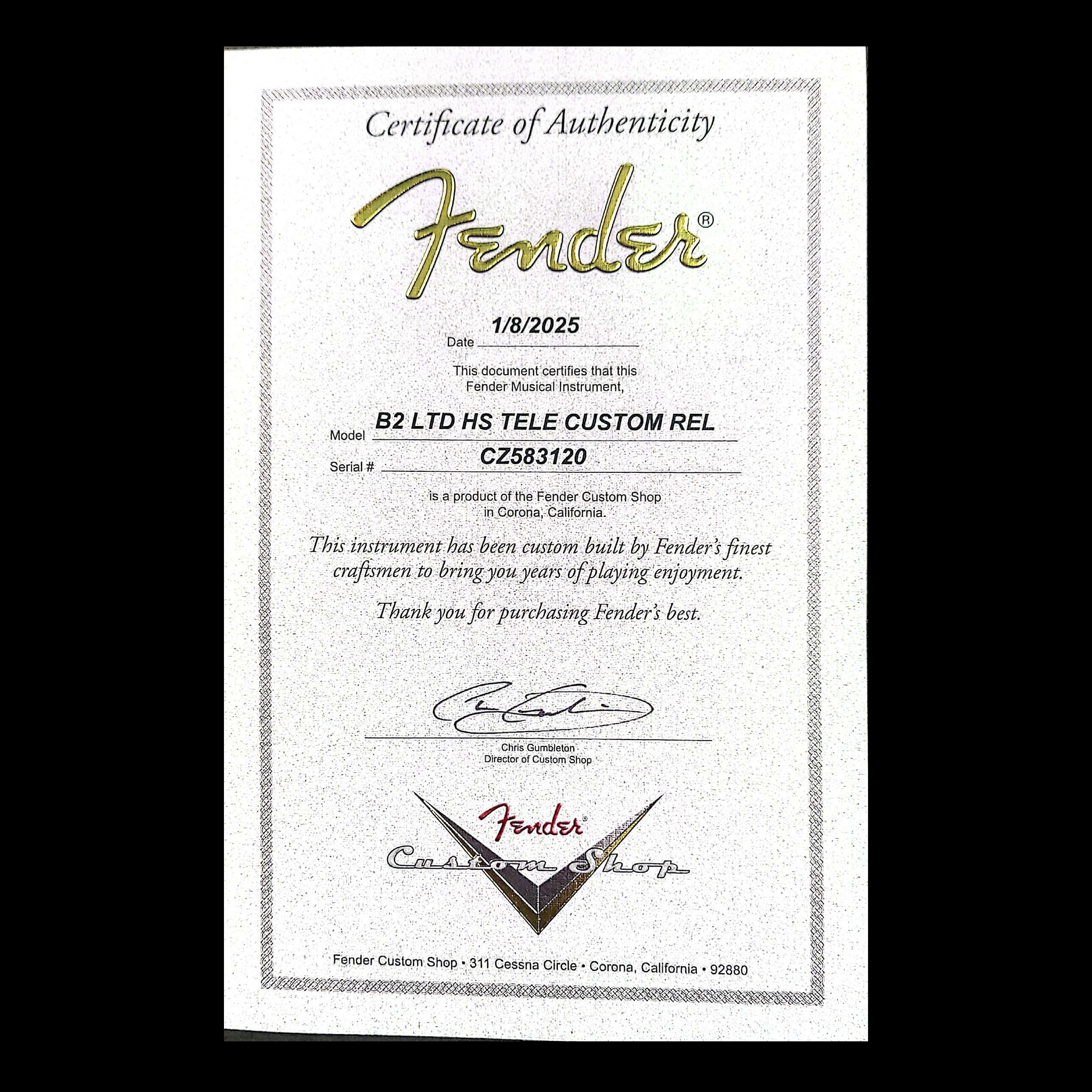 This Fender Custom Shop Telecaster blends vintage attitude with modern craftsmanship. Featuring a sleek black nitro finish with tasteful relic wear, a select ash body, and a quartersawn maple neck with a dark rosewood fingerboard, it’s built for tone and feel. Hand-wound pickups deliver that signature Tele twang with added warmth and clarity, while aged hardware and a classic 3-saddle bridge complete the road-worn aesthetic.