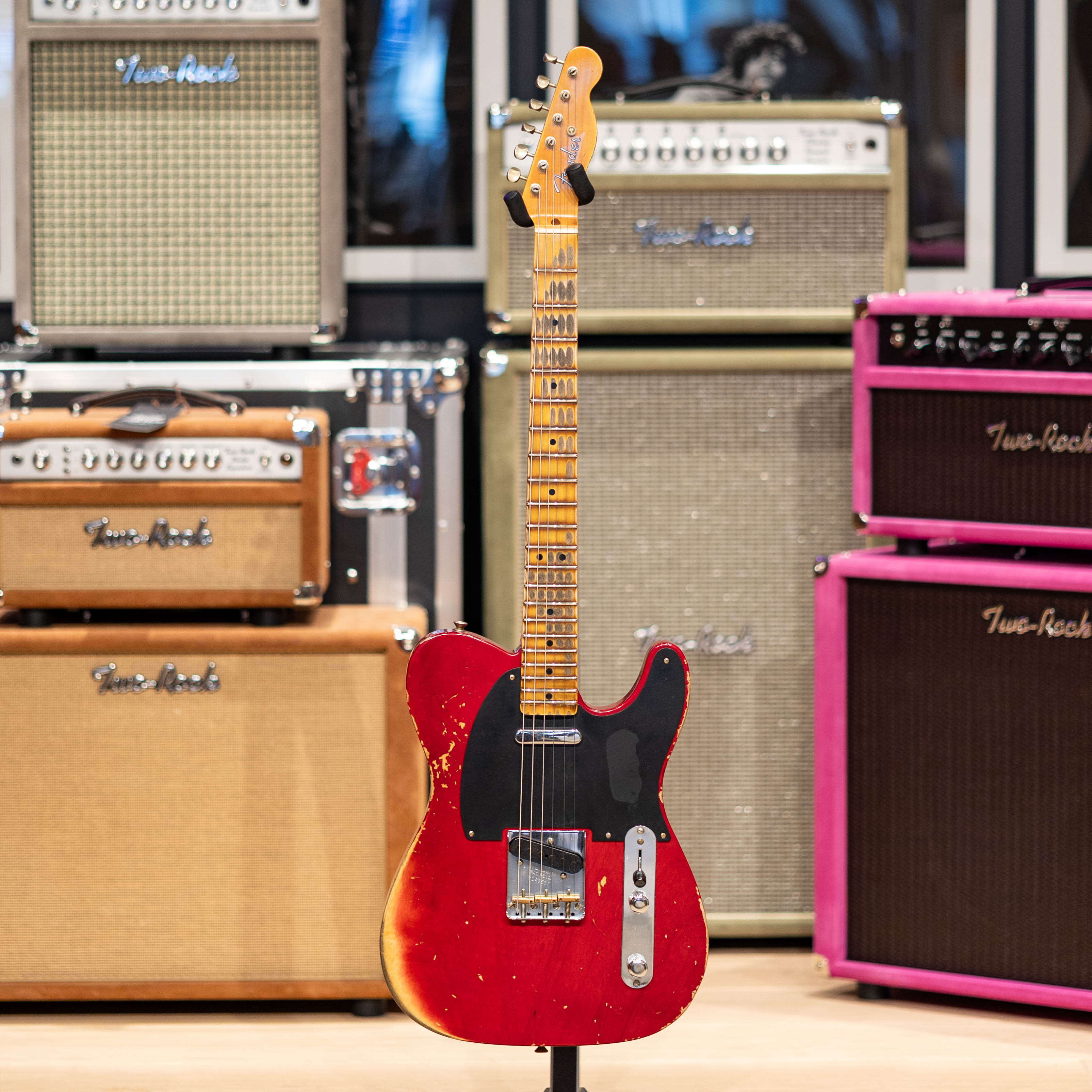 This 1951 NoCaster comes to us from the Fender Custom Shop with the kind of feel that made the early Blackguards so important. The Heavy Relic work is convincing without going over the top, and the Crimson Transparent finish lets the ash body show through in a way that feels both classic and a little unexpected. It looks like it has lived a full life, but it still feels fresh and responsive in the hands.