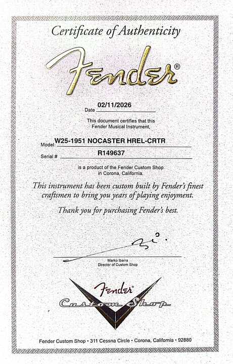 Model: Fender Custom Shop W25‑1951 NoCaster Heavy Relic