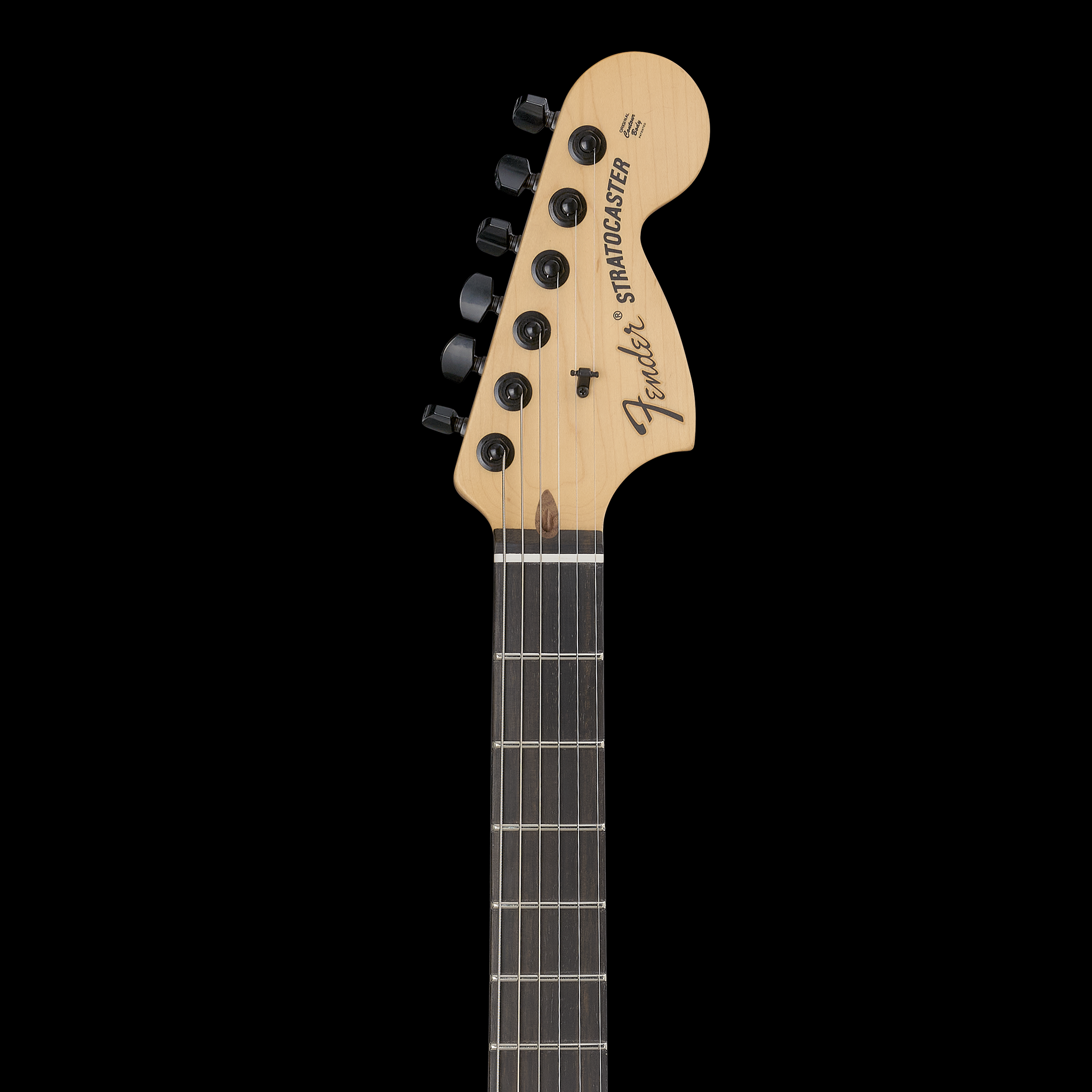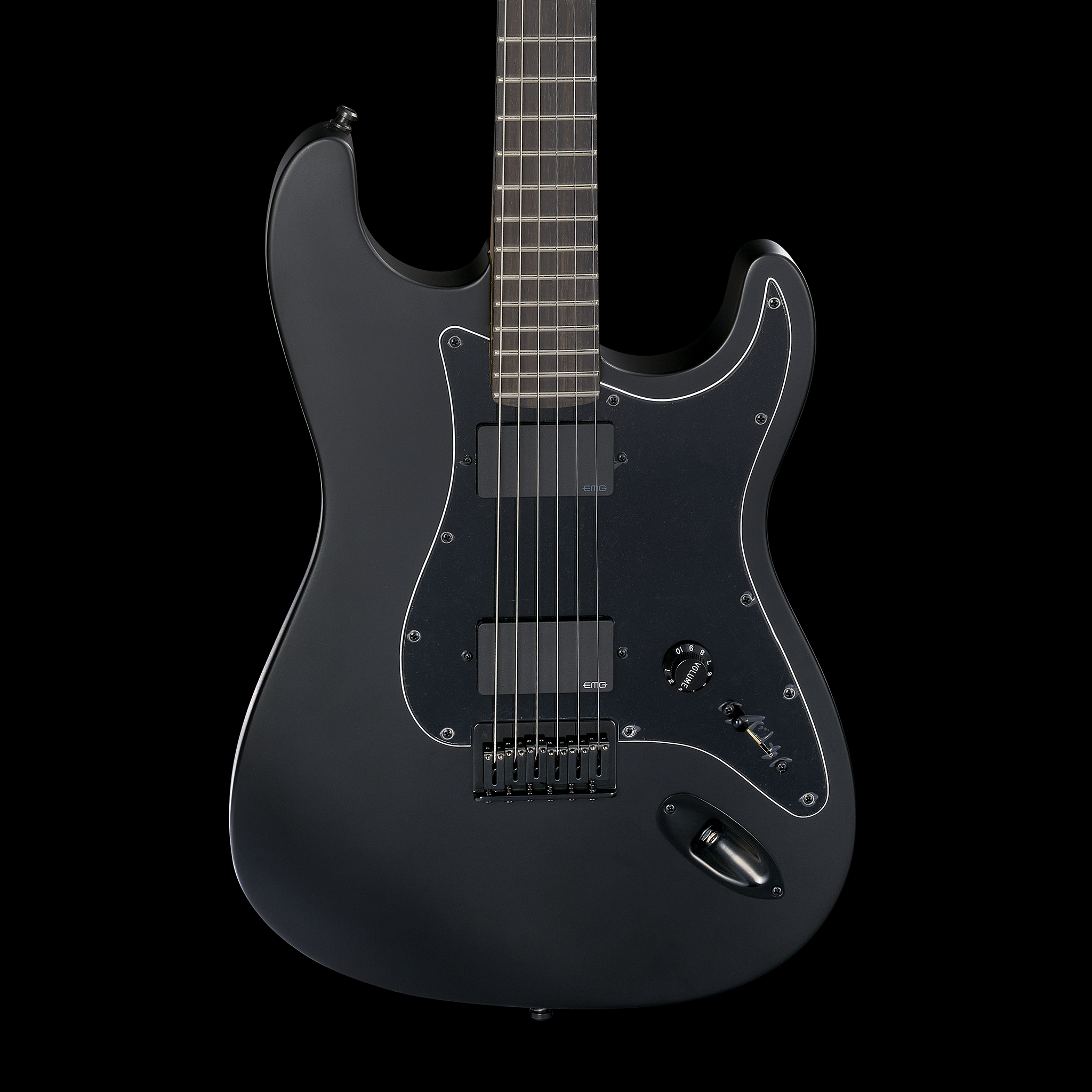 Featuring a mahogany body with sharp edges and a sleek Modern "C" neck profile, this guitar prioritizes comfort and durability. Its compound-radius ebony fingerboard (12" to 16") ensures smooth transitions between riffing and shredding, while jumbo frets and subtle side-dot inlays keep things precise and uncluttered. A pair of EMG® active humbuckers—60 at the neck and 81 at the bridge—deliver a high-output sound with crushing lows and razor-sharp clarity. With a single volume knob, three-way switch, and hardtail bridge, the Jim Root Stratocaster is a streamlined machine built for heavy-duty performance.