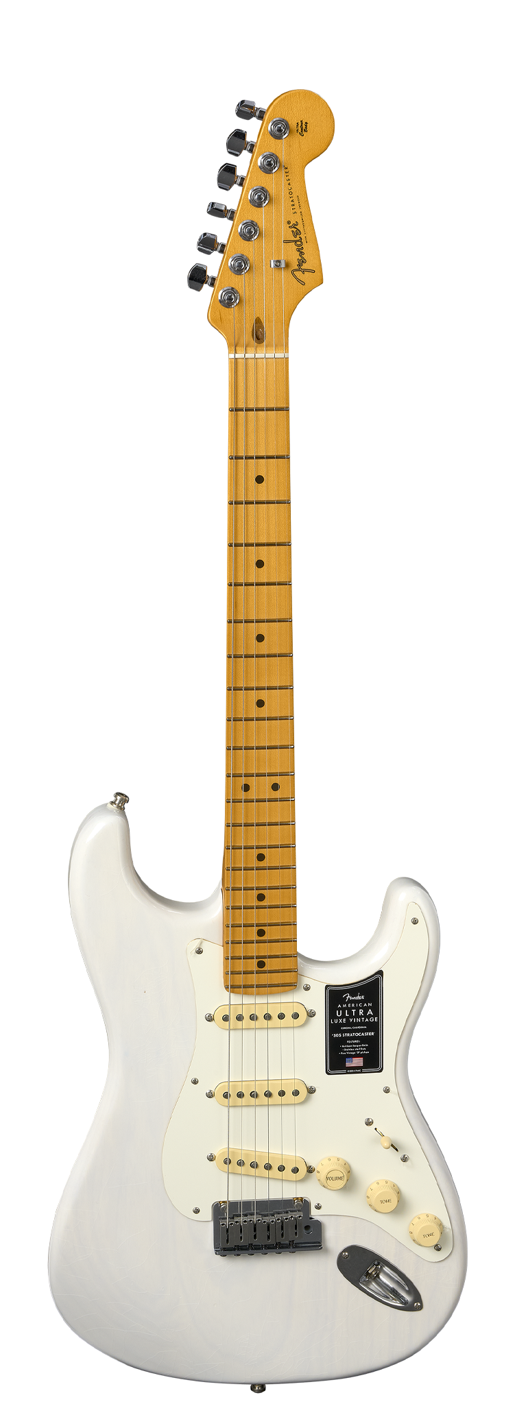 The Fender Ultra Luxe 50s Stratocaster MN – White Blonde is the ultimate blend of vintage Fender style and modern performance. Crafted from select ash or alder with sleek Ultra Contours, this Stratocaster features Fender’s Heirloom™ lacquer finish for the authentic look and feel of a treasured vintage guitar. The quartersawn maple neck with a Modern “D” profile and tapered neck heel ensures incredible playability, while the 10”-14” compound radius fingerboard with Ultra rolled edges and Luminlay® side dots offers comfort and visibility on any stage.