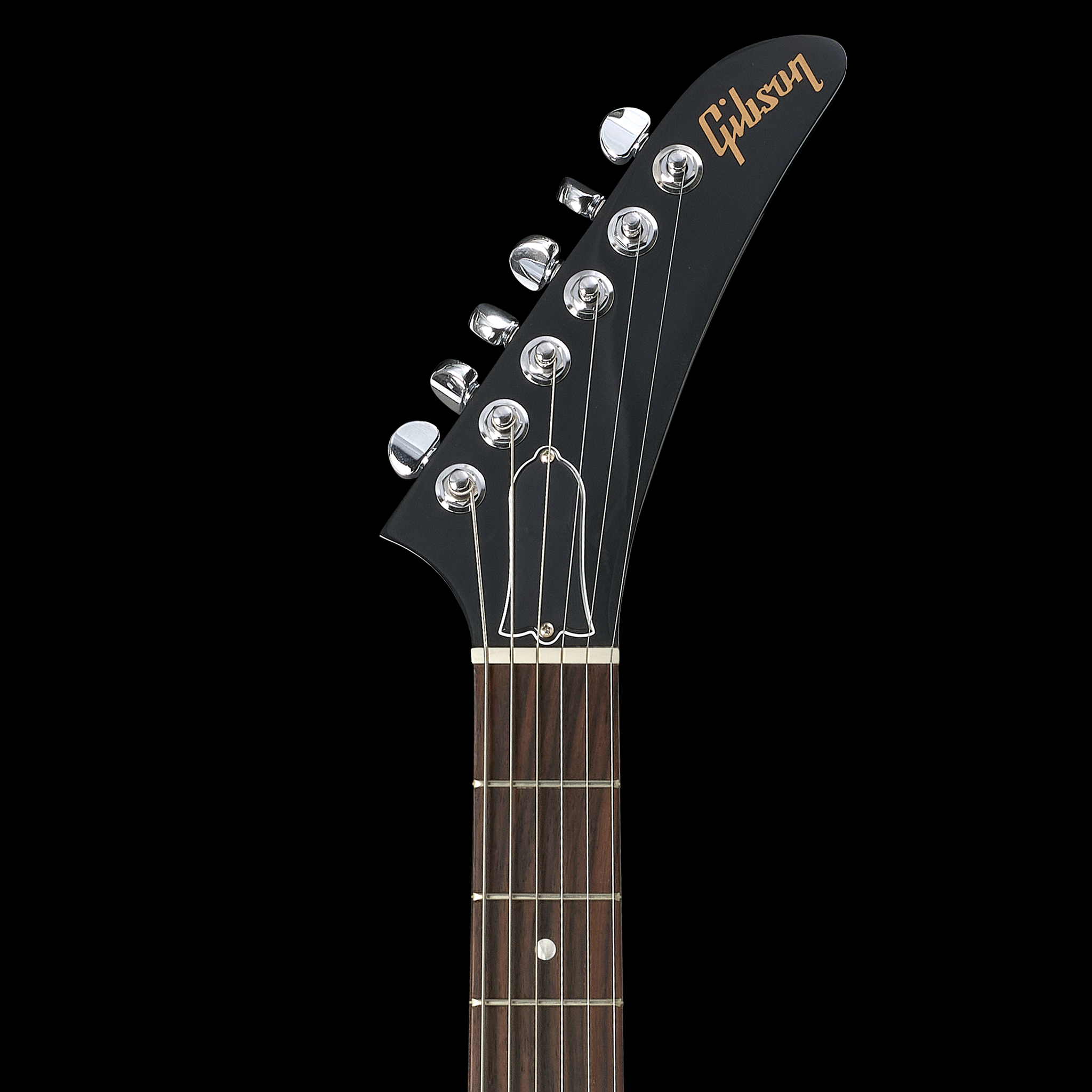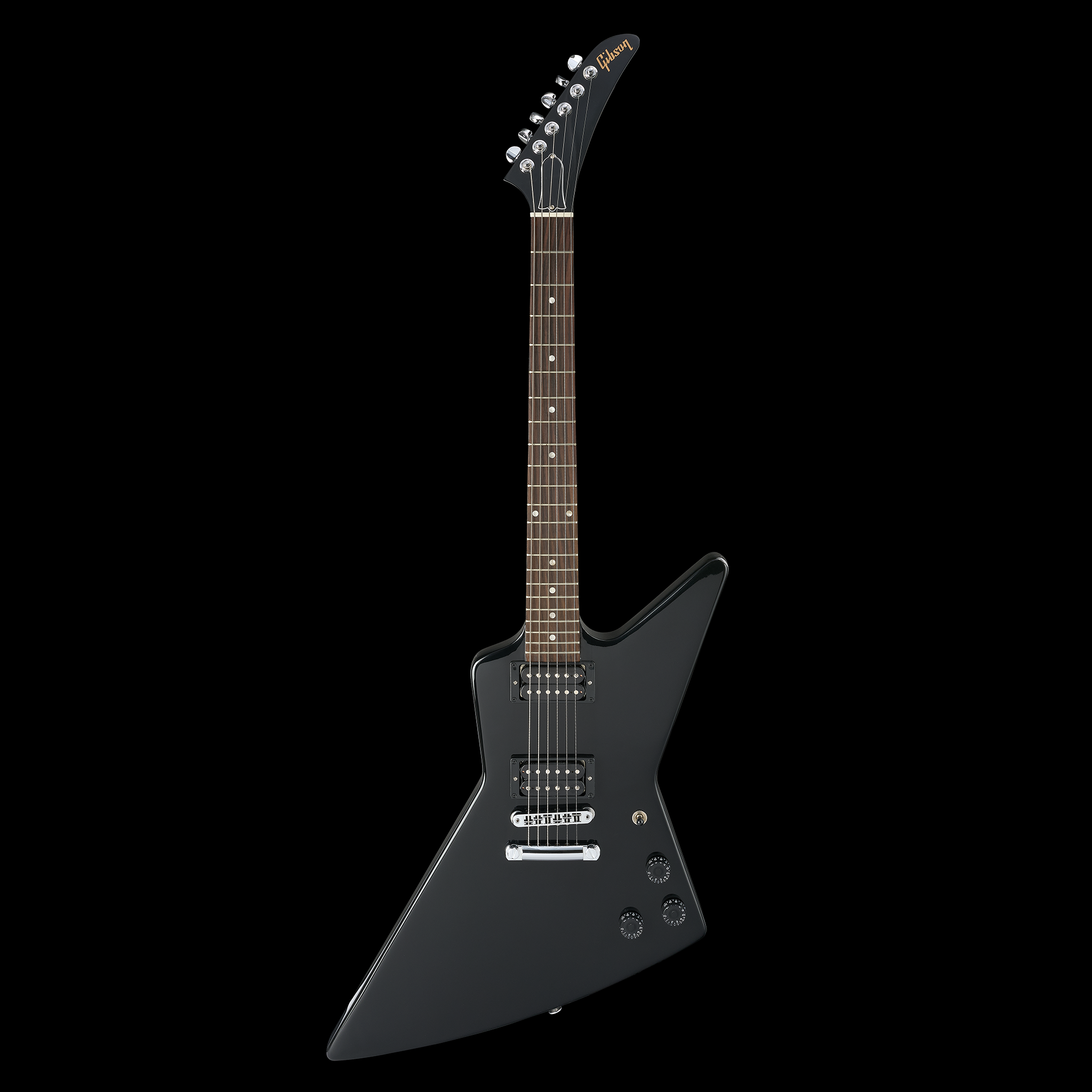 The Gibson 80s Explorer in Ebony revives the raw power and unmistakable style that defined a generation of rock and metal. Modeled after the 1984 classic, this guitar boasts a sleek, angular mahogany body that screams attitude, paired with a fast-playing SlimTaper™ mahogany neck and a rosewood fingerboard for ultimate comfort and speed. Its bold silhouette and timeless ebony finish make it the perfect stage companion for those who demand attention.
