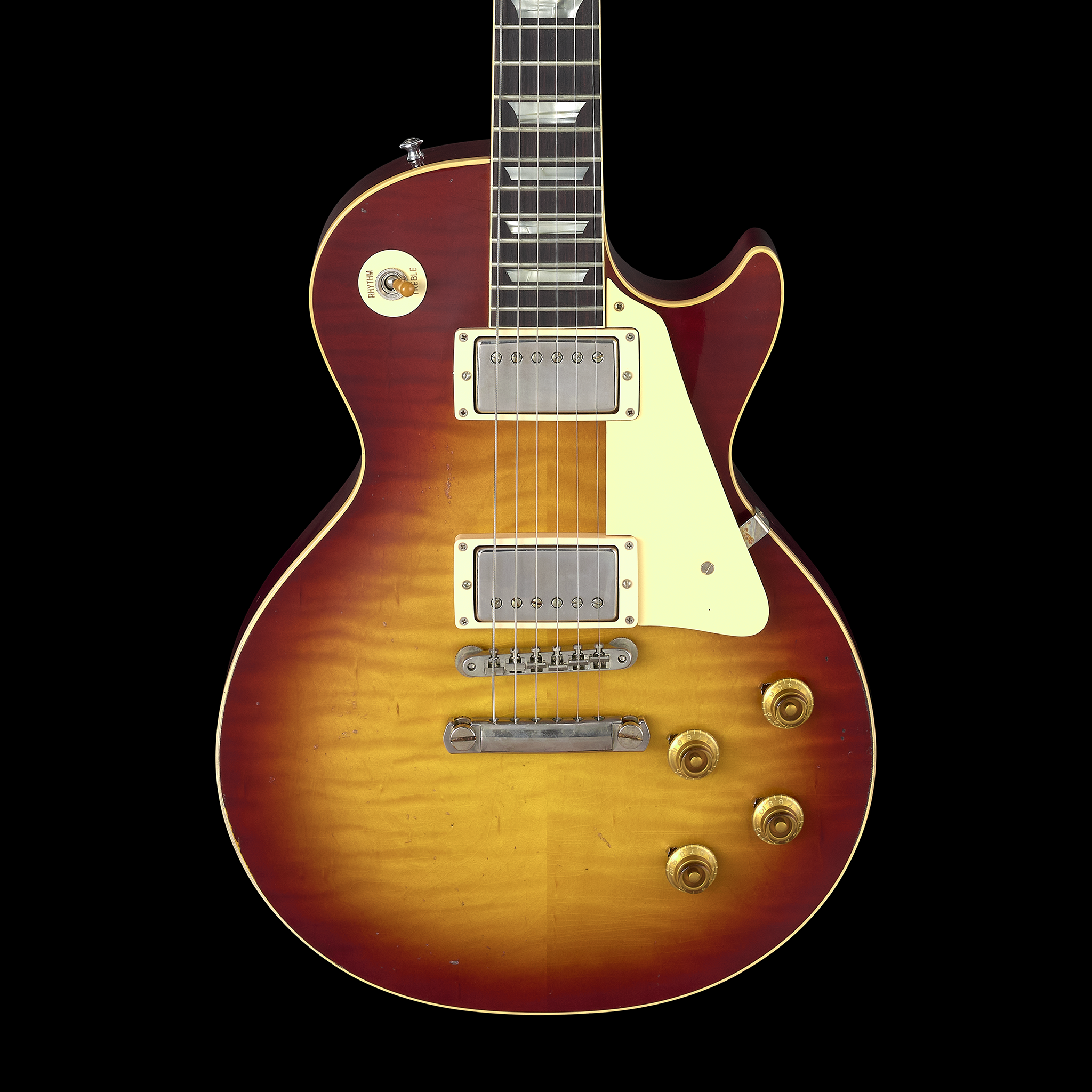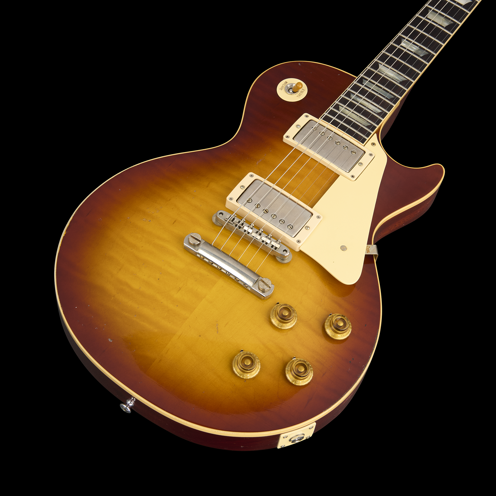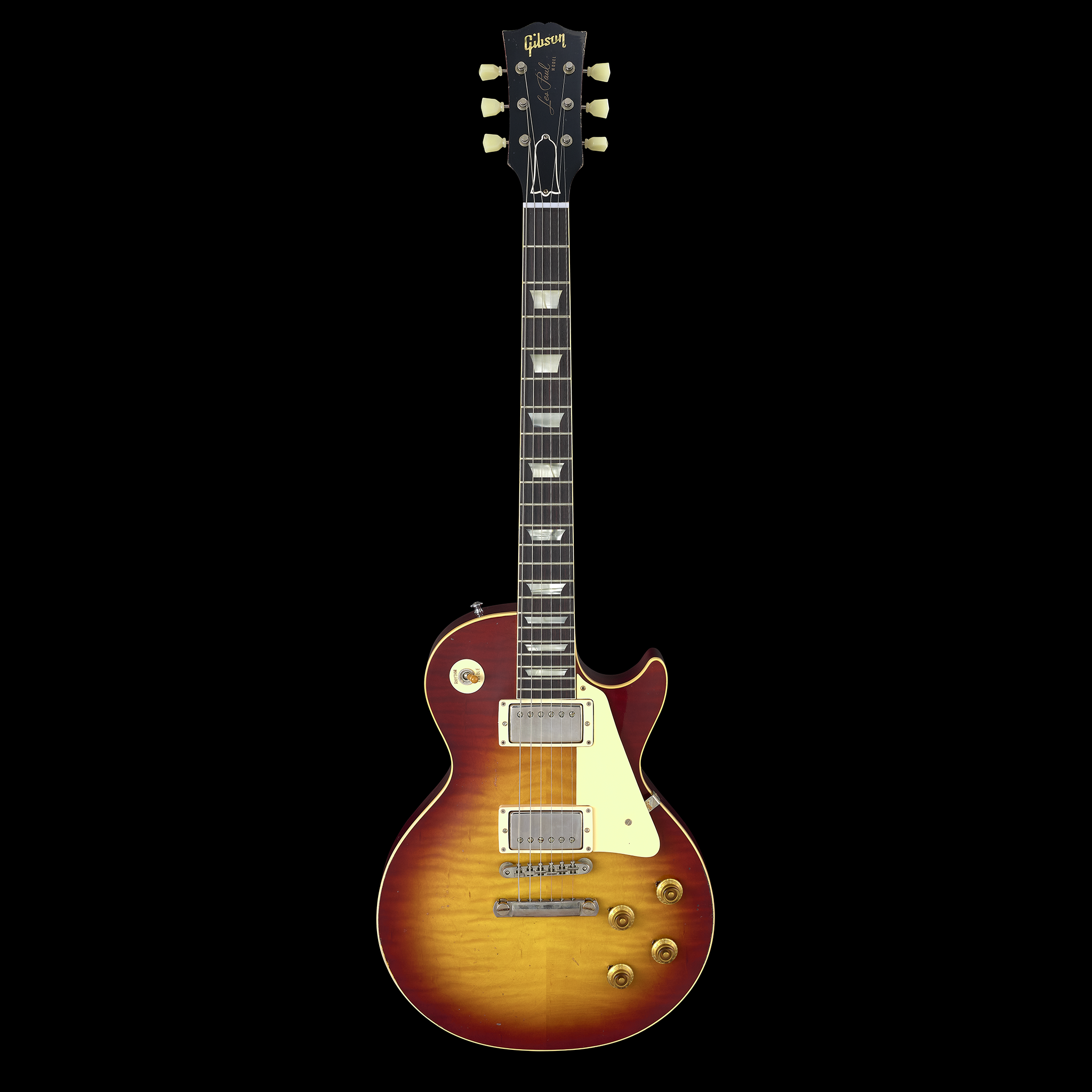 The 1959 Les Paul™ Standard in Light Aged Cherry Tea Burst captures the essence of a legendary guitar, painstakingly recreated by the Gibson Custom Shop. Revered as the "Holy Grail," this reissue embodies the timeless design, tone, and aesthetic of the original 1959 models. Every detail, from the laser-scanned dimensions to the chemically recreated plastics and color-matched sunburst finish, has been executed with unparalleled precision.