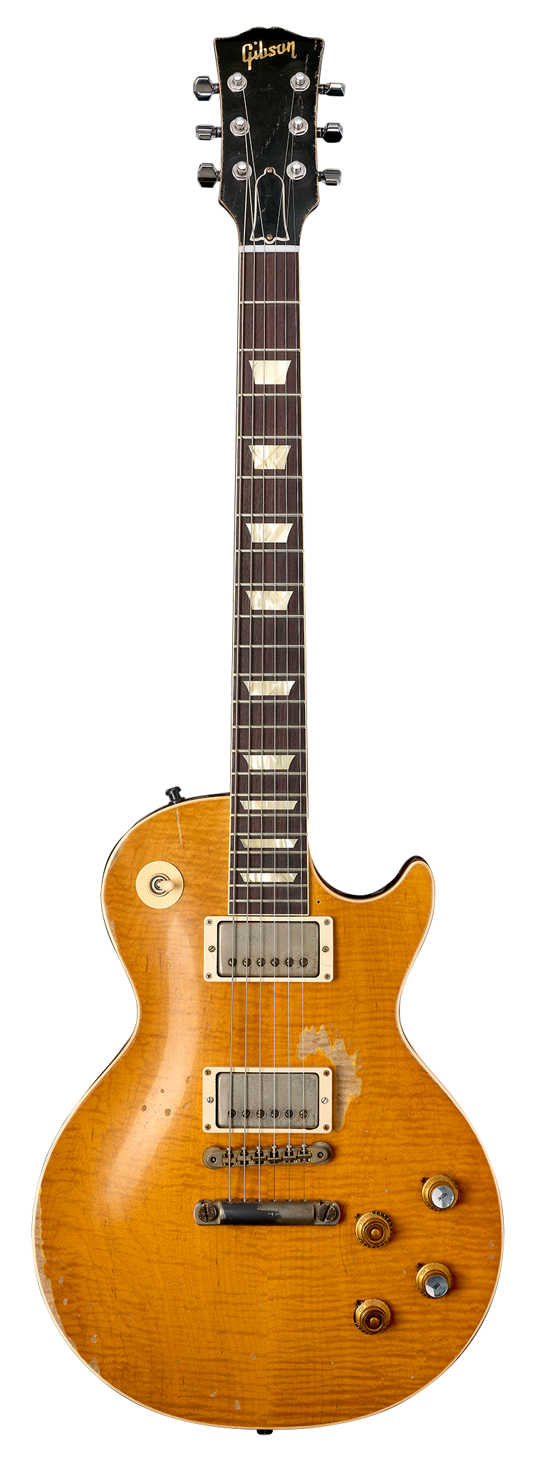 Crafted with an Indian rosewood fretboard, this Custom Shop masterpiece delivers the premium playability and tonal richness expected of a vintage Les Paul Standard. From the classic mahogany body with a figured maple top to the meticulous hand-aging, every element embodies Gibson's pinnacle craftsmanship. Complete with a brown/pink Lifton™ reissue 5-latch case, this guitar is both a playable work of art and a nod to an unparalleled legacy.