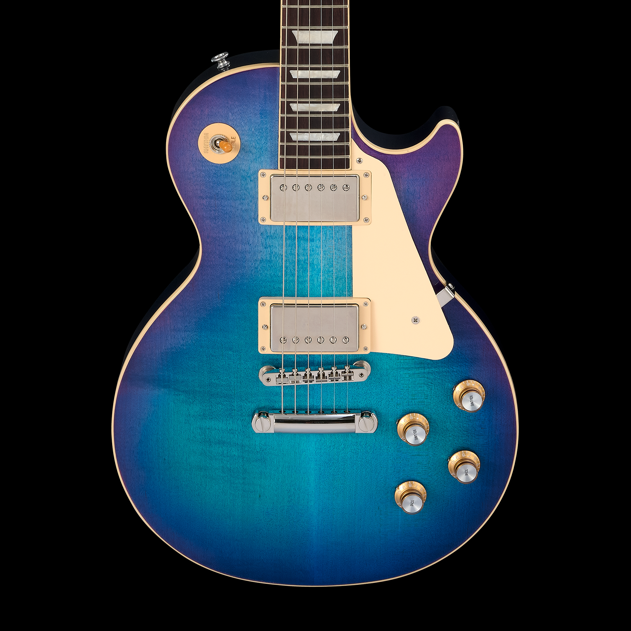 Outfitted with 60s Burstbucker™ pickups powered by Alnico 5 magnets, this model produces versatile tones that shine in any musical context. The ABR-1 Tune-O-Matic™ bridge, aluminum Stop Bar tailpiece, and Grover® Rotomatic® tuners ensure superior tuning stability and precision. Topped off with elegant gold Top Hat knobs with silver reflectors and a Blueberry Burst finish, this guitar is as visually striking as it is sonically dynamic. A Gibson hardshell case is included for reliable protection.