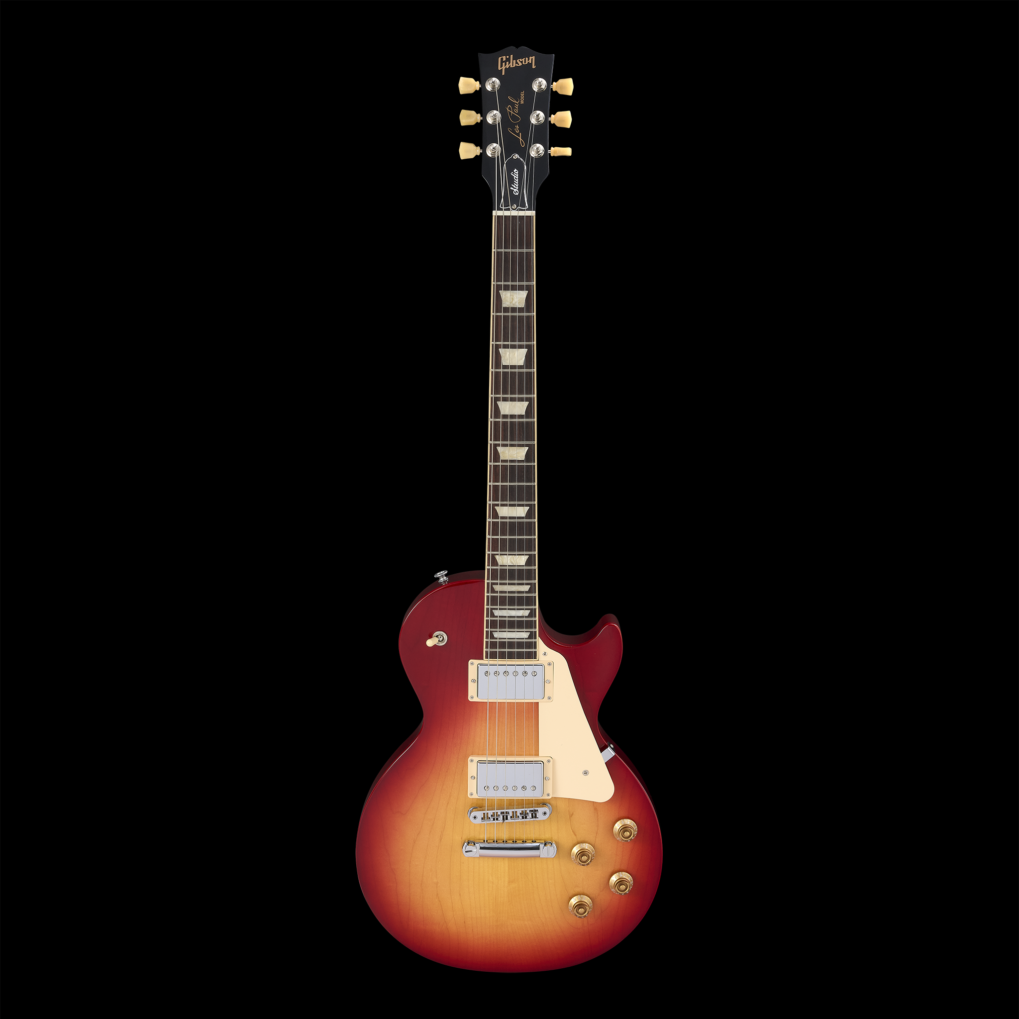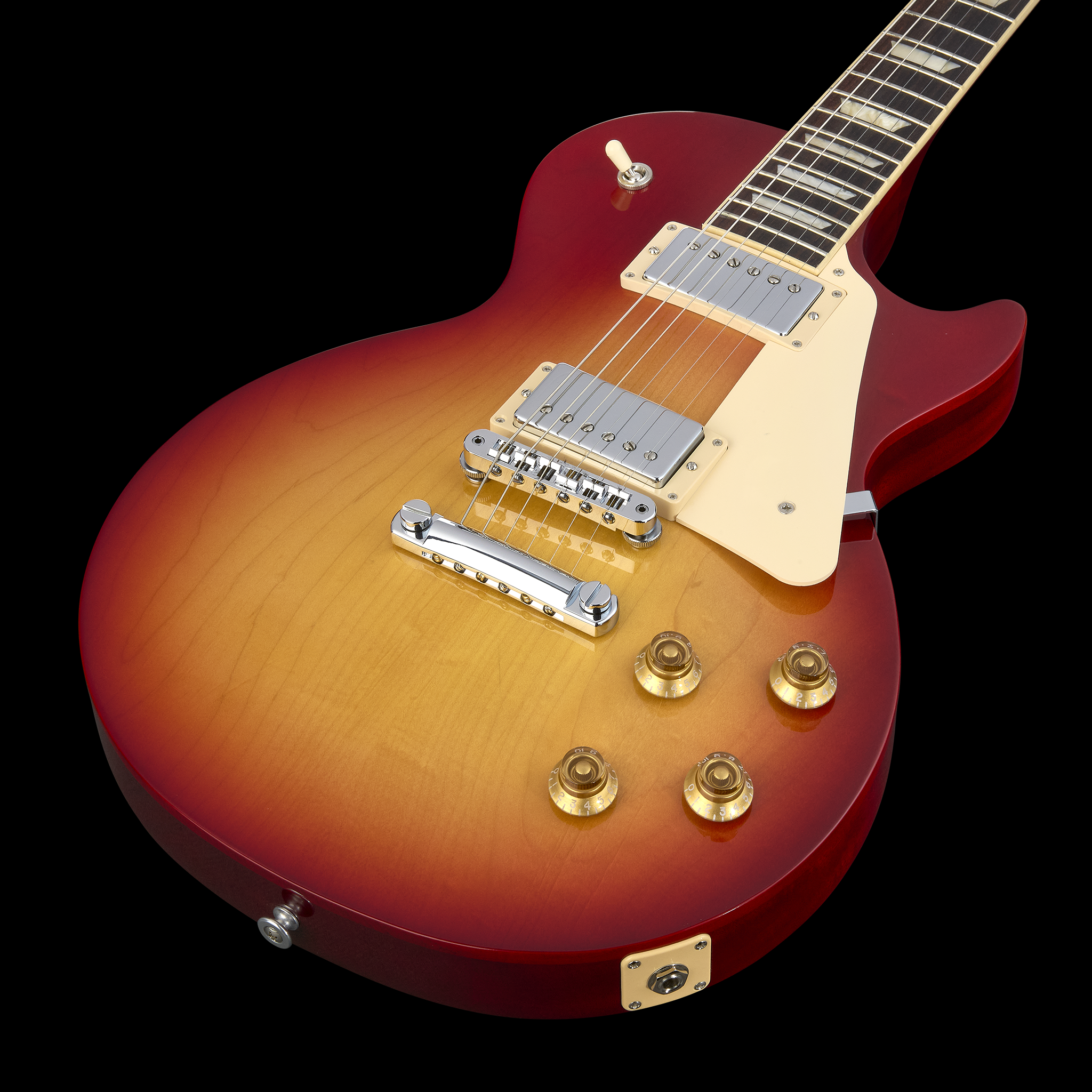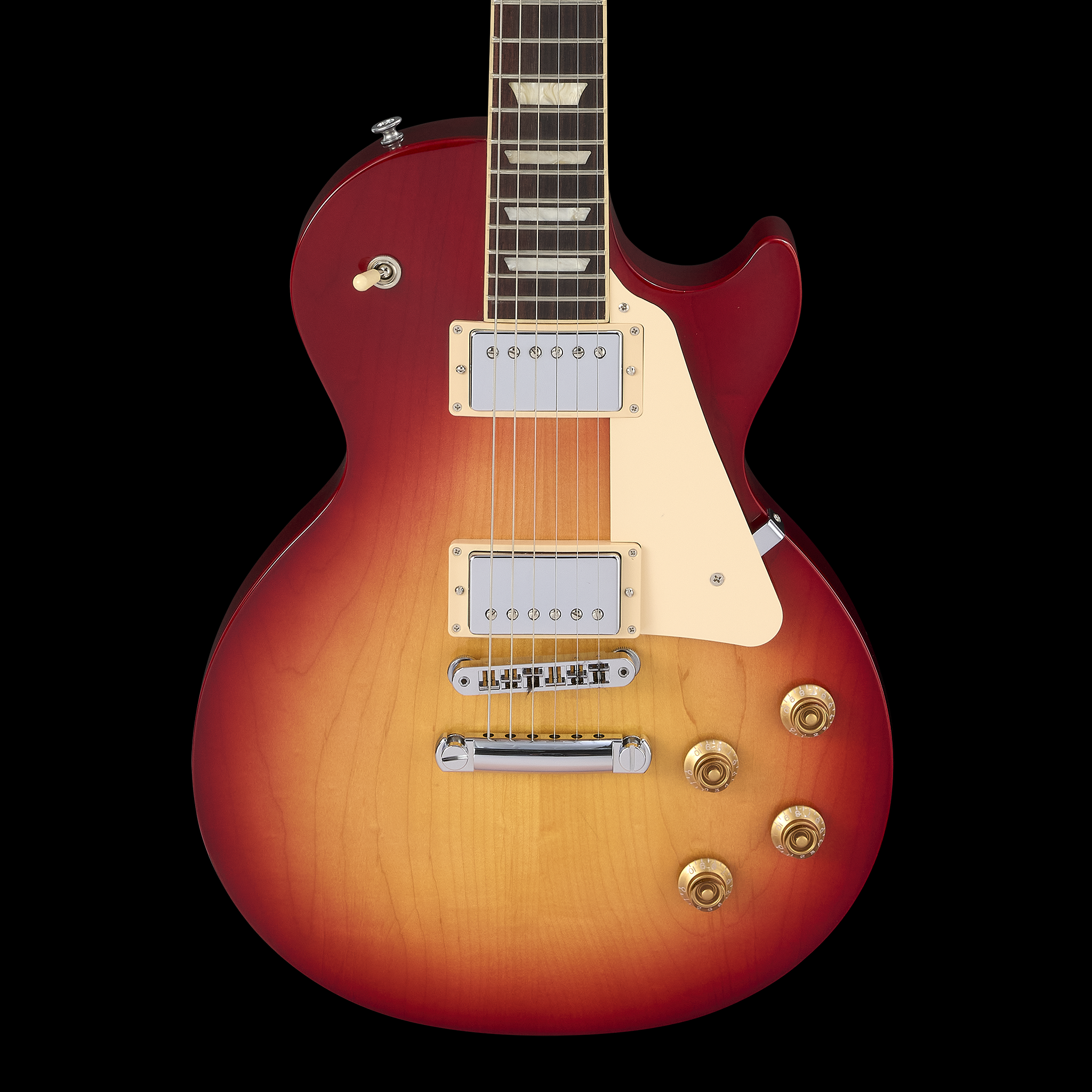 The Les Paul Studio in Cherry Sunburst delivers everything players love about a Les Paul in a sleek, lightweight design. Its Ultra-Modern weight-relieved mahogany body provides comfort and resonance, while the plain maple cap adds tonal clarity and punch. The SlimTaper™ mahogany neck and bound rosewood fretboard with trapezoid inlays offer a smooth, fast playing experience, complemented by classic cream plastics and Vintage Deluxe tuners for timeless appeal.