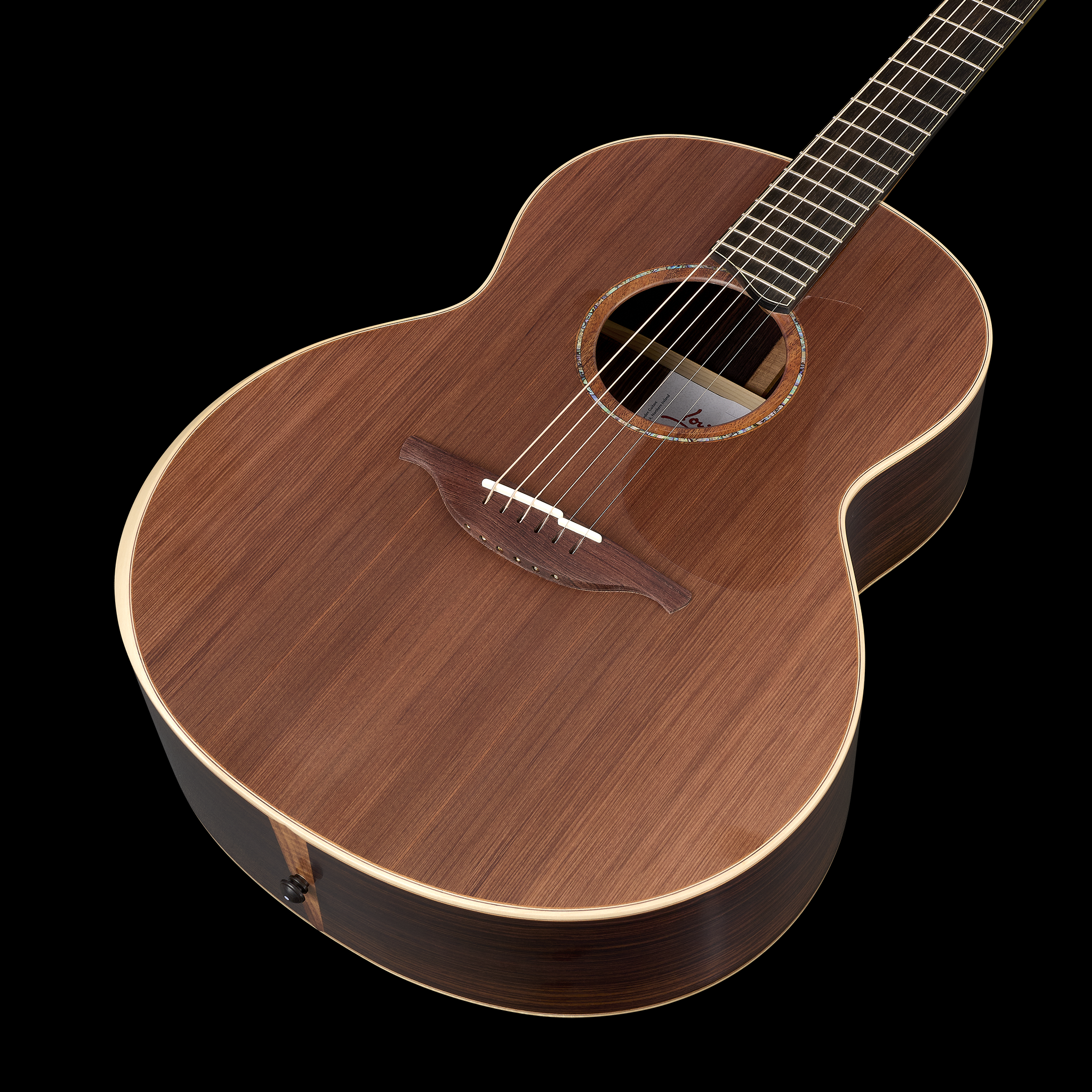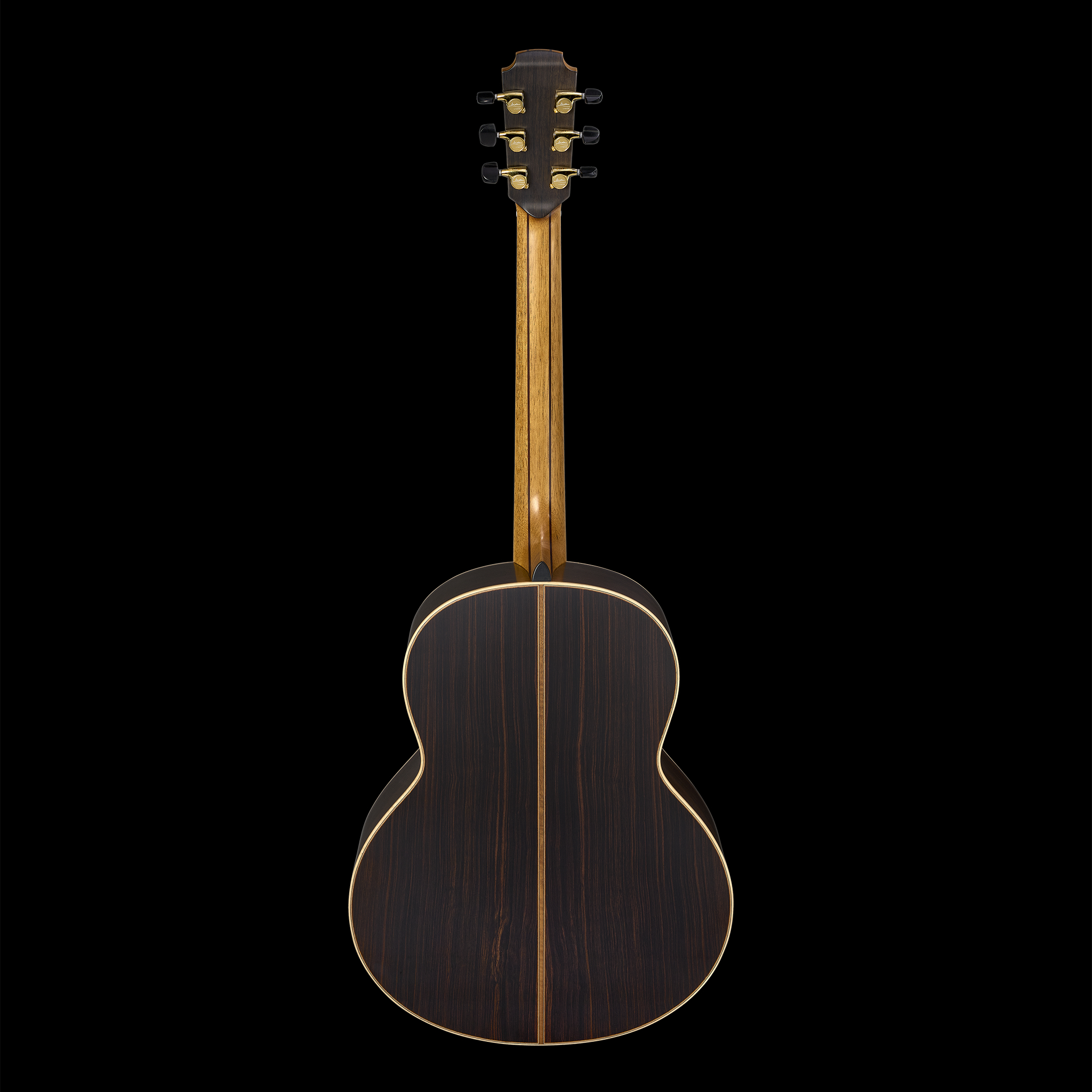 Its 5-piece Mahogany and Rosewood neck offers a smooth, intimate feel, especially with the shorter 630mm scale length. The Ebony fingerboard with Maple bindings adds clarity and elegance, while Gotoh 510 Gold tuners with Ebony buttons provide precise, stable tuning.