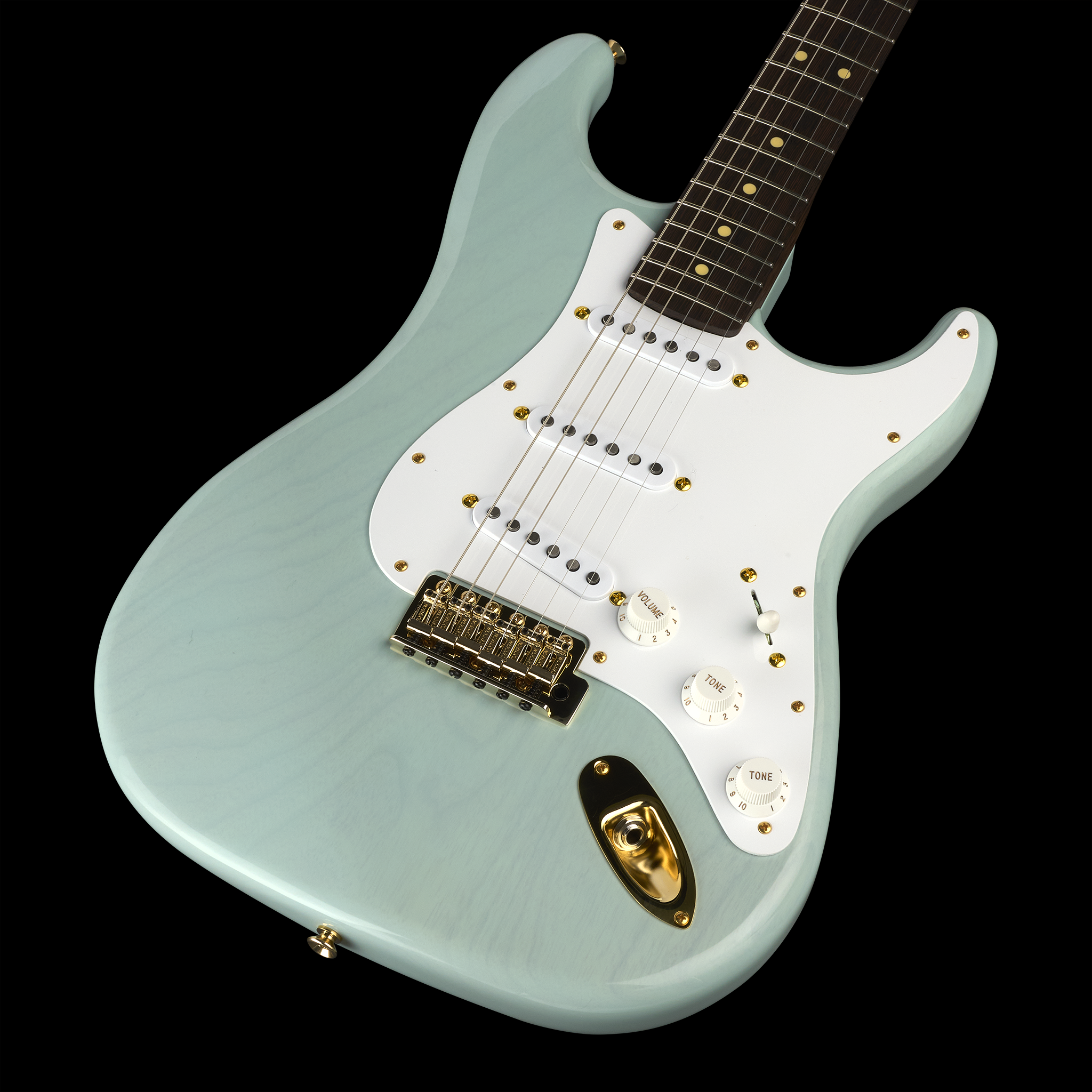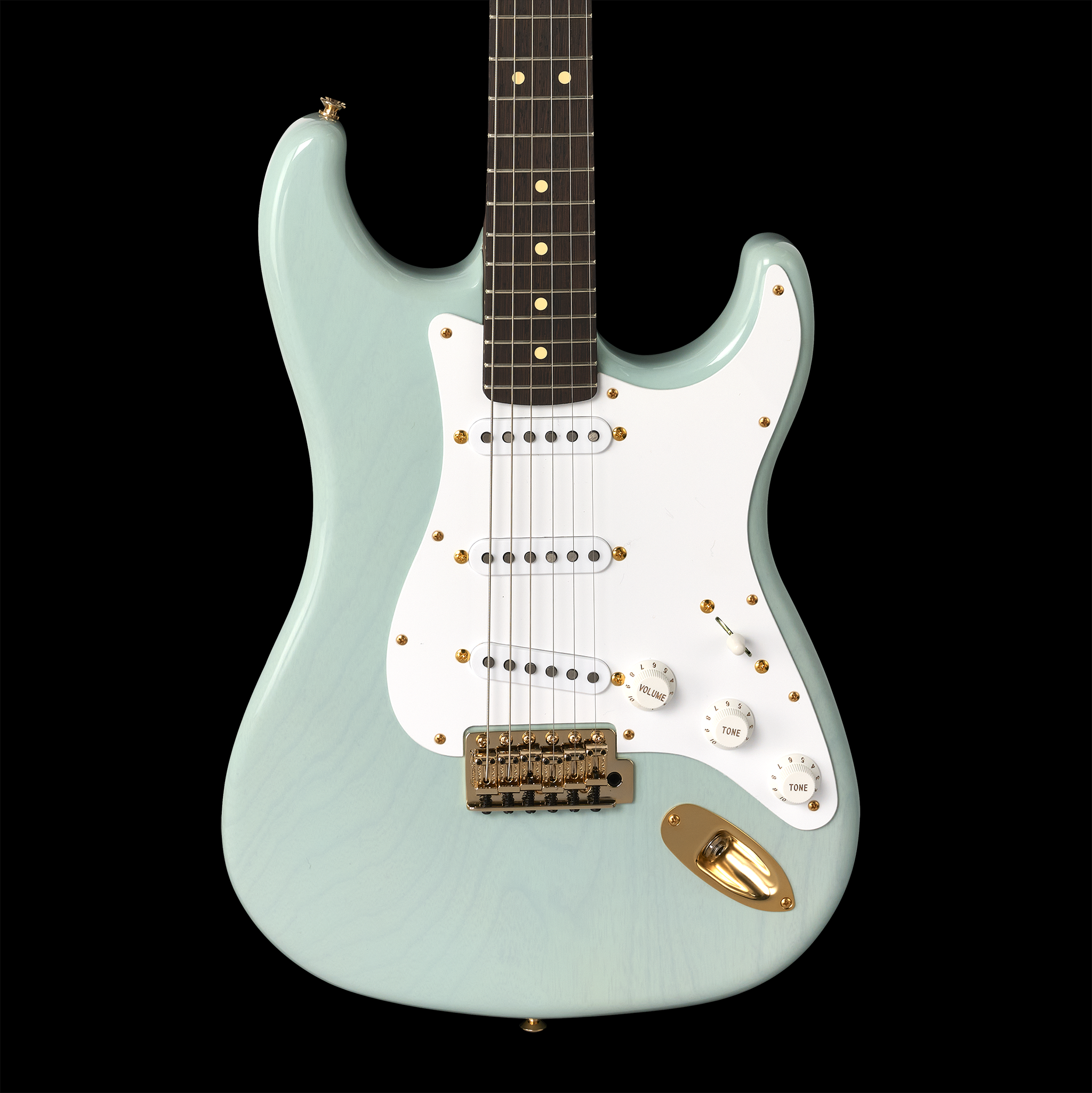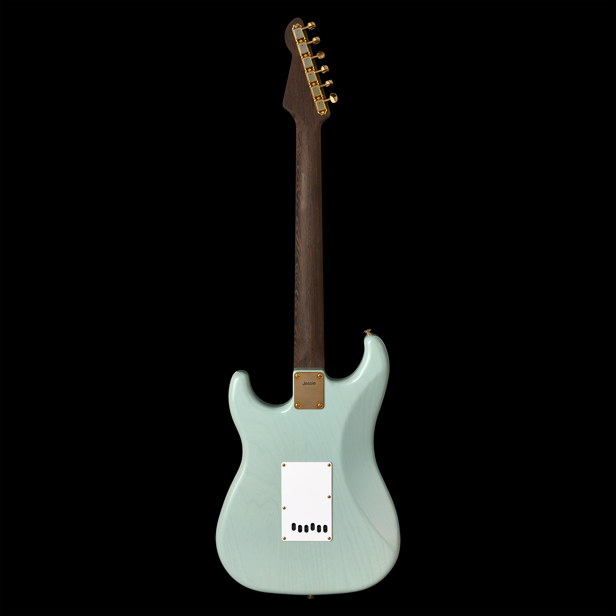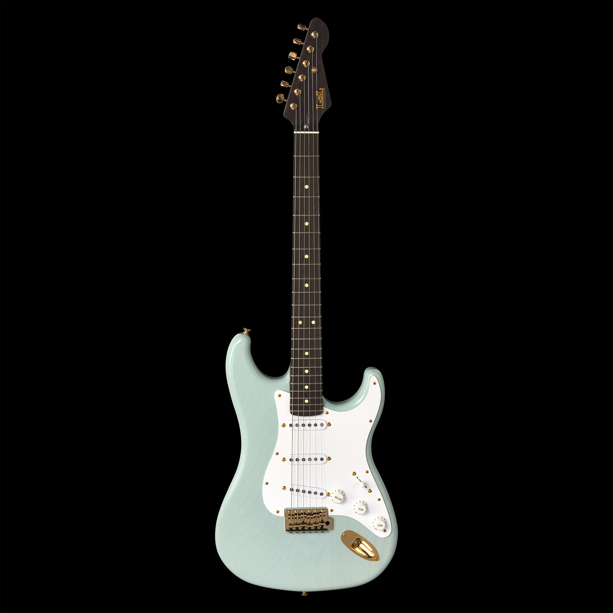 The LsL Saticoy SSS in Trans Sonic Blue Mary Kaye blends classic tone with elegant modern aesthetics. Its swamp ash body, finished in a stunning translucent Sonic Blue Mary Kaye, delivers a resonant, vintage-inspired sound. Gold-plated vintage hardware complements the minimal aging for a timeless, refined look. The oiled Wenge neck and fingerboard offer a smooth feel, paired with a comfortable Medium C profile, 9.5" radius, and 22 6105 frets for exceptional playability.
