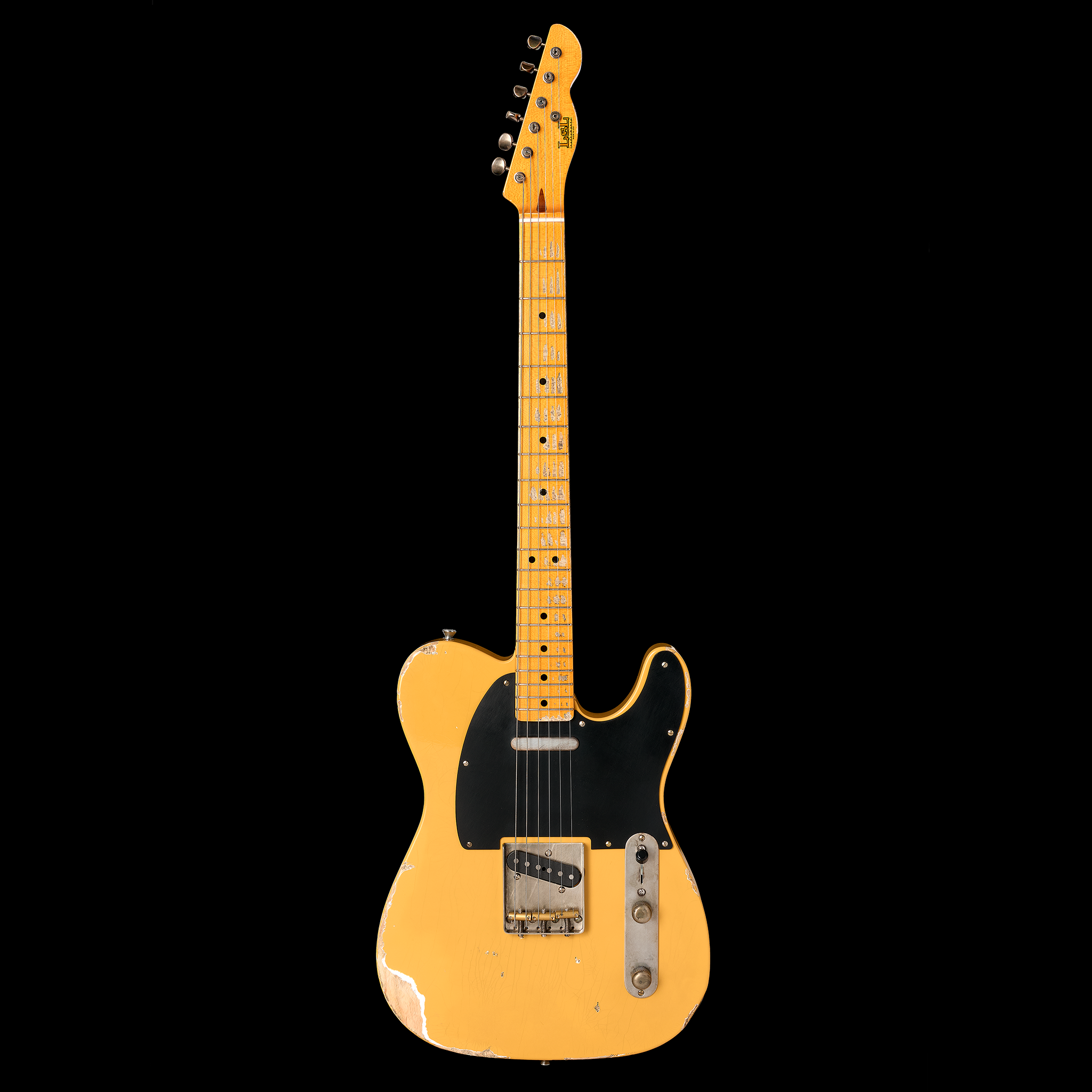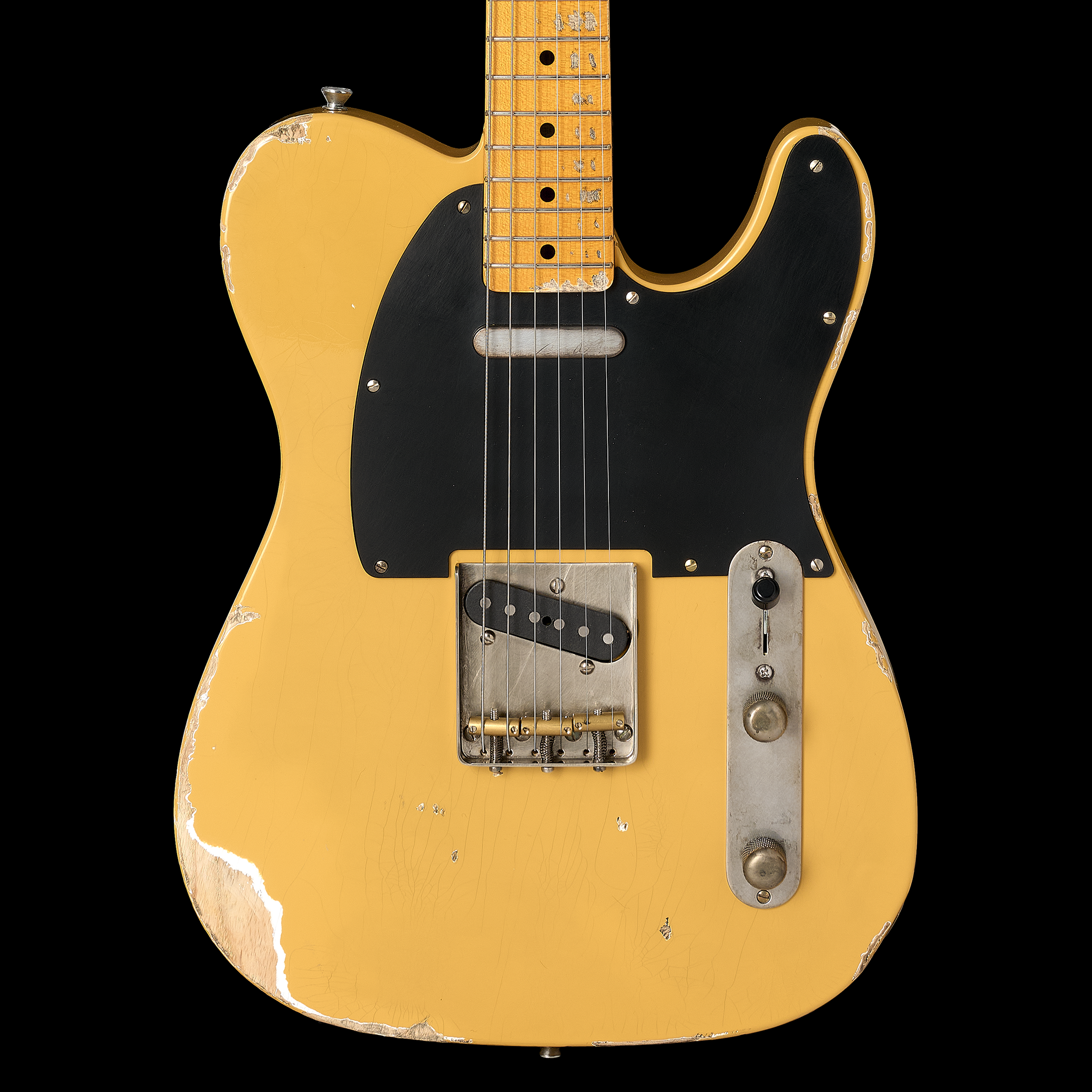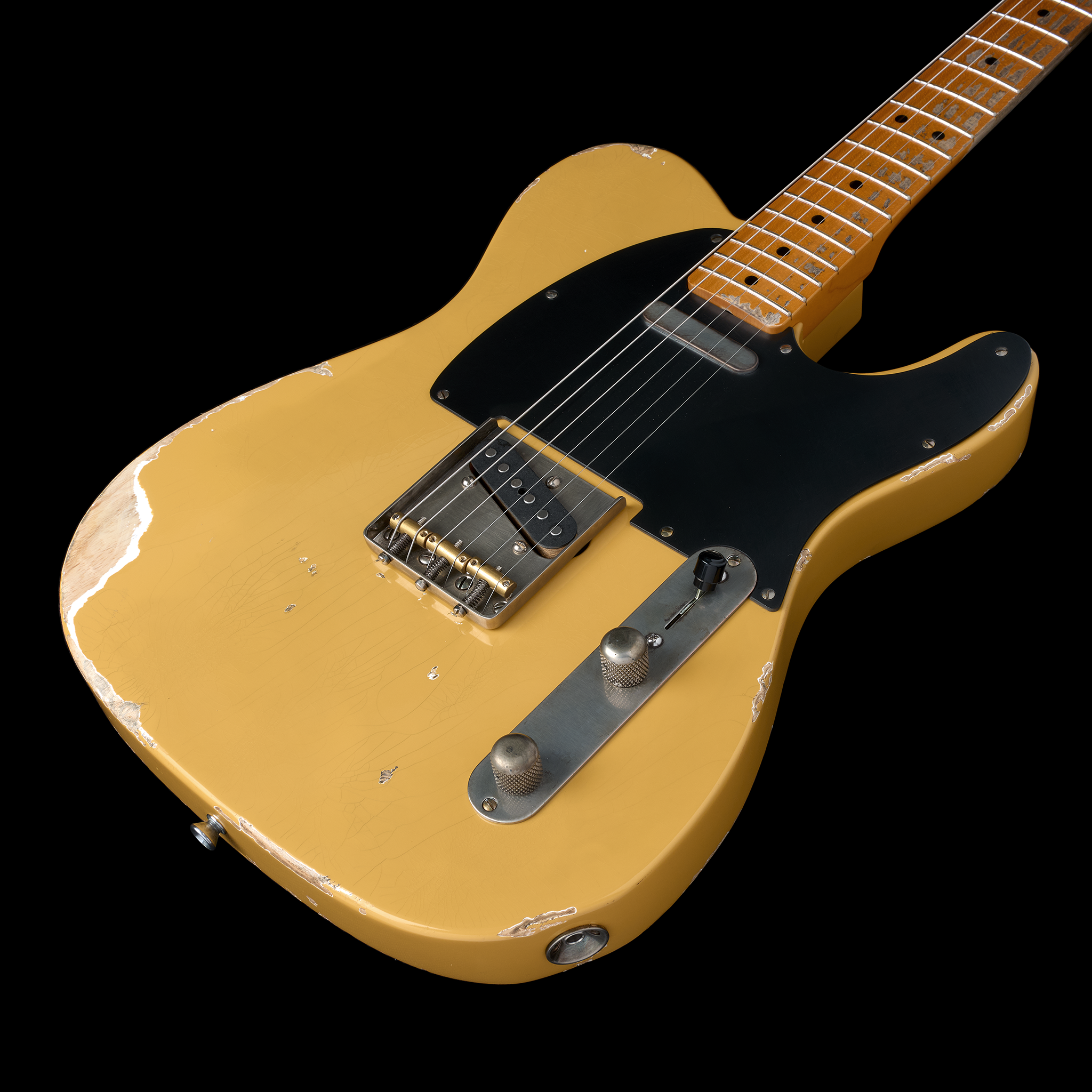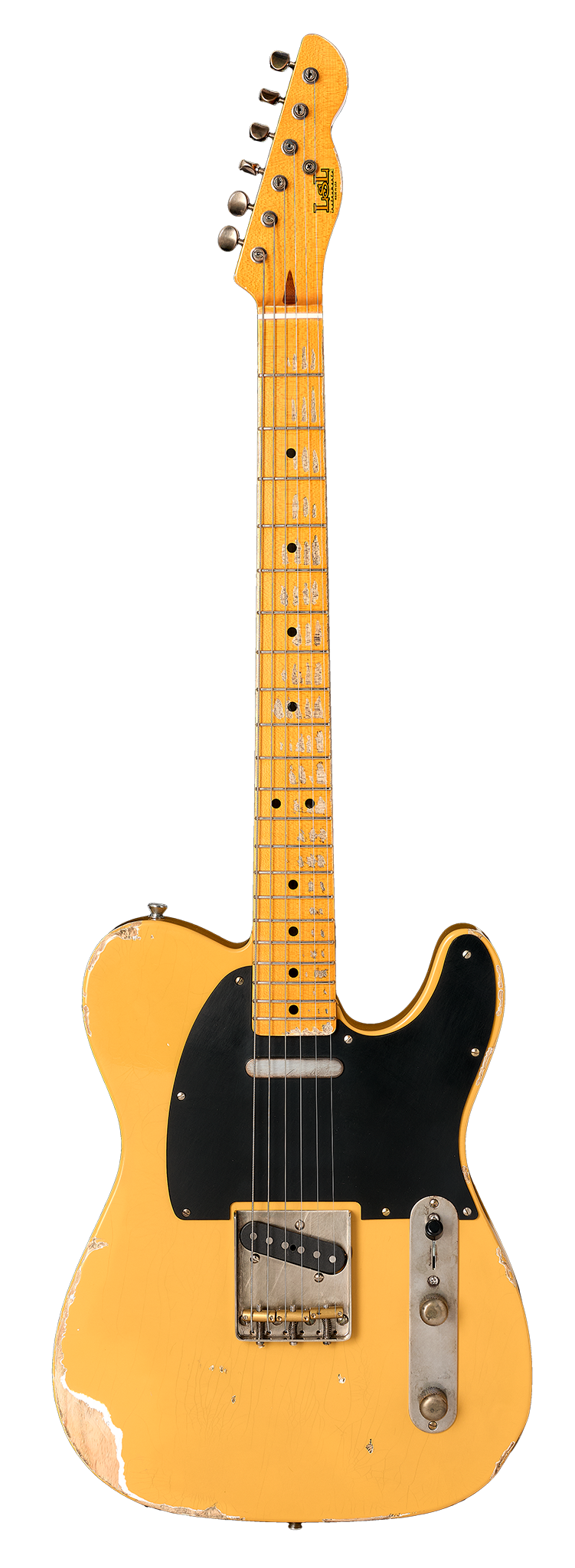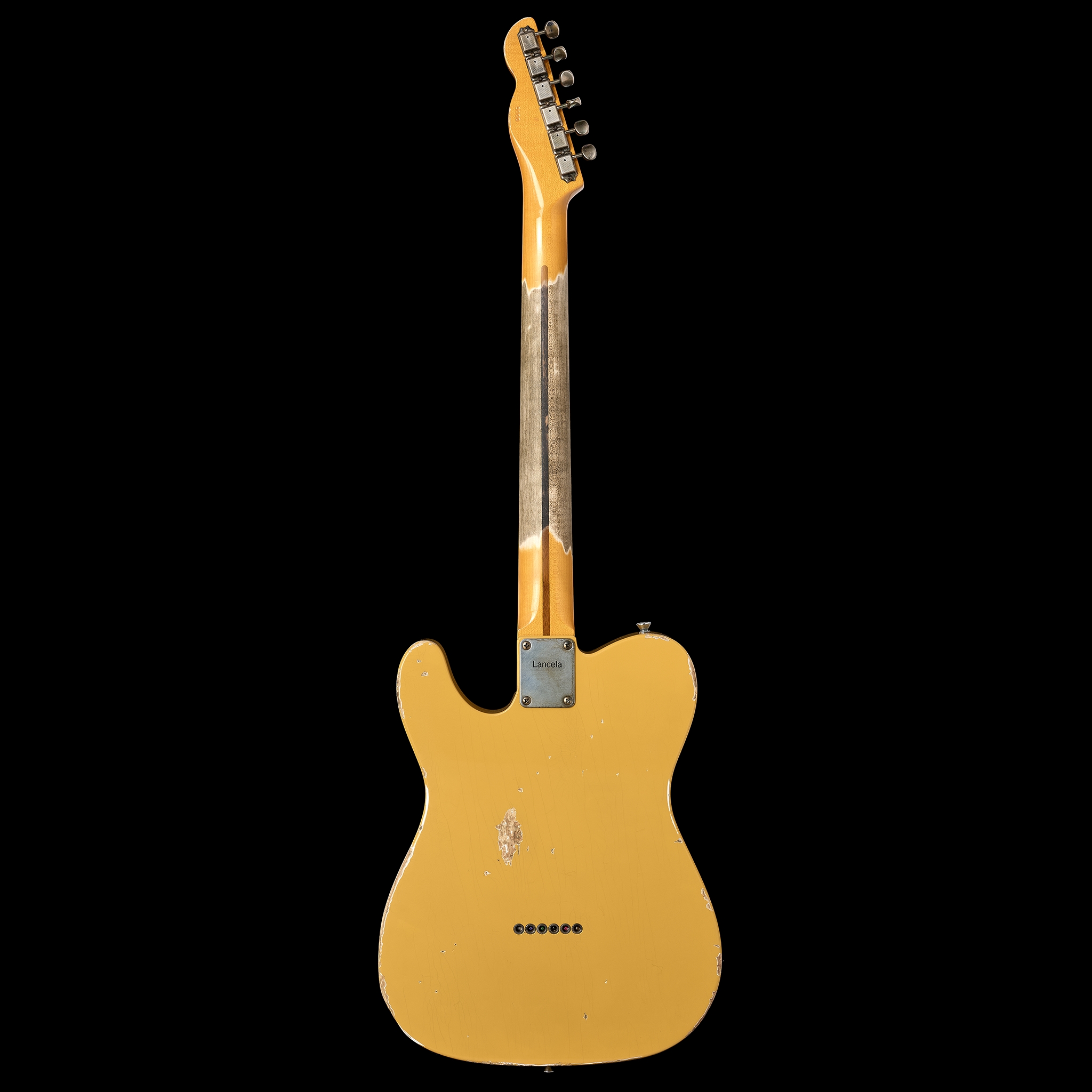 The LsL T-Bone #5000 in Butterscotch is a celebration of craftsmanship, history, and individuality. Built entirely by LsL founder Lance Lerman, this one-of-a-kind guitar is a faithful recreation of his first-ever handmade instrument. Featuring a swamp ash body from Lance’s personal secret stash of wood, this T-Bone is finished in a beautifully aged Butterscotch with a subtle white undercoat, paying homage to classic designs while exuding its own unique character. Heavy neck aging and medium-to-heavy body aging give it a storied, broken-in feel, while meticulous details like slot-head screws on the black pickguard add a touch of vintage authenticity.