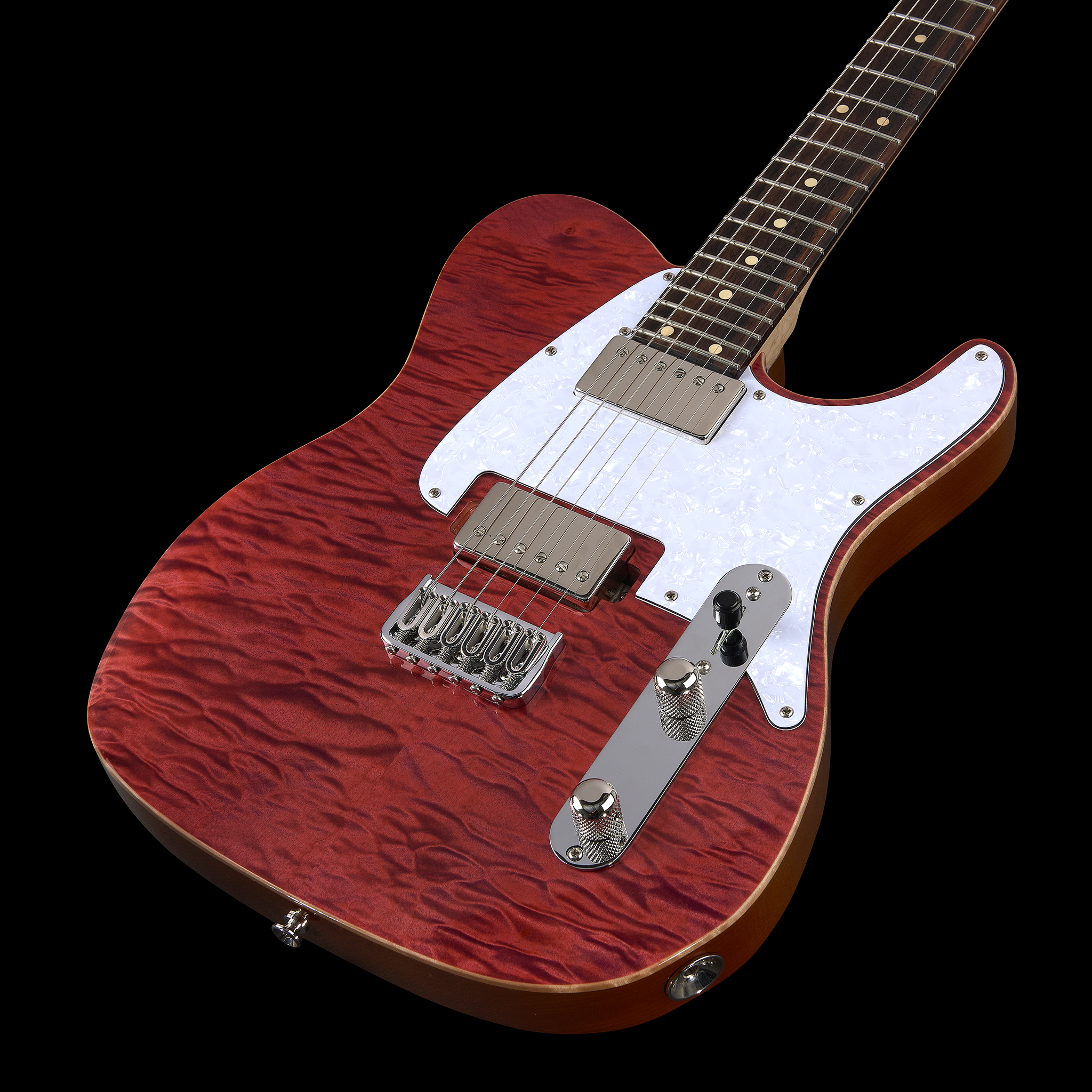 Equipped with chrome hardware, a Hipshot hardtail bridge, and modern locking tuners, the T-Bone 24 DX HH delivers rock-solid stability and tuning precision. The dual chrome humbuckers, wired through VT3way electronics with a push/pull coil-split, provide a versatile palette of tones—from warm, full-bodied humbucker richness to articulate single-coil clarity. Topped off with a pearloid pickguard and a matching Pink Algae burl maple headstock, this custom-built guitar is a show-stopping combination of style, performance, and innovation, perfect for players who demand a standout instrument.