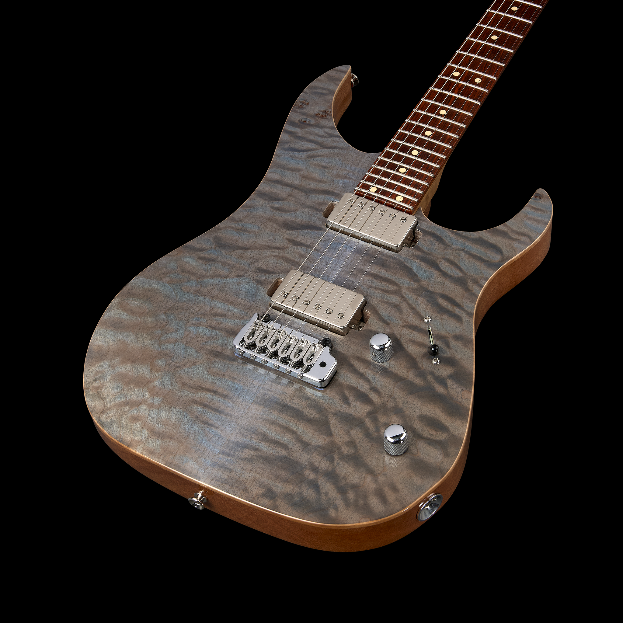 Equipped with dual chrome-covered humbuckers and a 3-way selector with push/pull coil-splitting, the XT4 DX offers a versatile tonal palette, from searing leads to glassy cleans. The Hipshot 2-point tremolo bridge ensures smooth dives and returns, while modern locking tuners provide rock-solid stability. Designed to combine contemporary craftsmanship with luxurious detail, this XT4 DX is ready to meet the demands of players seeking a high-performance, visually stunning instrument.
