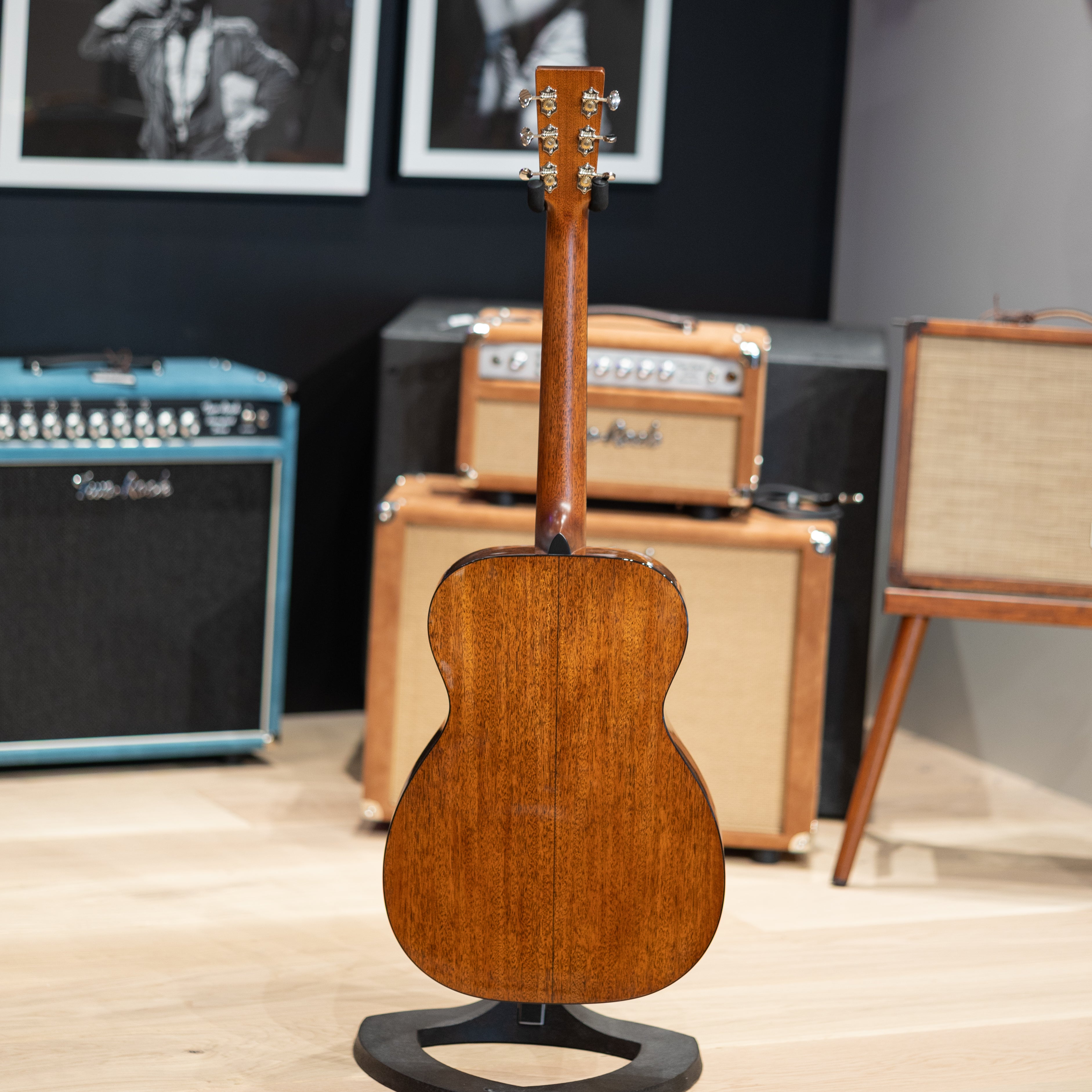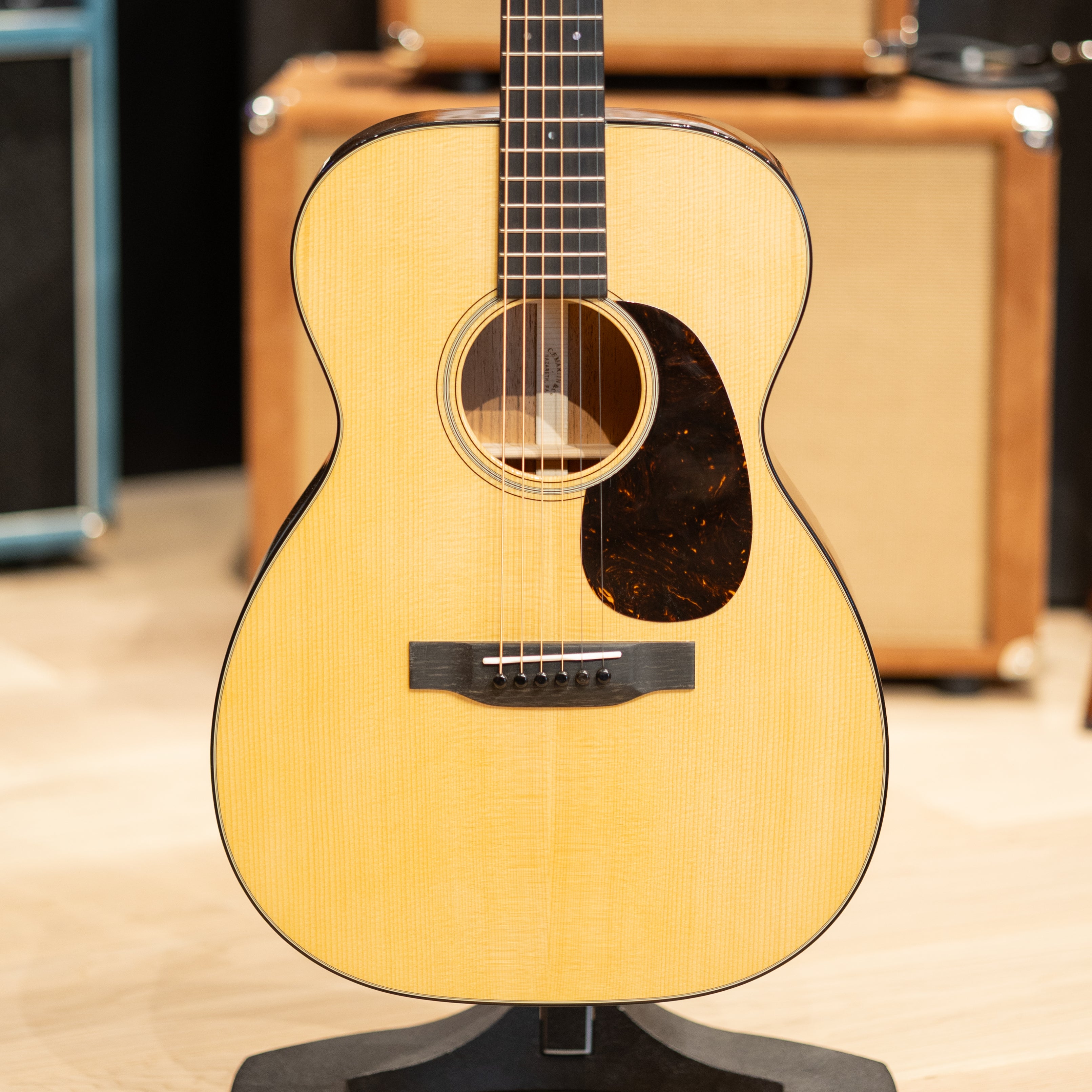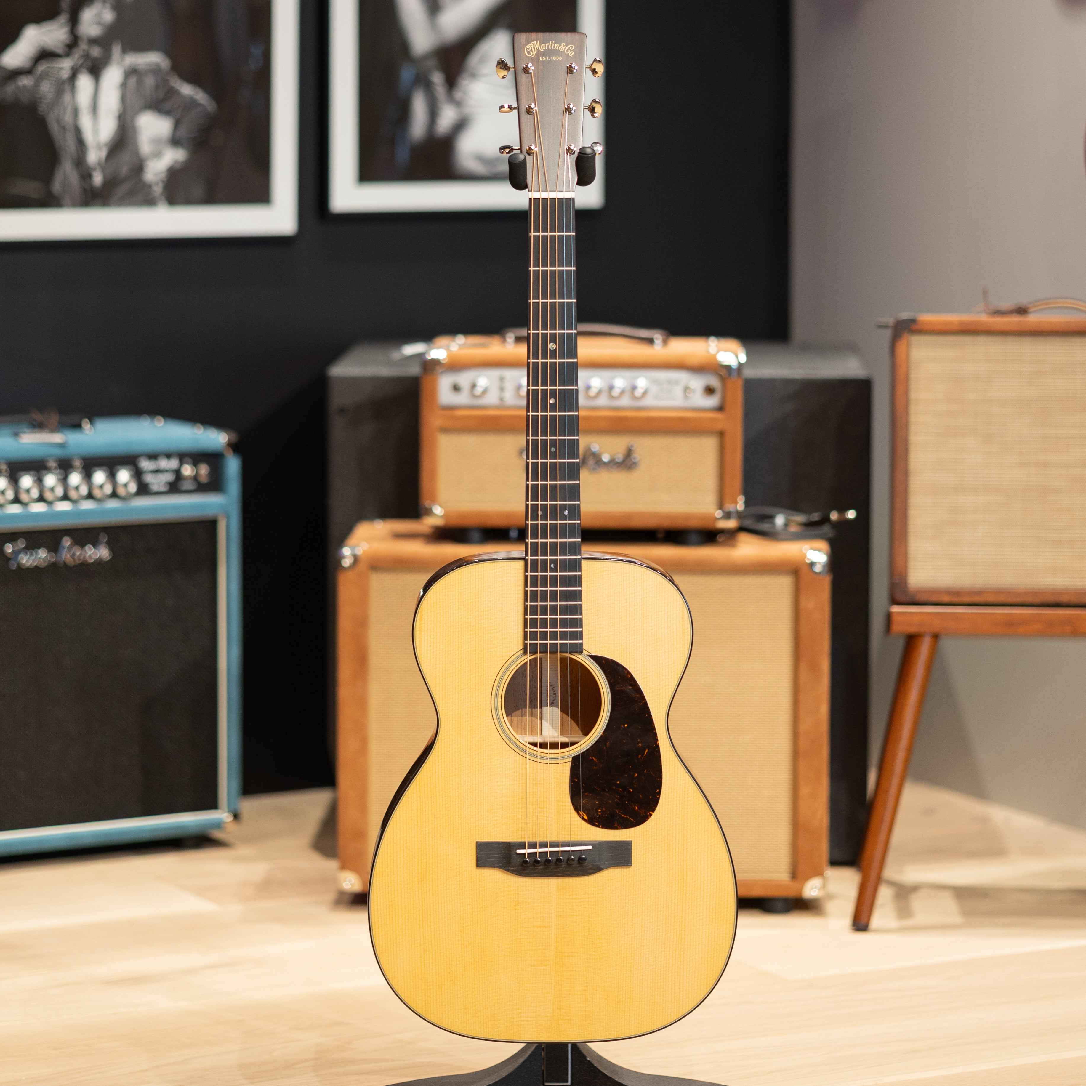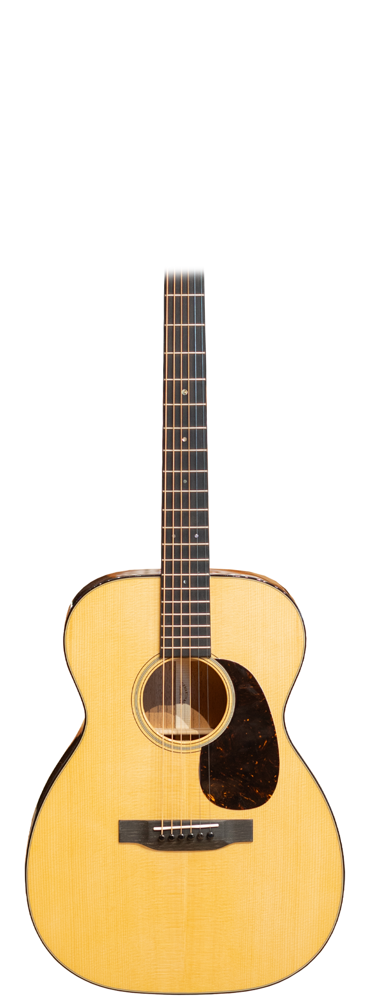 The Martin 00-18 is a trusted classic, beloved for its balanced and timeless tone. Its smaller, comfortable Grand Concert body size delivers a focused voice, with clear trebles and warm bass, making it perfect for intricate finger-style playing and dynamic, nuanced strumming. Handcrafted with a solid spruce top and solid mahogany back and sides, the 00-18 offers a bright treble response, punchy midrange, and the dependable projection players have relied on for generations. Its satin neck with a Golden Era (GE) Modified Low Oval profile, high-performance taper, and 24.9" scale length provides unmatched comfort, while ebony details, including the bridge, bridge pins, and fingerboard with abalone dot inlays, enhance its iconic design. Complete with aging toner on its top, black binding, and nickel open gear tuners, the 00-18 is a guitar you can trust.