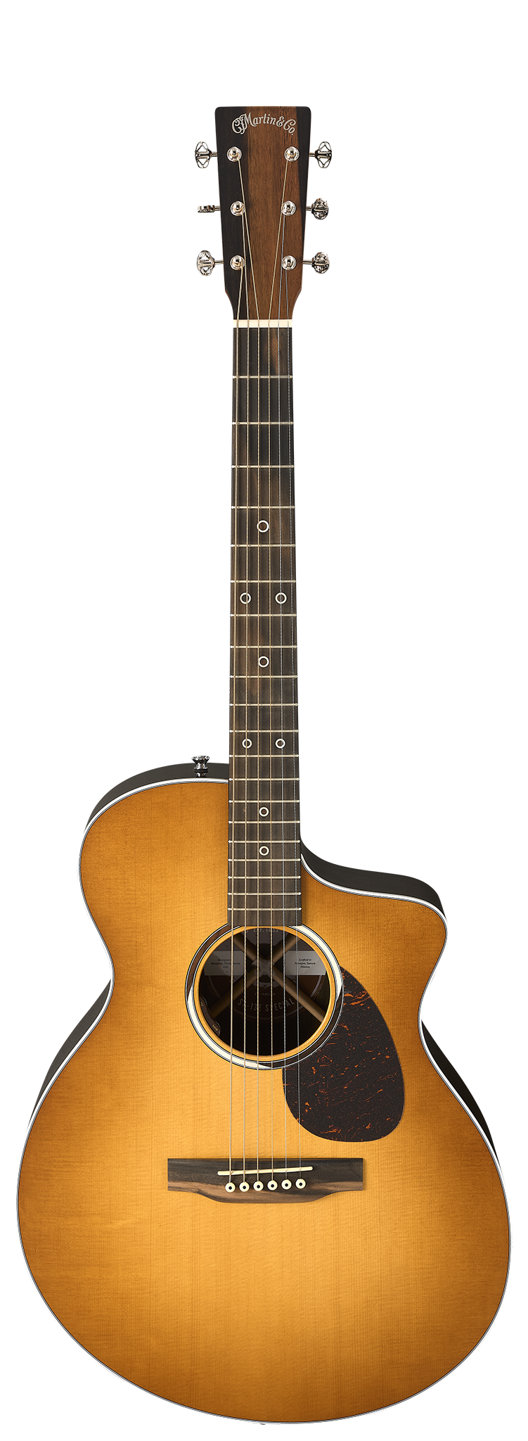 The Martin SC-13E, with its patented Sure Align® neck system, gives you full access to all frets so you can comfortably reach those high notes. It’s also equipped with a new, low-profile velocity neck barrel that ergonomically accommodates your hand as you move up the neck, giving you the comfort and playability of an electric. This special edition SC-13E features a spruce gloss top and ziricote fine veneer gloss finished back and sides. The design motif features an aperture rosette inlay with ebony headplate, fingerboard, and bridge. It also features nickel open gear keyhole tuners with skeleton key knobs.