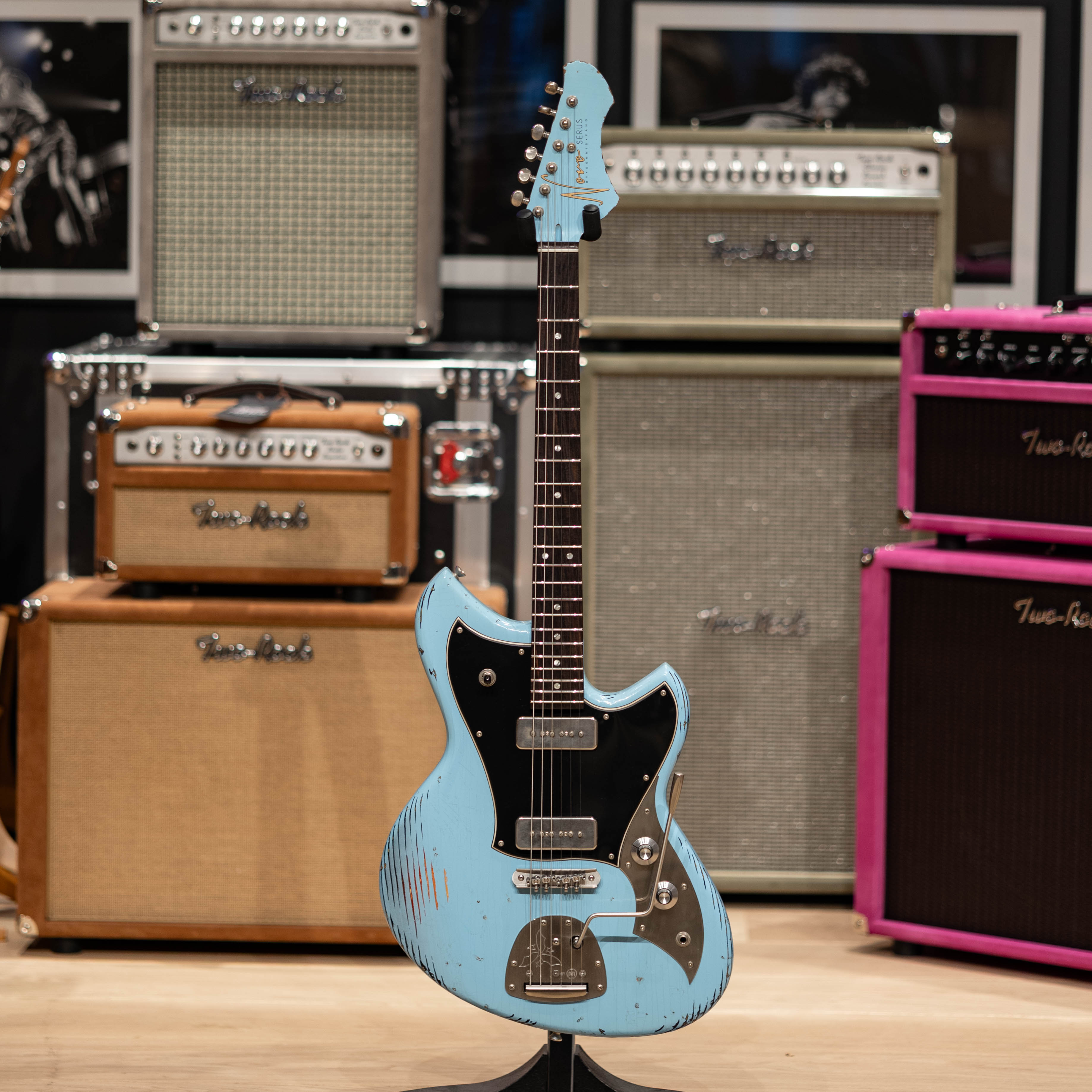 Novo Serus J - Daphne Blue Over '64 3-Tone Burst