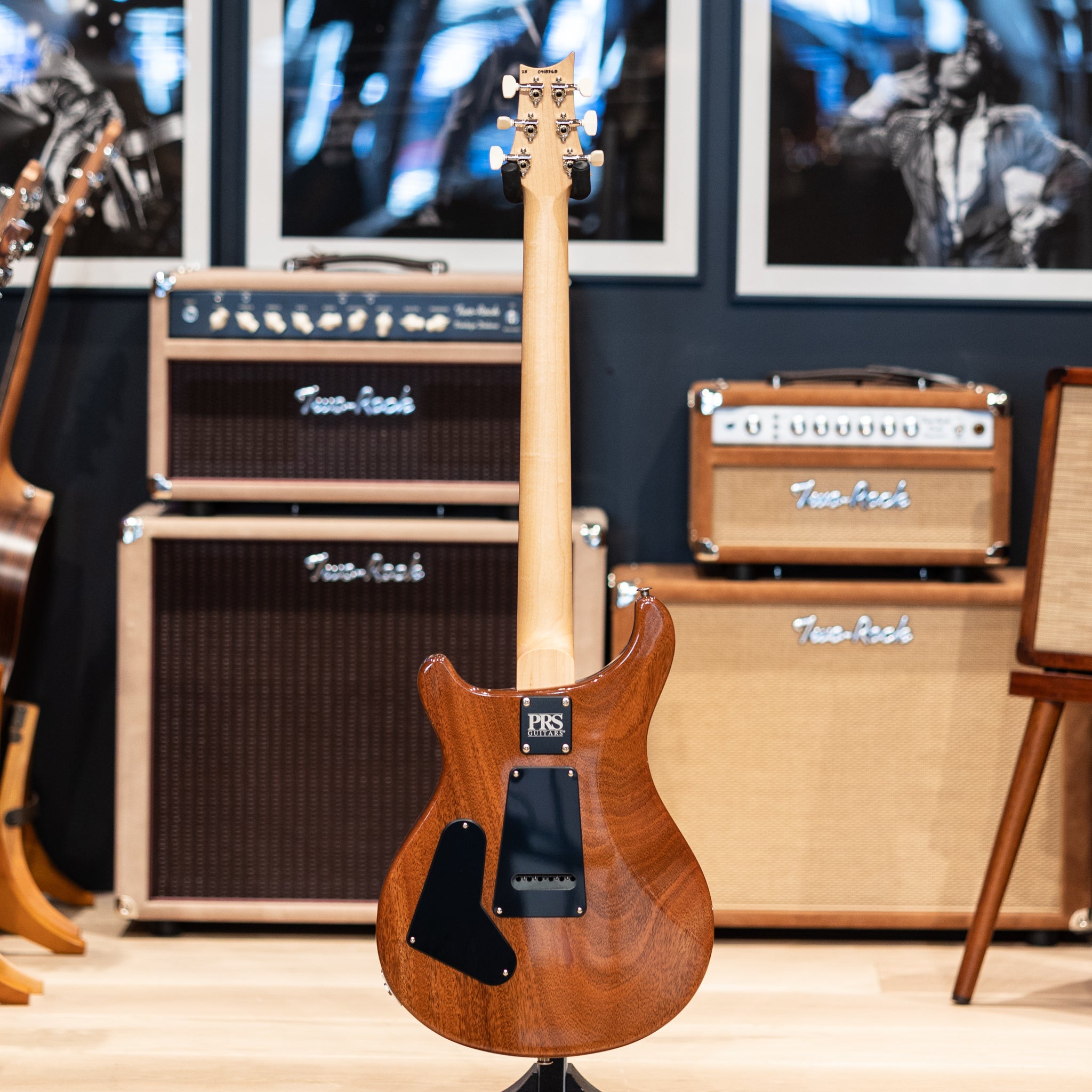 The bolt‑on Maple neck brings the familiar CE snap, and the Pattern Thin carve with its satin feel makes it quick and comfortable in the hand. Position shifts feel smooth and natural, and the East Indian Rosewood fretboard adds a warm touch under the fingers. The Birds inlay and Signature decal on the headstock keep the look unmistakably PRS.
