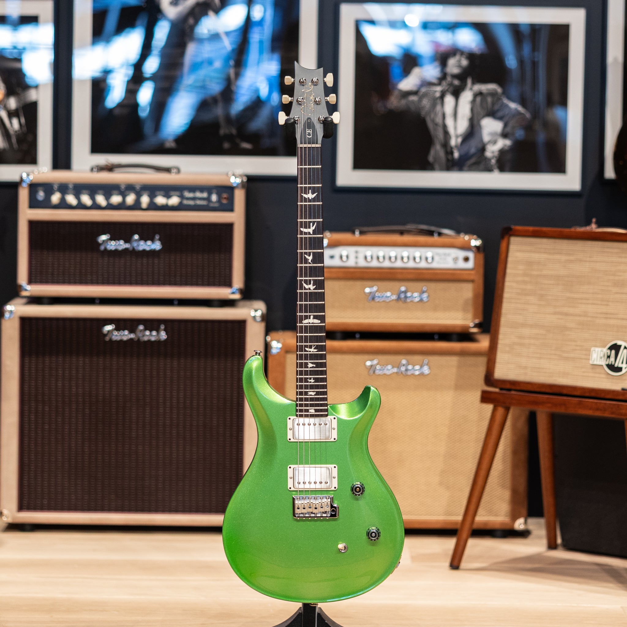 This CE 24 is in a head-turning, unique "Ogre Green" finish as part of PRS's "Sprayer's Choice" selection of special guitars.