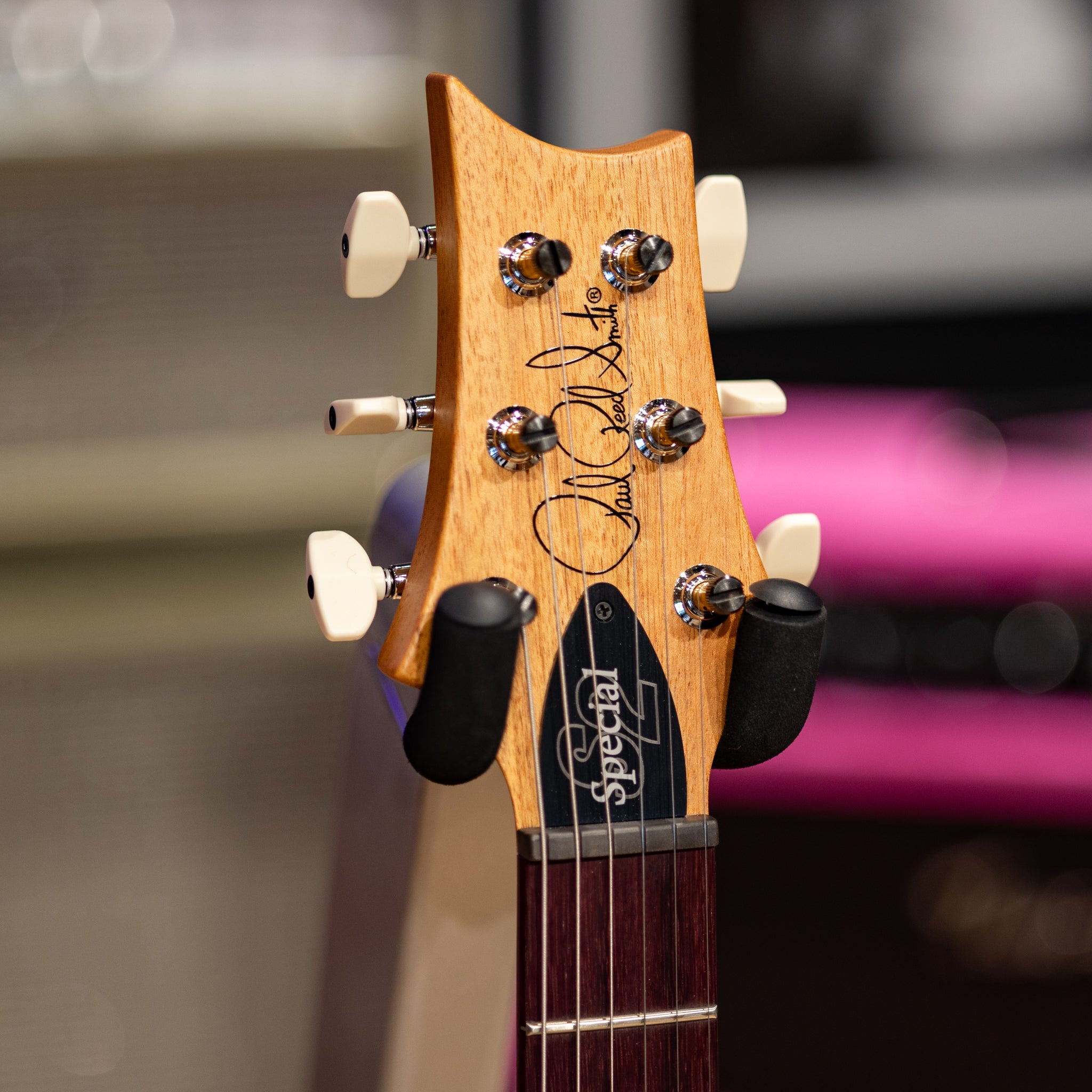 This was part of a 700-piece run that highlighted reclaimed and salvaged woods on one of PRS’s most versatile platforms, the "Special". Each top is left as natural as possible, allowing its individual character to shine through - nail holes, wear, and discoloration included, making every instrument truly one of a kind. Finished in satin nitro and left Natural in color, this model pairs striking visual history with a remarkably wide tonal range, from articulate single-coil sparkle to full, vintage-inspired humbucking warmth.