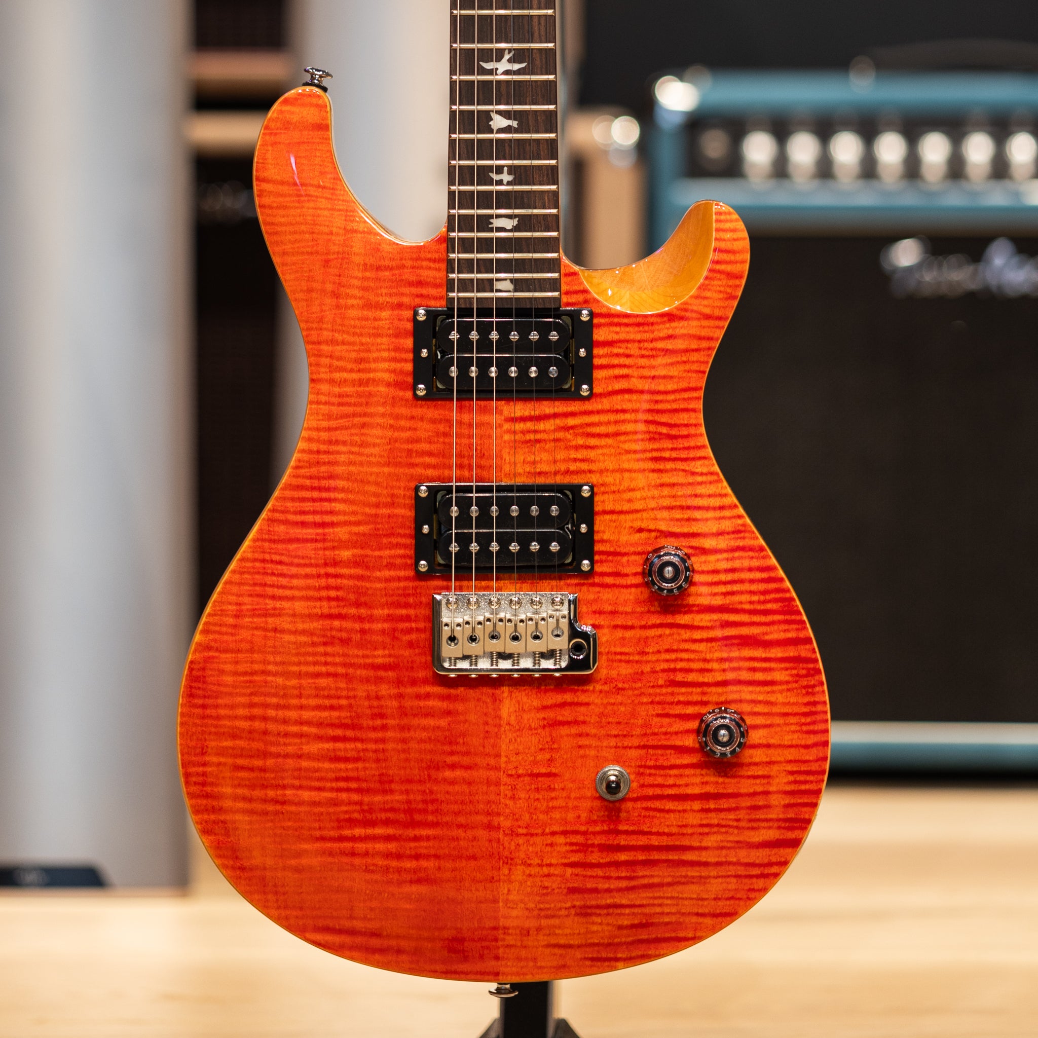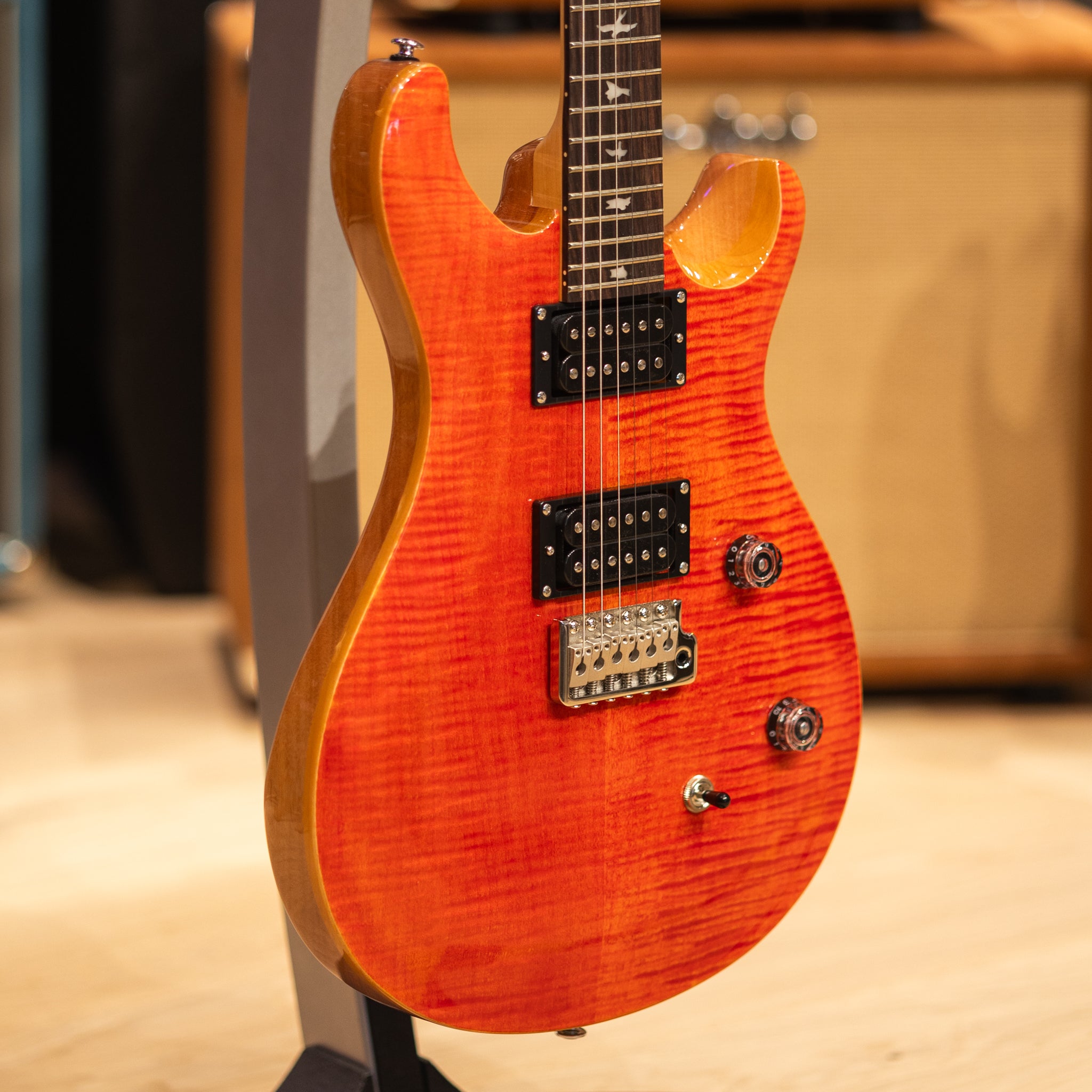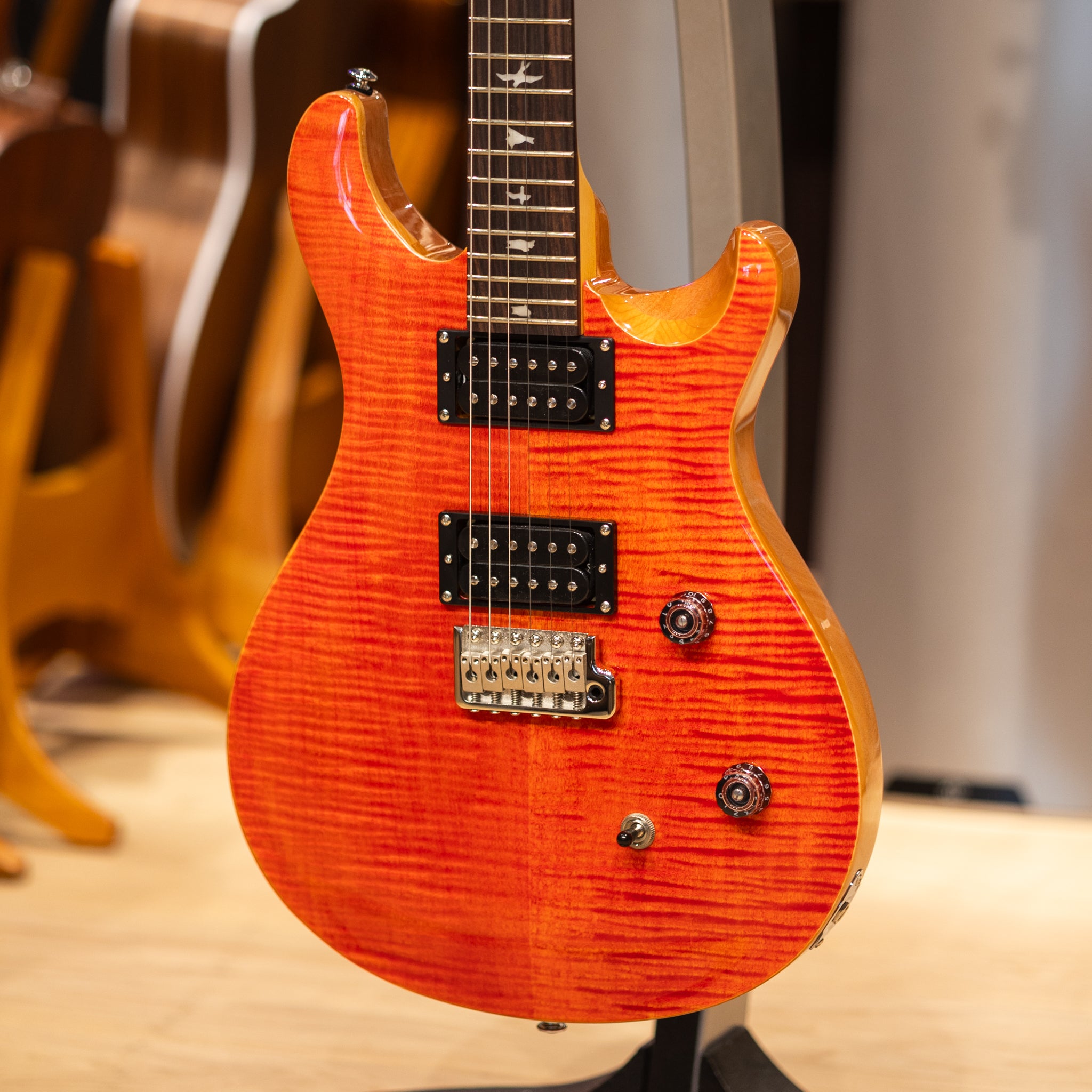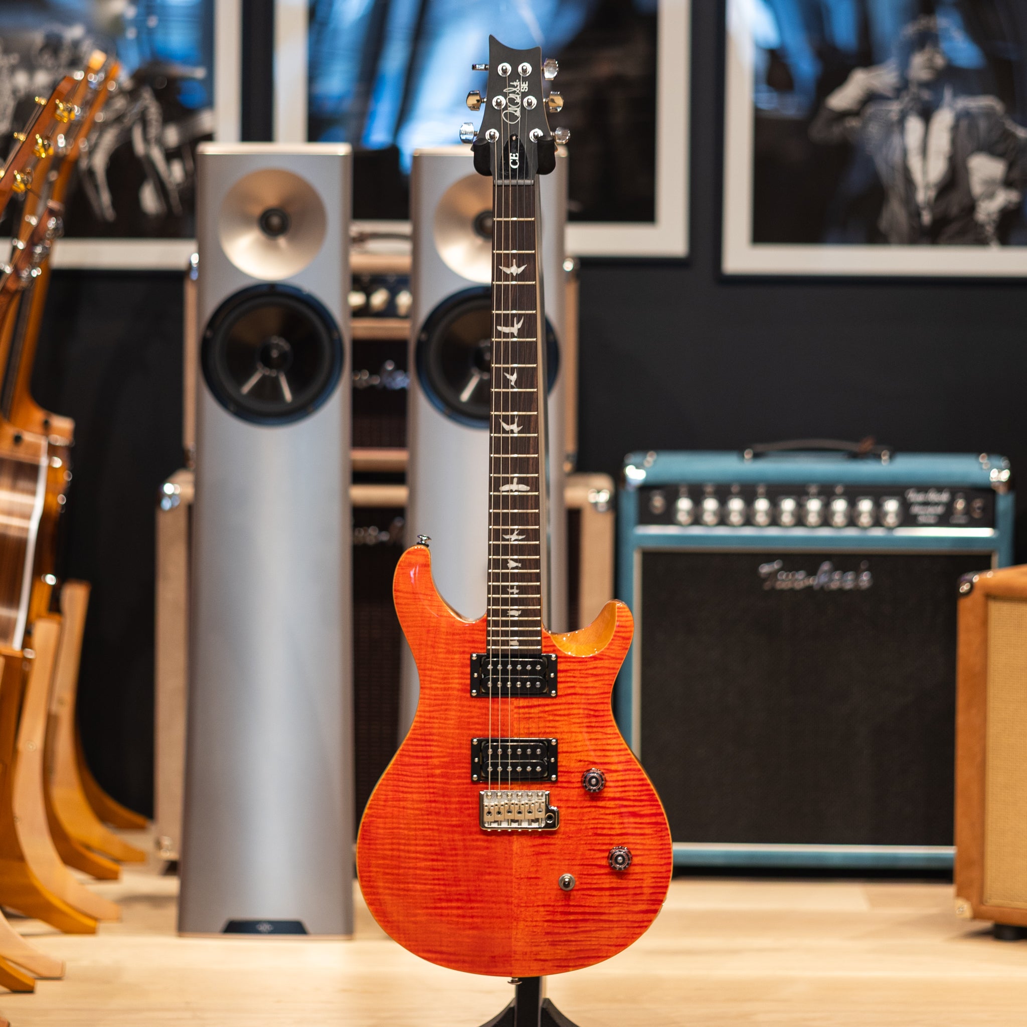 The PRS SE CE 24 Standard in Blood Orange with Natural Back is built to catch the eye and feel instantly comfortable in your hands. The mahogany body with maple veneer top resonates with warmth, while the bolt‑on maple neck adds snap and clarity. The wide‑thin carve and rosewood fingerboard make it fast and smooth across all 24 frets.
