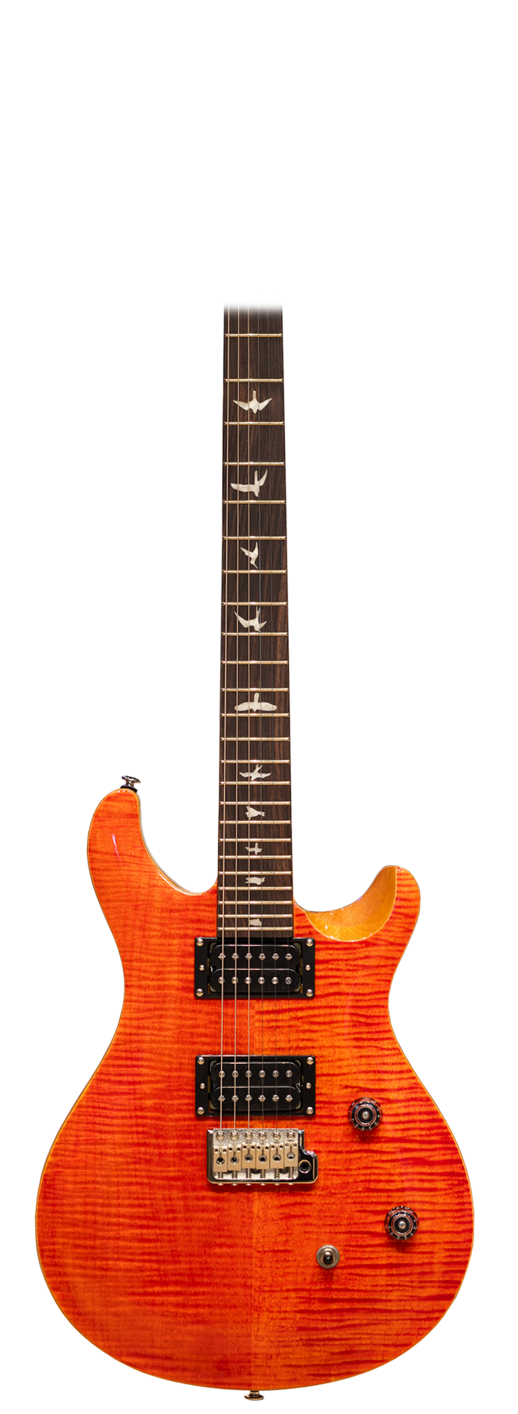 The PRS molded tremolo bridge adds sustain and tuning stability, while nickel hardware and bird inlays keep the look unmistakably PRS. The Blood Orange gloss top paired with a natural mahogany back gives this guitar a bold, modern vibe with an organic touch.