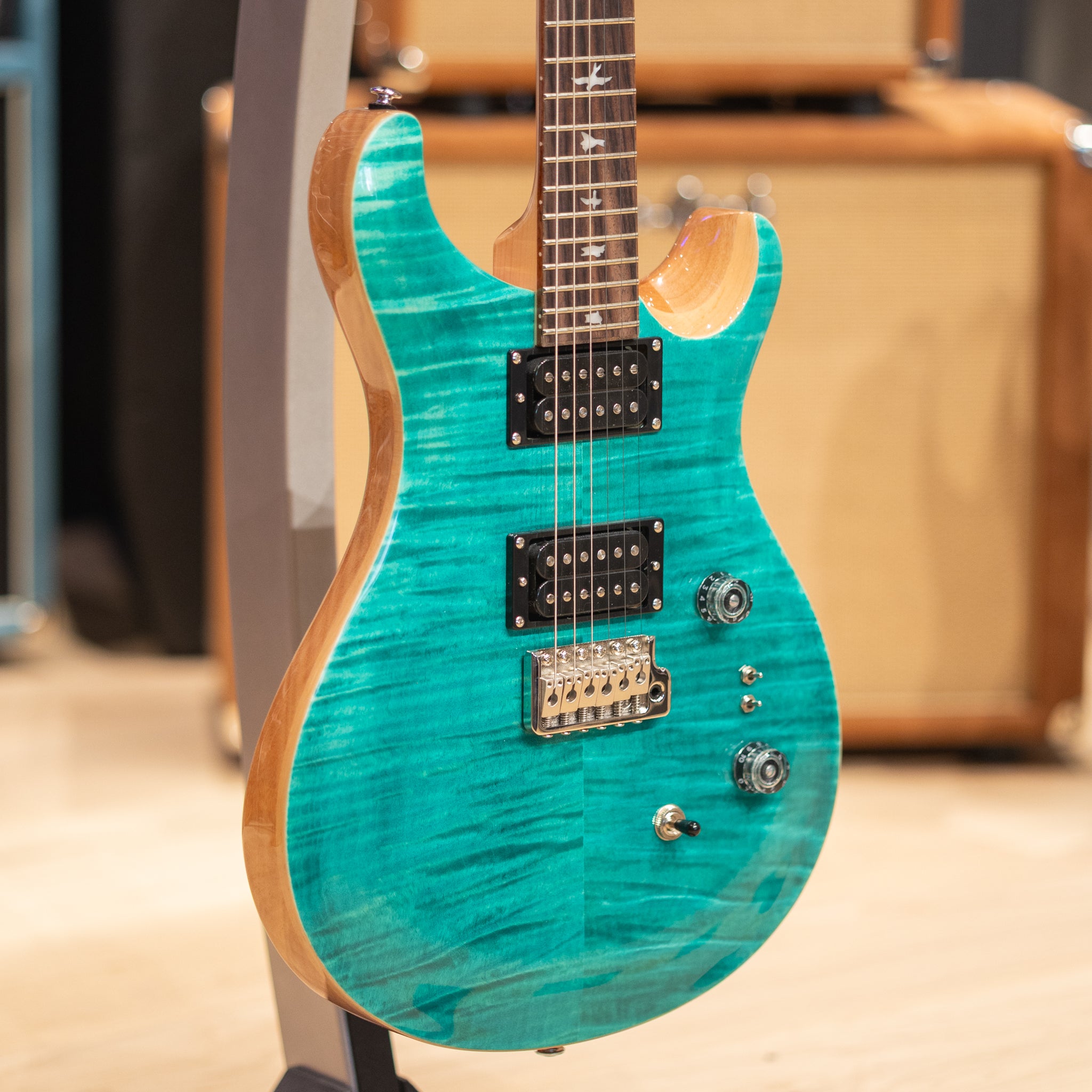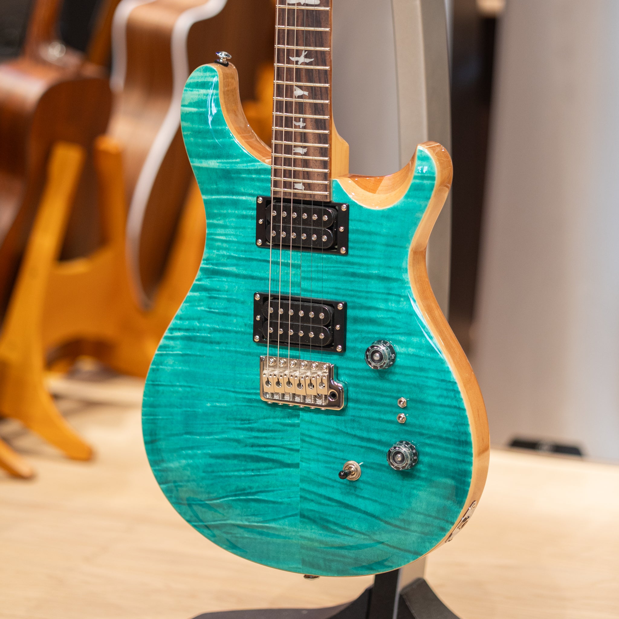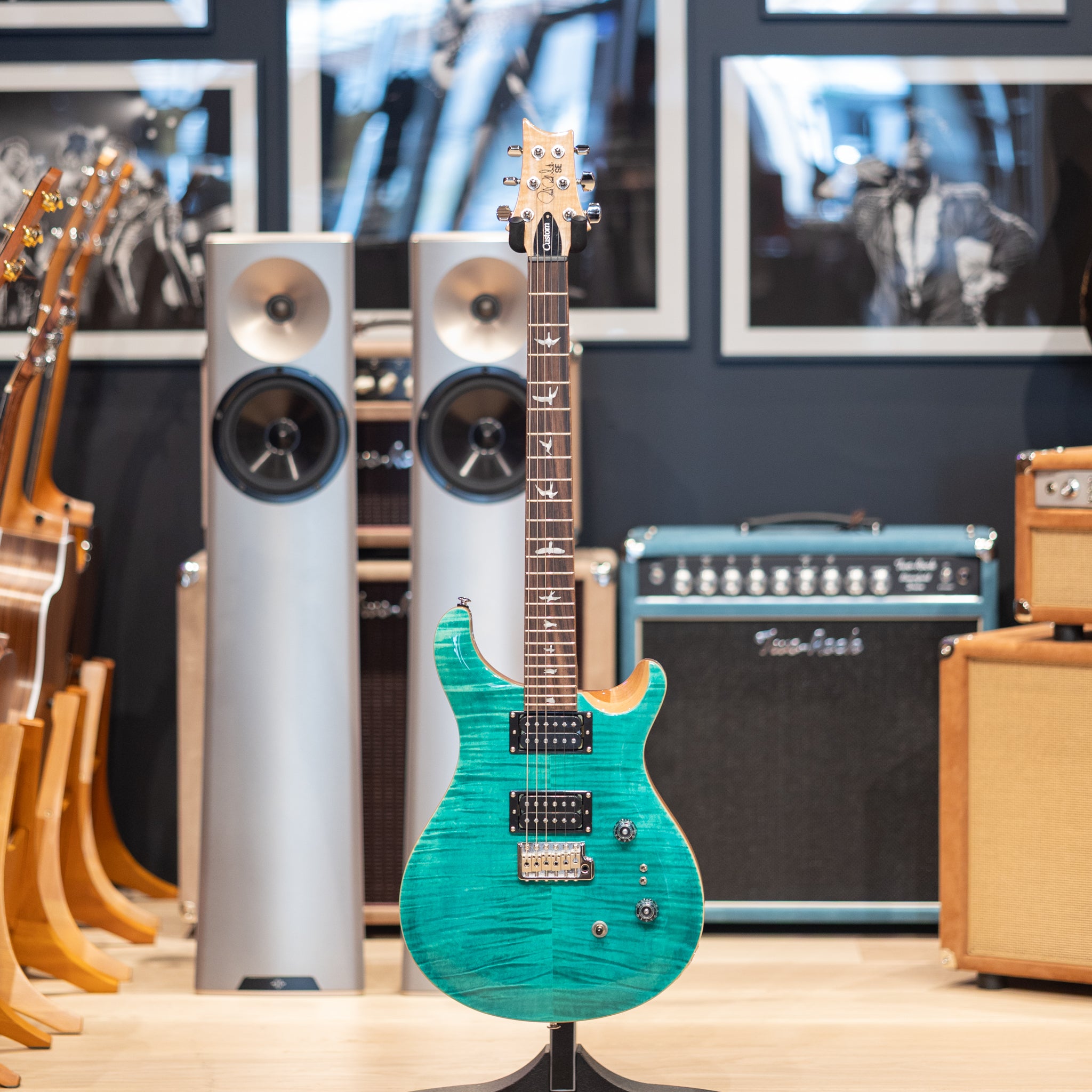 The PRS tremolo bridge adds stability and sustain, while nickel hardware and the signature bird inlays keep the look unmistakably PRS. Finished in Turquoise, it has a bold, modern vibe that stands out without being over the top.