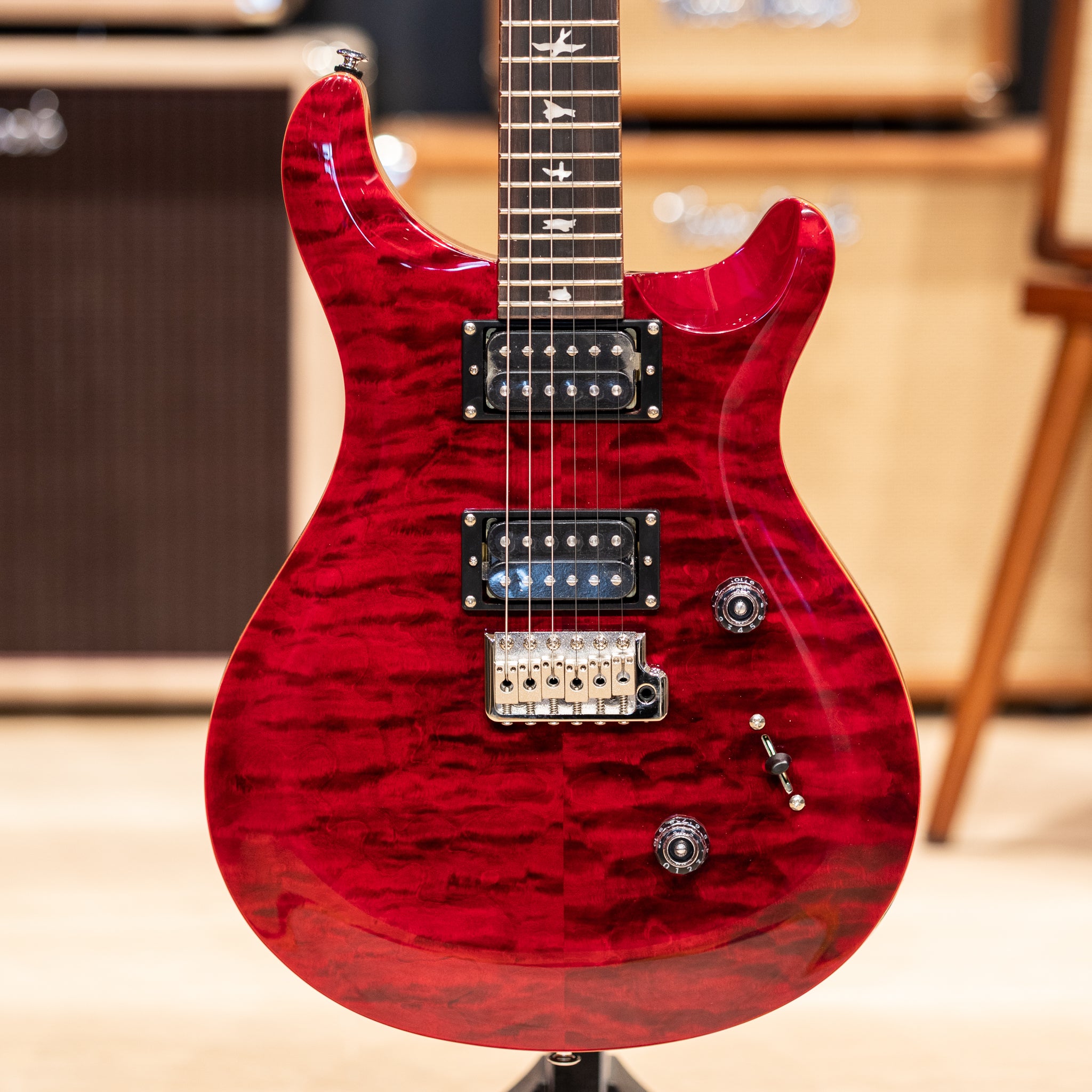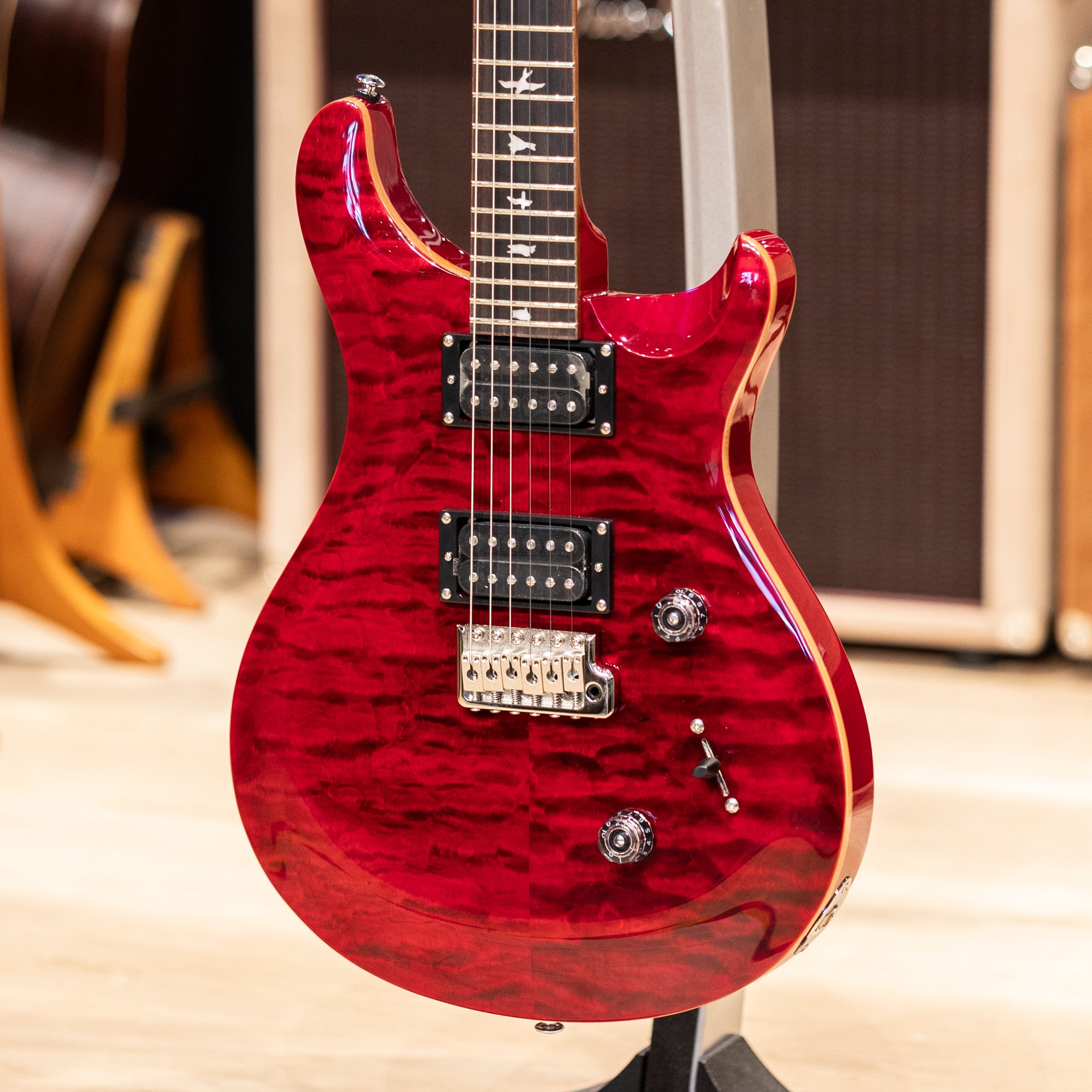 The SE Custom 24 feels instantly familiar in the hands, with a lively response that encourages you to settle in and start playing. The maple top and gloss finish give it a bright, open look that feels energetic without being too bold. Ruby adds a deep, glowing presence that stands out in a warm and confident way. The mahogany body brings a steady, resonant foundation that feels balanced whether you are practicing at home or stepping onto a stage.