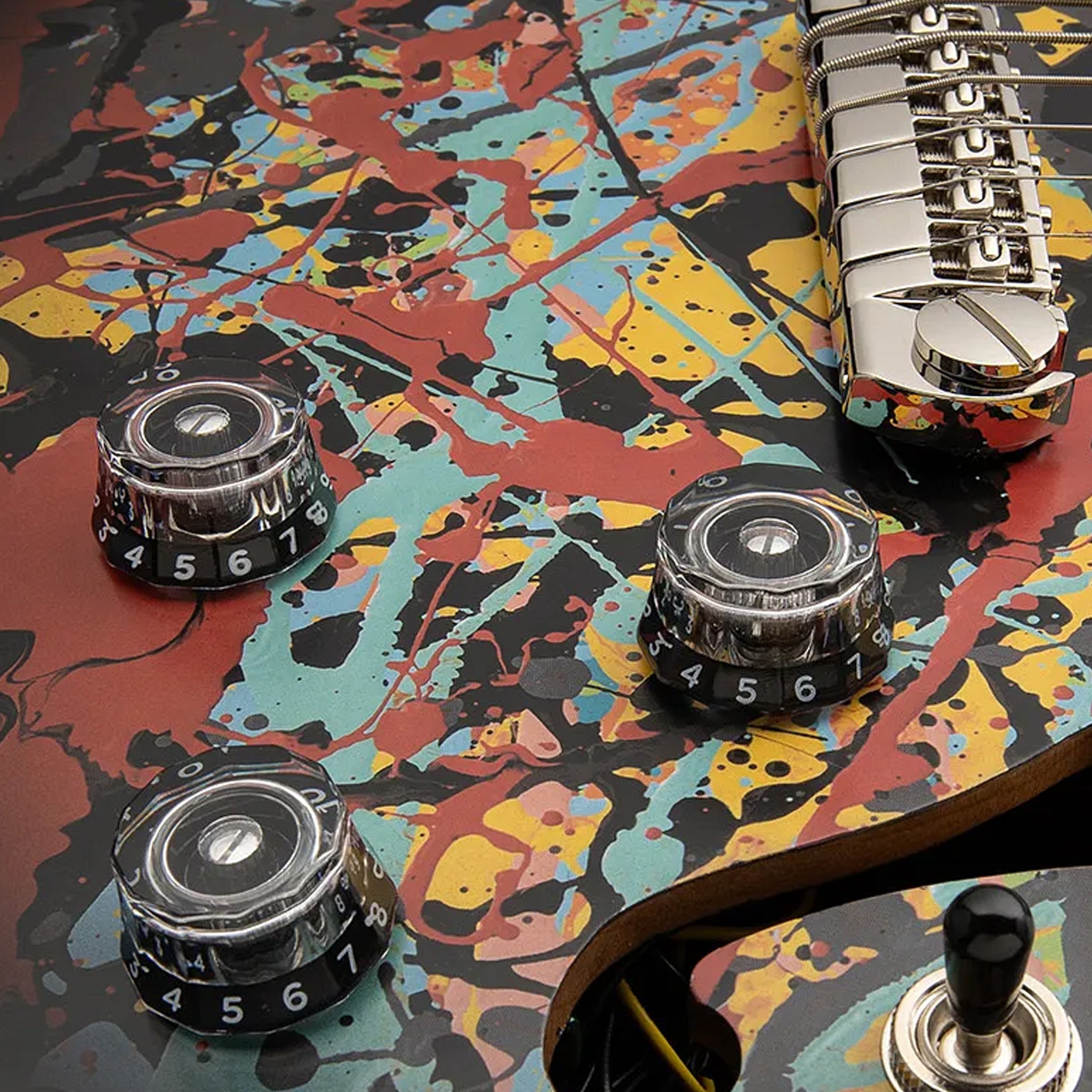 Designed with Ed Sheeran, the PRS SE Hollowbody I Piezo Baritone “Cosmic Splash” blends songwriting soul with a splash of visual art. Limited to just 1,000 pieces, the guitar is wrapped in the same vibrant design from Sheeran’s 2025 Cosmic Carpark painting series. The inlays are a tip of the hat to his symbol-named albums: Play, Pause, Rewind, Fast-Forward, and Stop, with the Play icon even popping up on the truss rod cover. Sheeran says he started painting to keep the creative juices flowing while off tour, explaining that staying creative, like keeping a faucet running, helps the best ideas come pouring out. His hope? That this guitar sparks inspiration for other players the same way it does for him.