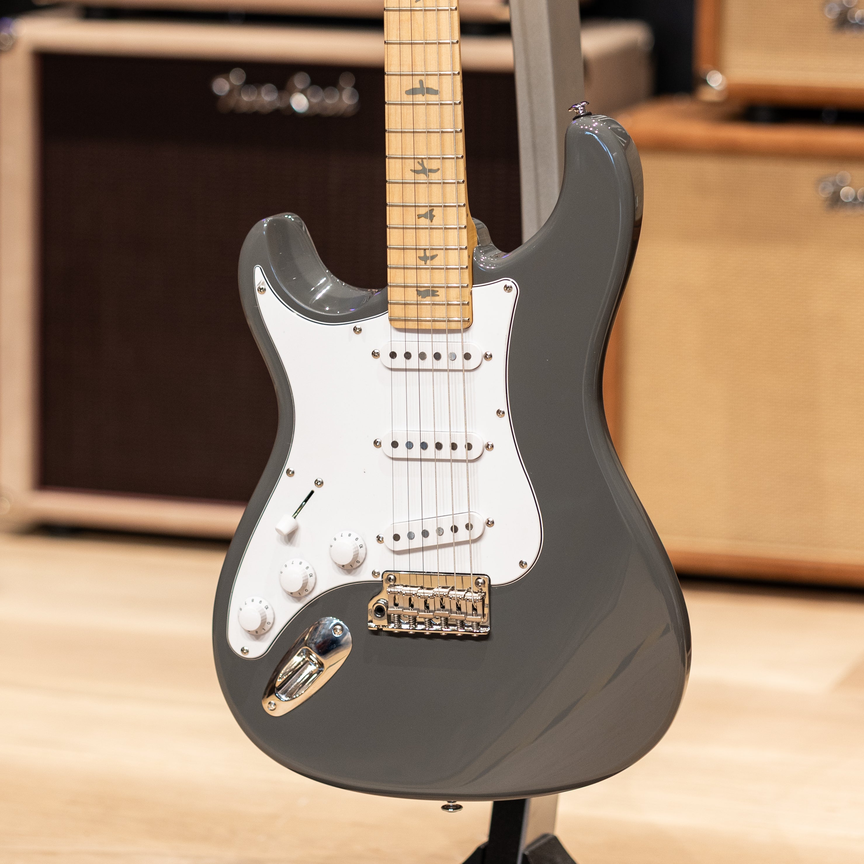 The SE Silver Sky feels immediately welcoming, with a balanced weight and an easy, familiar contour that sits comfortably whether you are standing or settling into a long practice session. Overland Gray gives the guitar a calm, understated presence that feels grounded and confident. The poplar body keeps things light and resonant, creating a natural response you can feel through your picking hand.